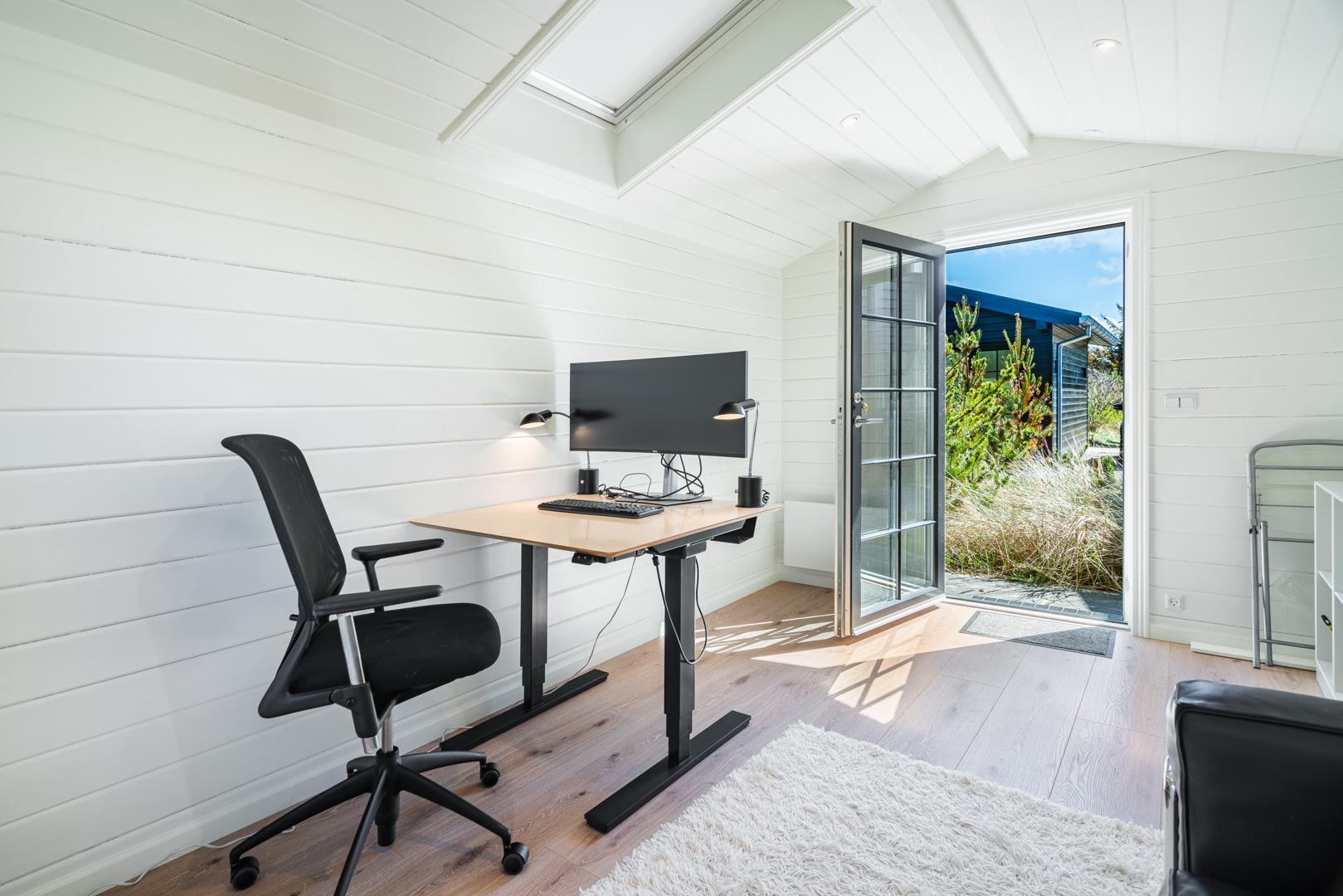 Til gæster med behov for at arbejde eller holde uforstyrrede videomøder, er der adgang til et anneks på 11 m2 med én arbejdsplads (hæve-sænkebord med stor skærm). Der er også et aflåseligt og sikkert 7 m2 rum til opbevaring af cykler, brænde mm.