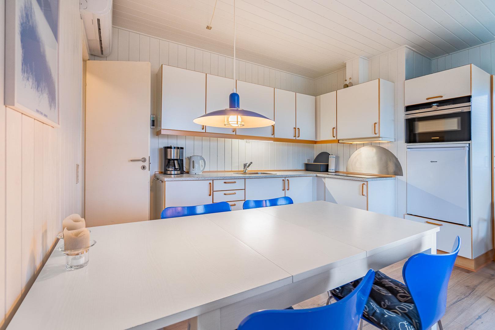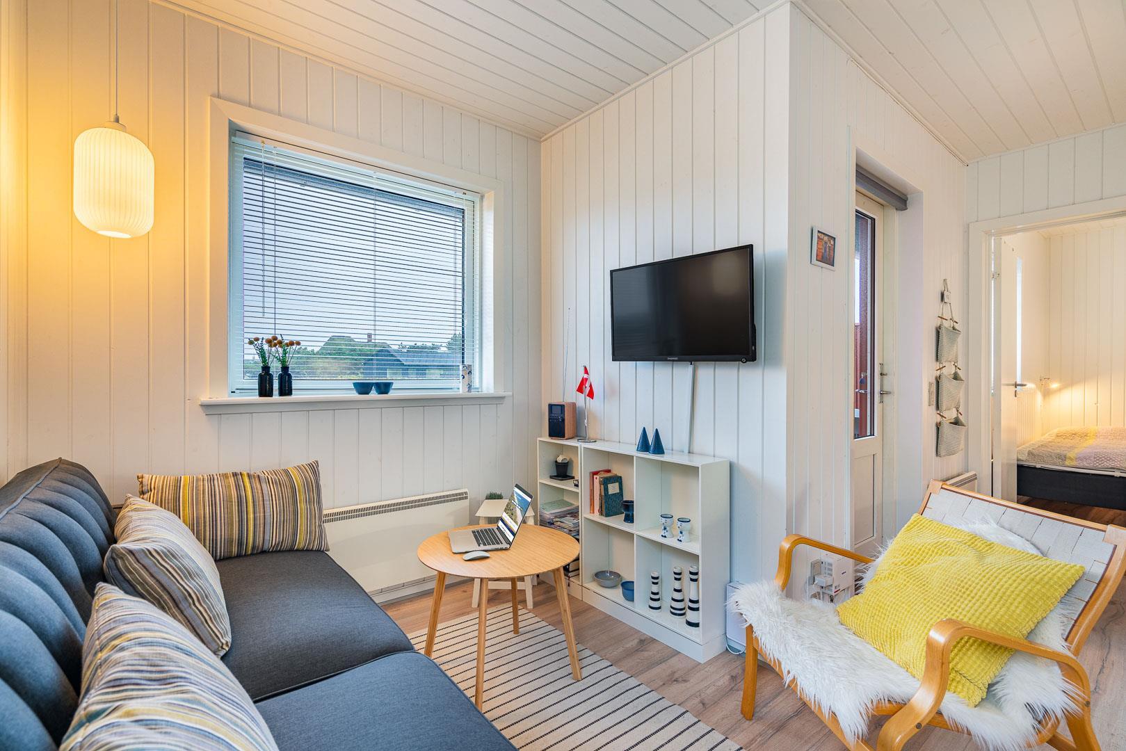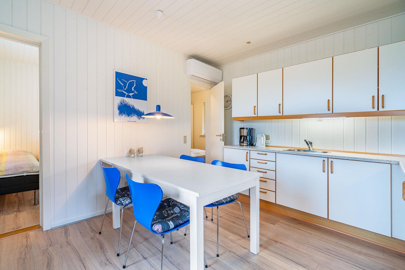 Hyggelig og smagfuldt indrettet ferielejlighed tæt på havet med sydvestvendt terrasse og gratis fællesvaskeri.