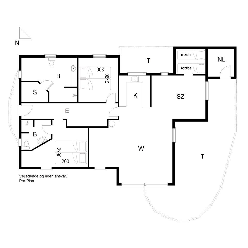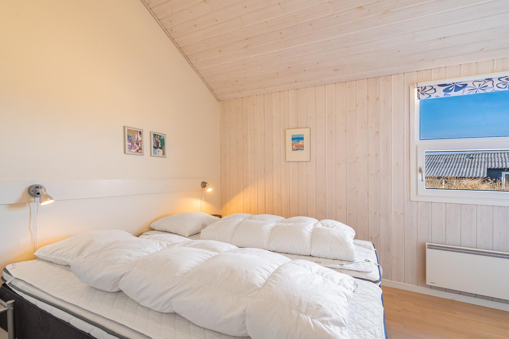 Sengestørrelser: 2 dobbeltsenge med 2 madrasser 90 x 200 cm + 2 enkeltsenge 90 x 200 cm.