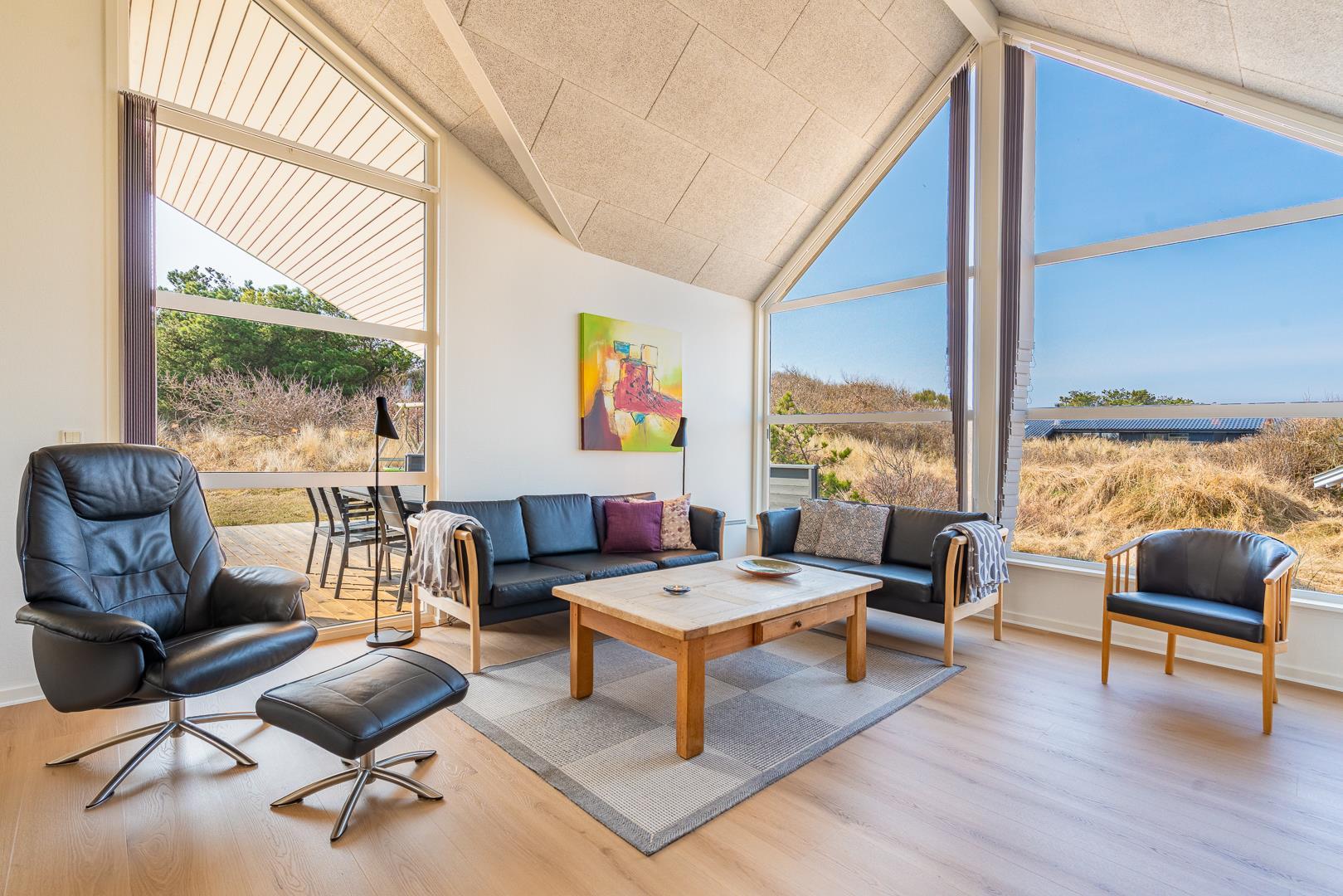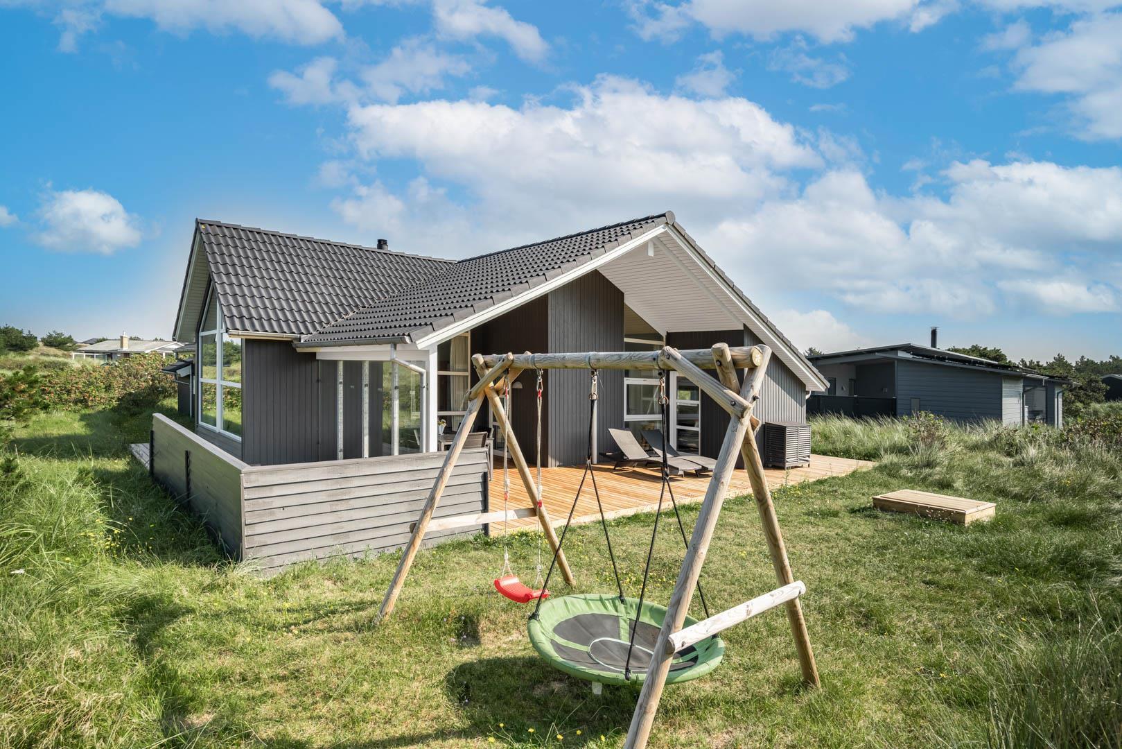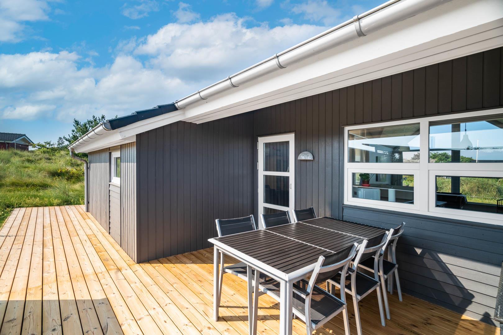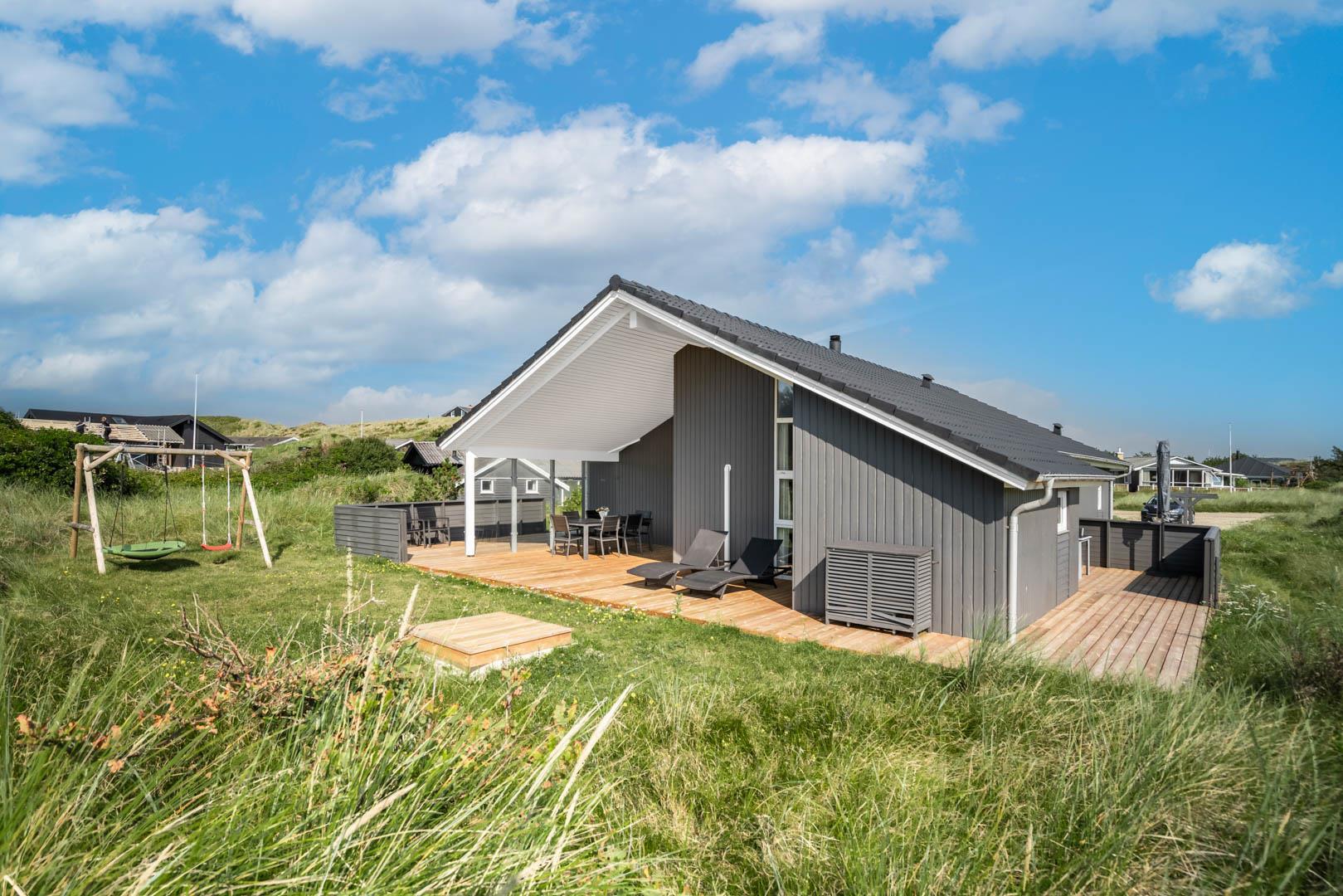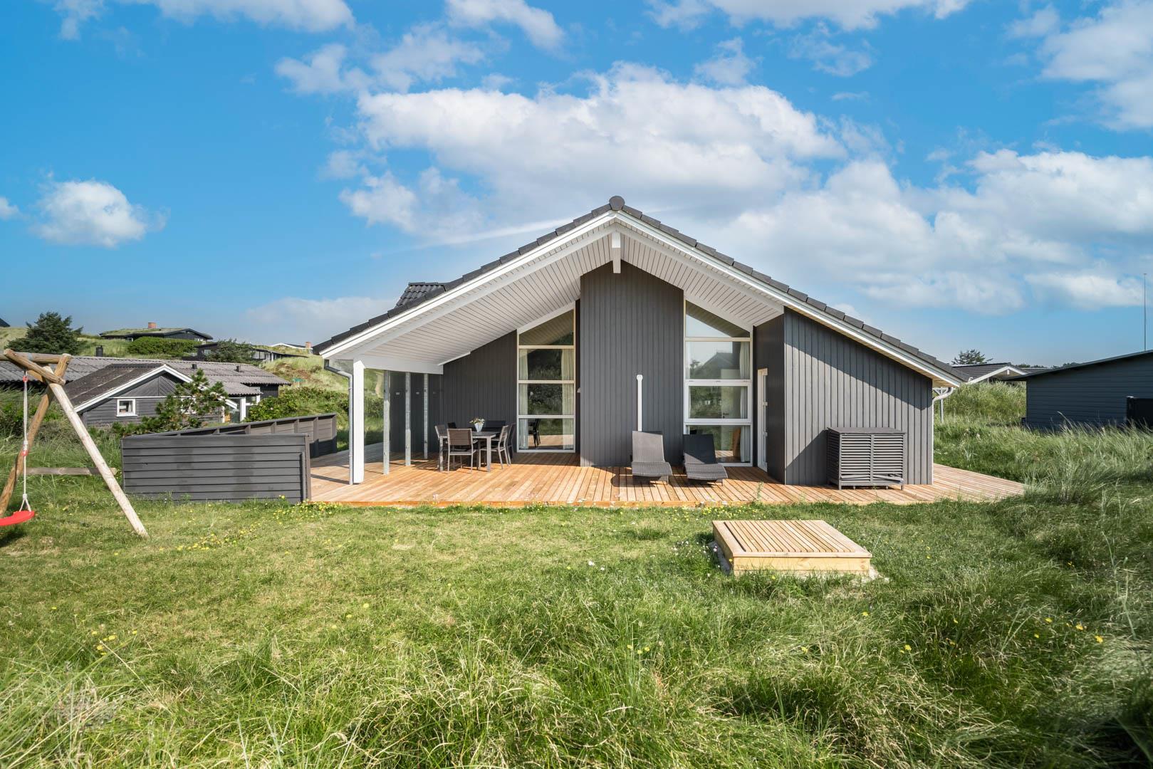 Dette flotte og rummelige feriehus på Hjejlevej 1 Henne Strand er beliggende på en dejlig ugeneret naturgrund, hvor du kan nyde både roen og den smukke, omkringliggende natur. Huset byder på moderne faciliteter og et komfortabelt indre, der sikrer en afslappende ferie for hele familien.