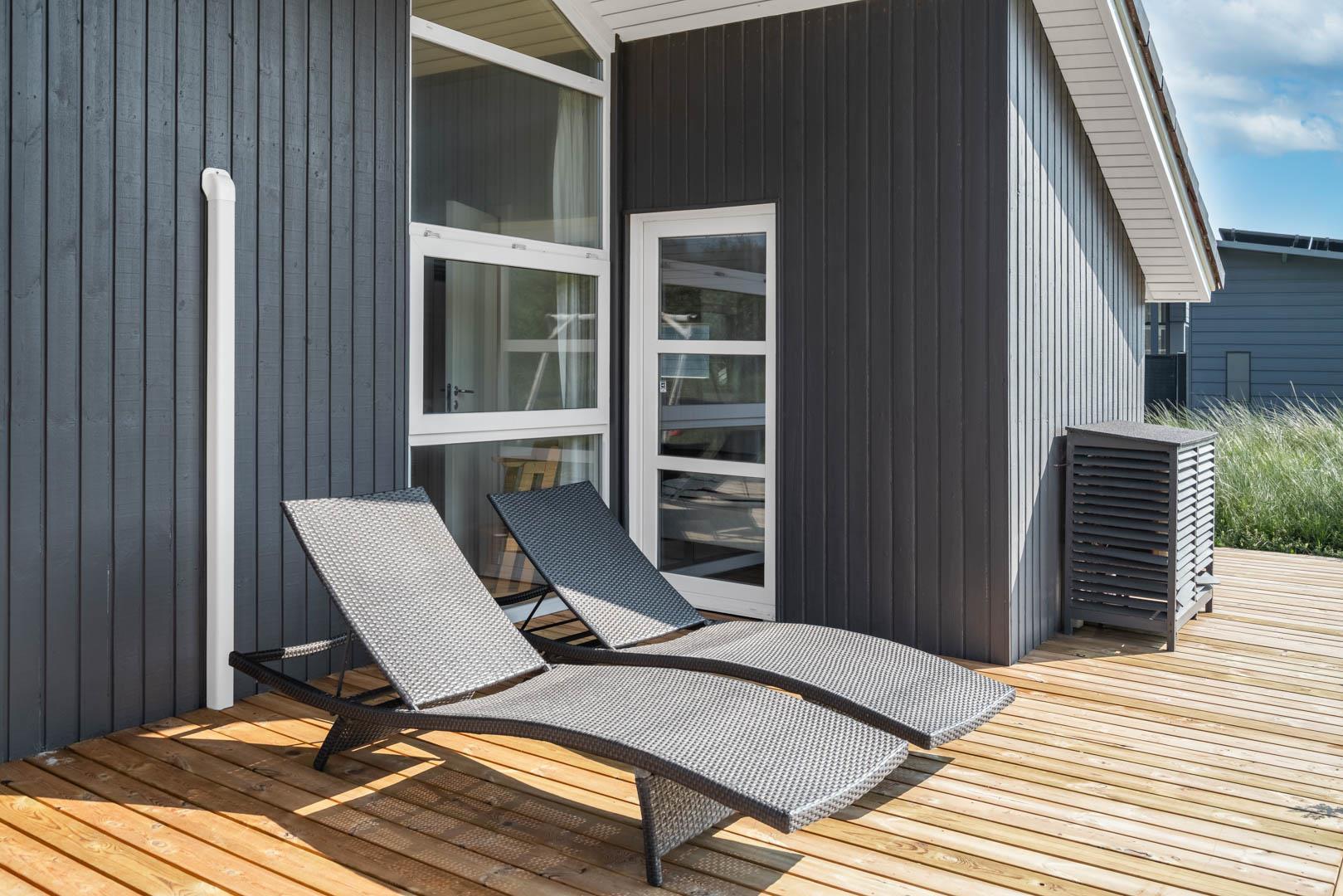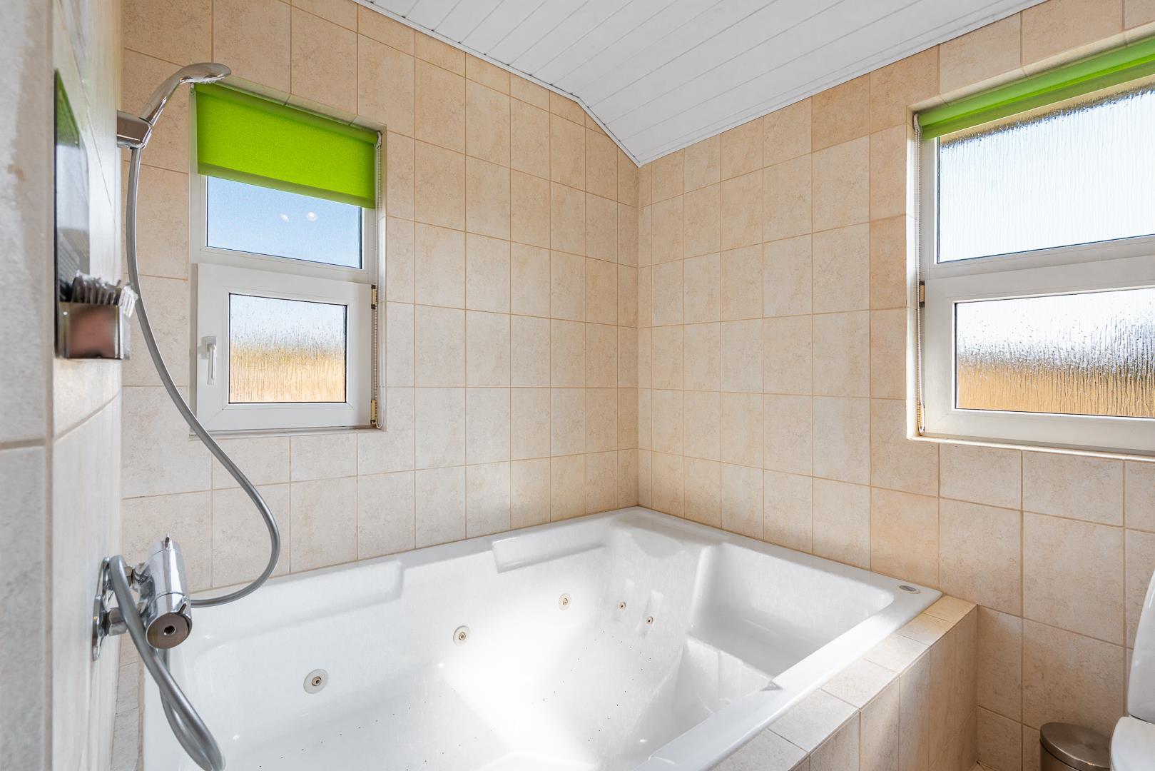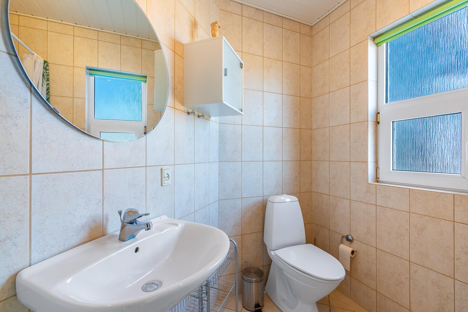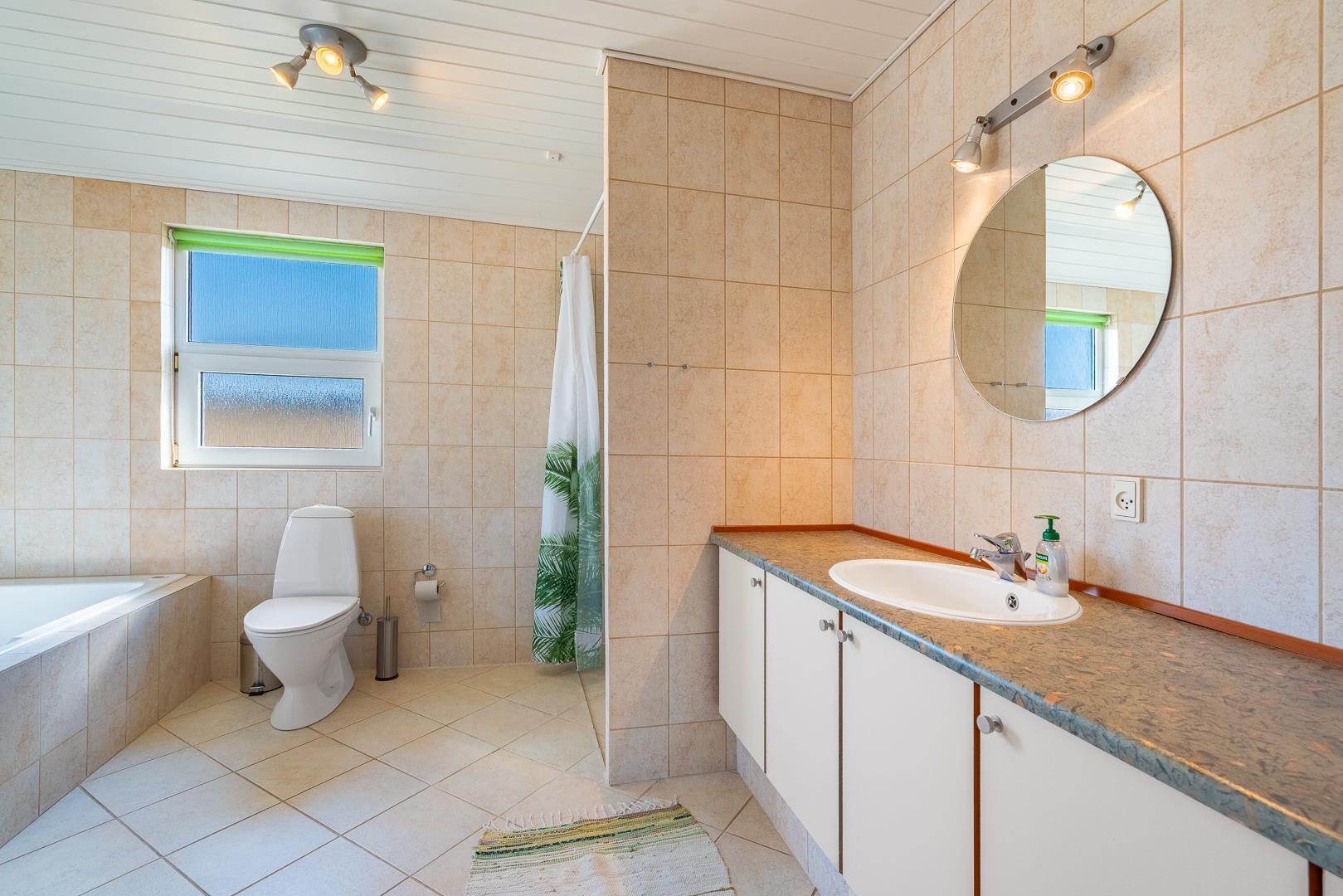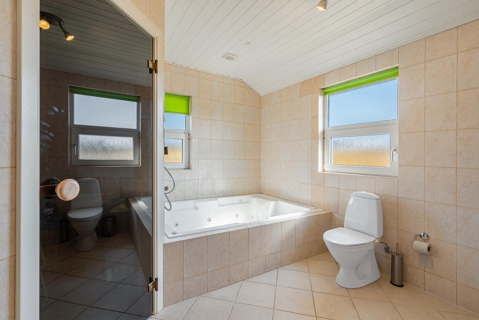 Huset har to flotte badeværelser med bruser, hvor det ene har både spabad og sauna – ideelt til at forkæle dig selv og løsne op for spændinger efter en aktiv dag.