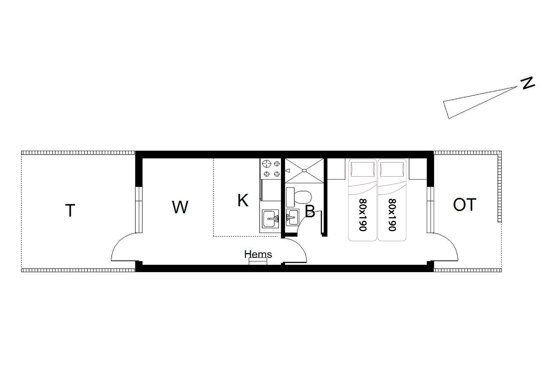 Sengestørrelse: 1 dobbeltseng med 2 madrasser 80 x 190 cm.