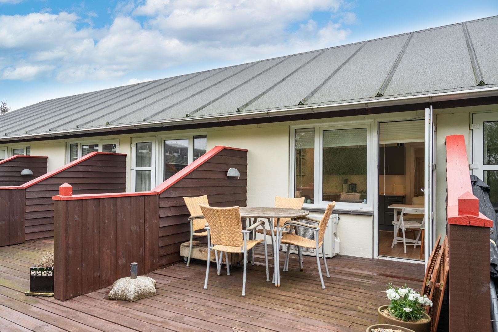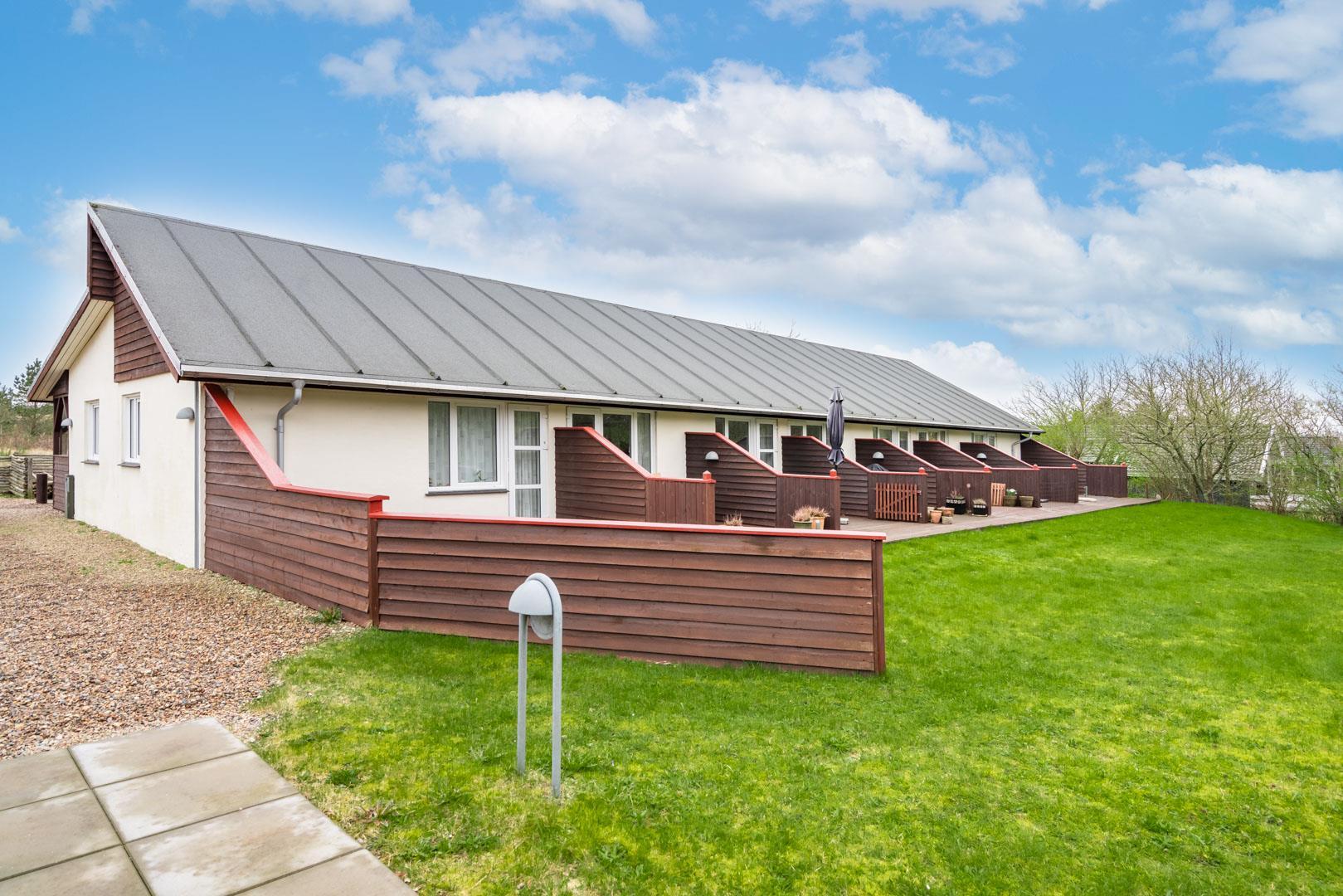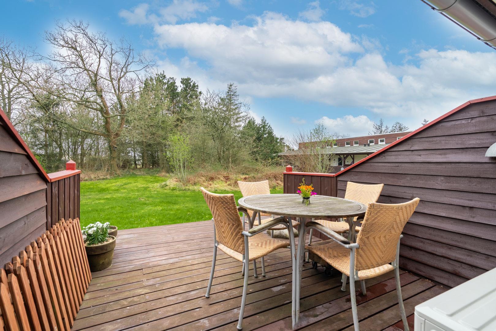 Velpasset, hyggeligt og lyst indrettet ferielejlighed opført i 2005. Der er lavet nyt badeværelse i 2024. Til lejligheden hører såvel overdækket terrasse samt en åben terrasse med havemøbler. Køkkenet ligger i forbindelse med spisestuen. Et soverum med dobbeltseng. Ferielejligheden ligger i et naturområde med gode muligheder for vandreture. Lejligheden ligger endvidere 2 minutters gang fra Henne Golfklub. Vesterhavet og Henne Strand med mange indkøbsmuligheder. I perioden fra påske til efterårsferien er der 200 m til campingpladsen, hvor der er lille købmandsbutik.