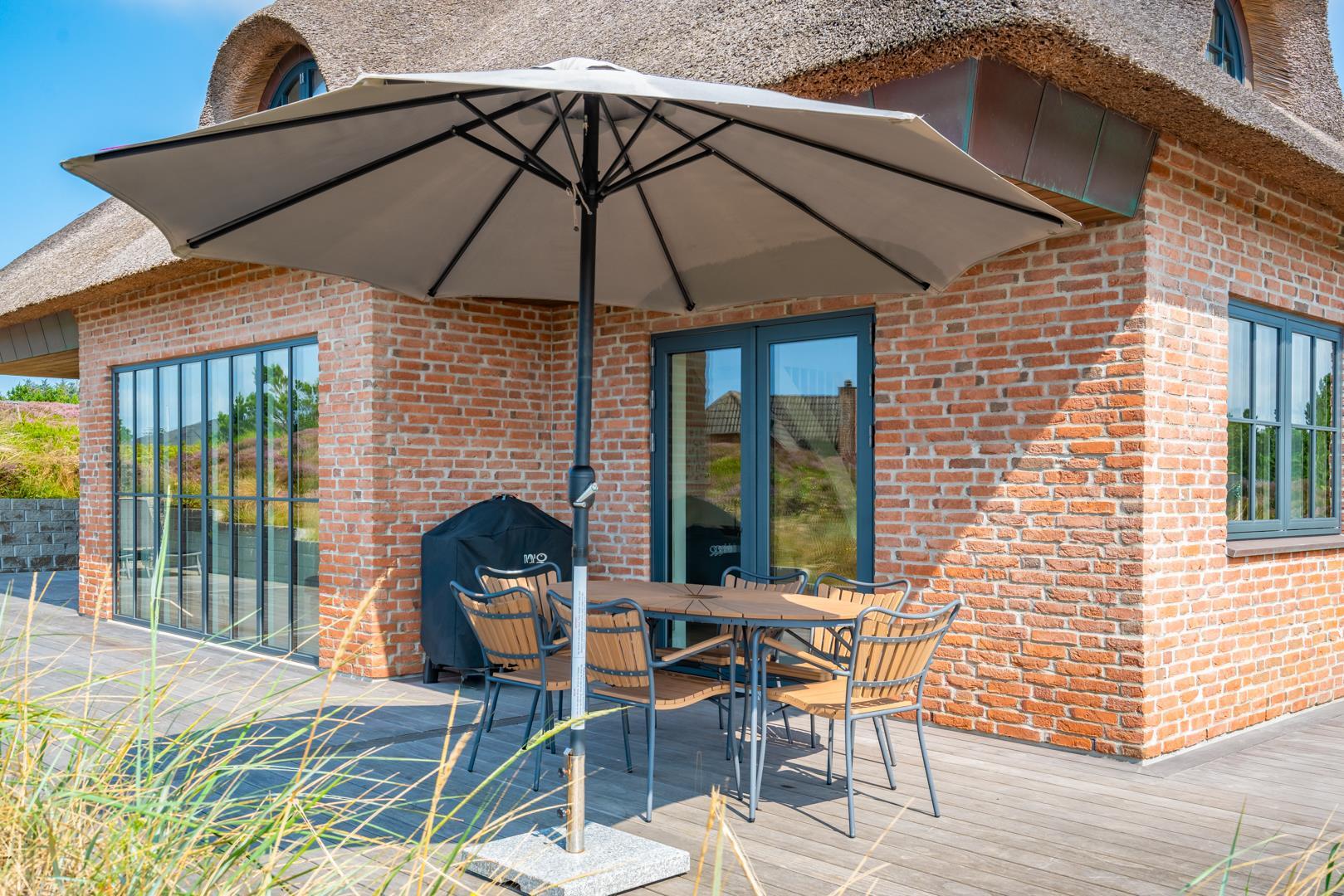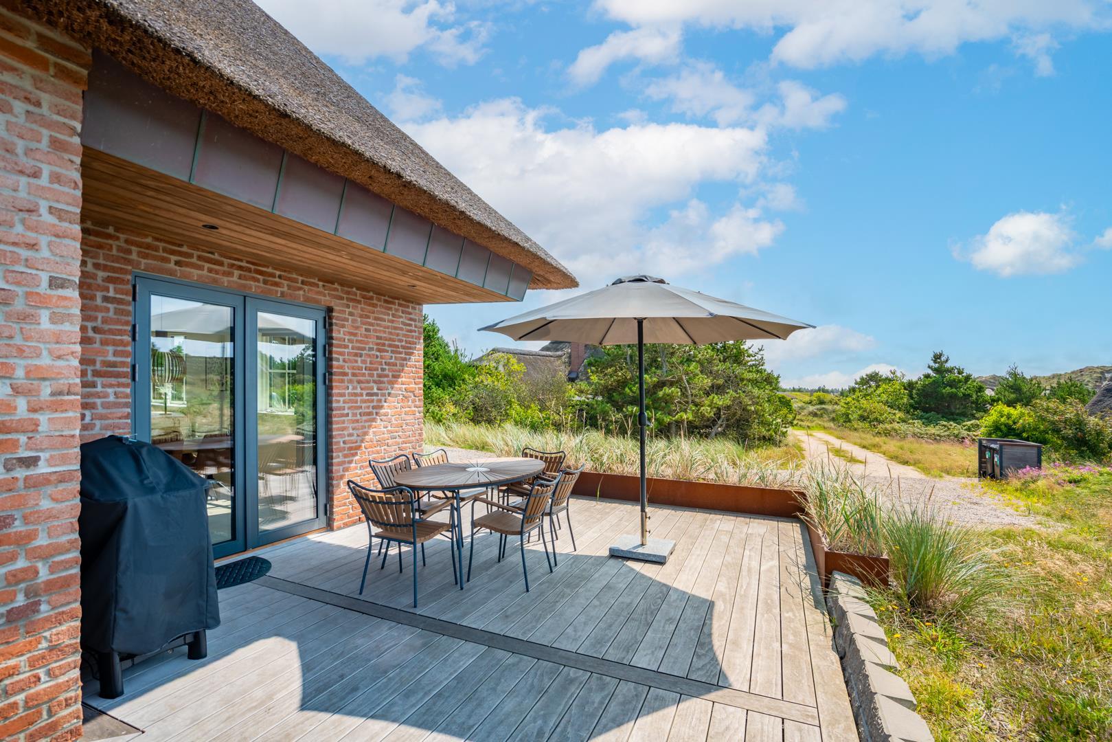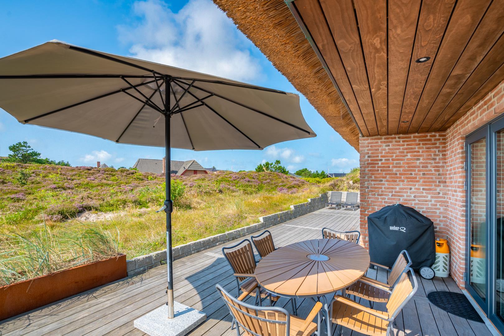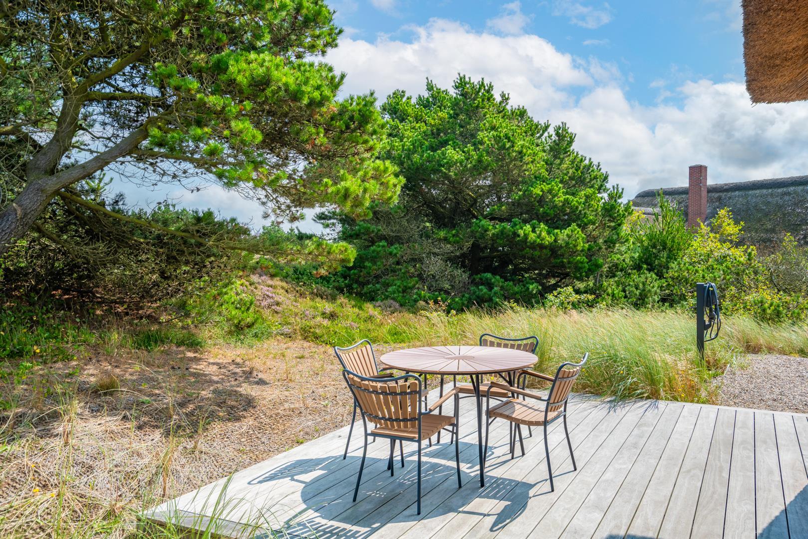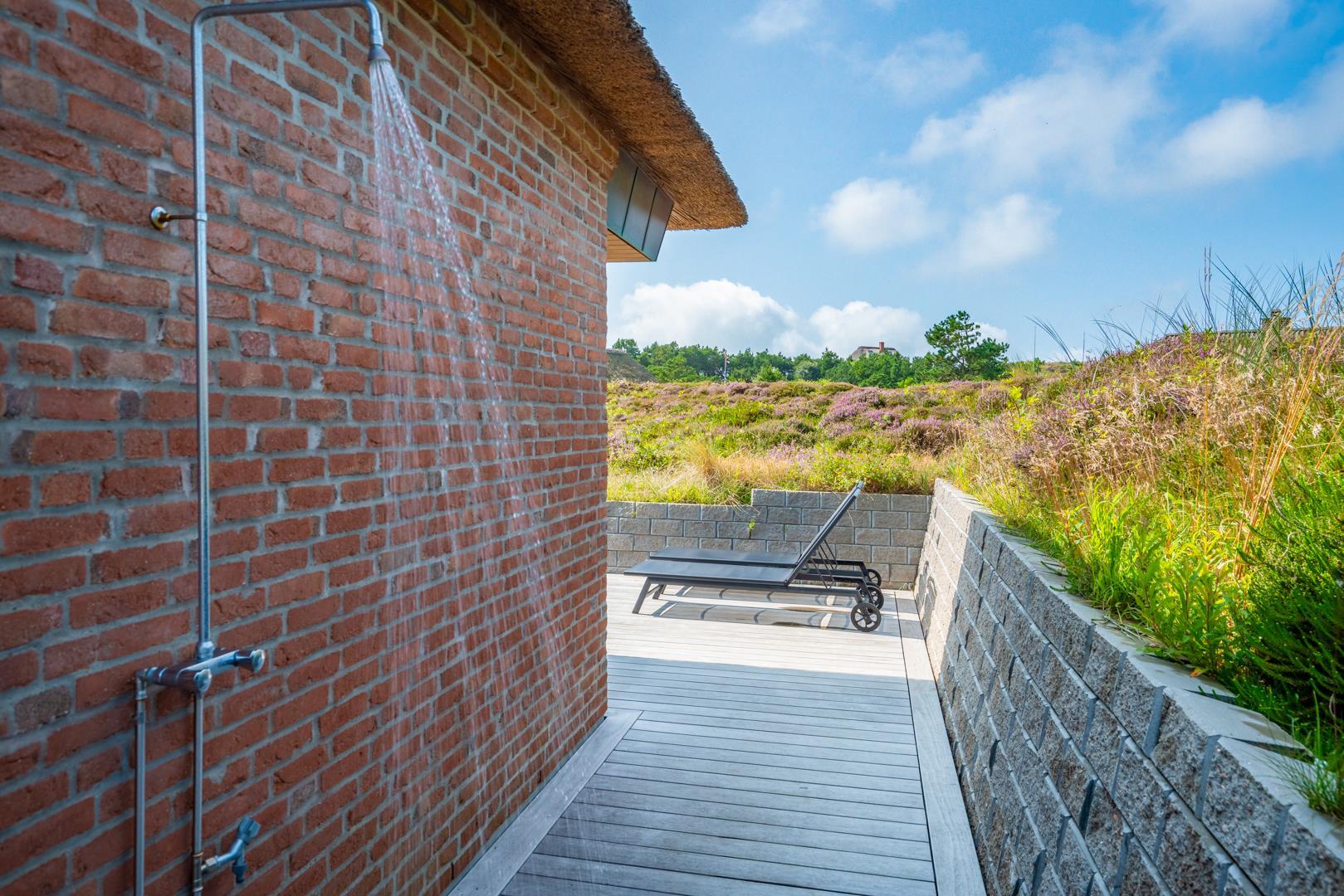 Den overdækkede terrasse giver mulighed for hyggelige stunder i det fri – uanset vejret. Efter en dag på stranden kan du skylle sandet af under den udendørs bruser.