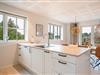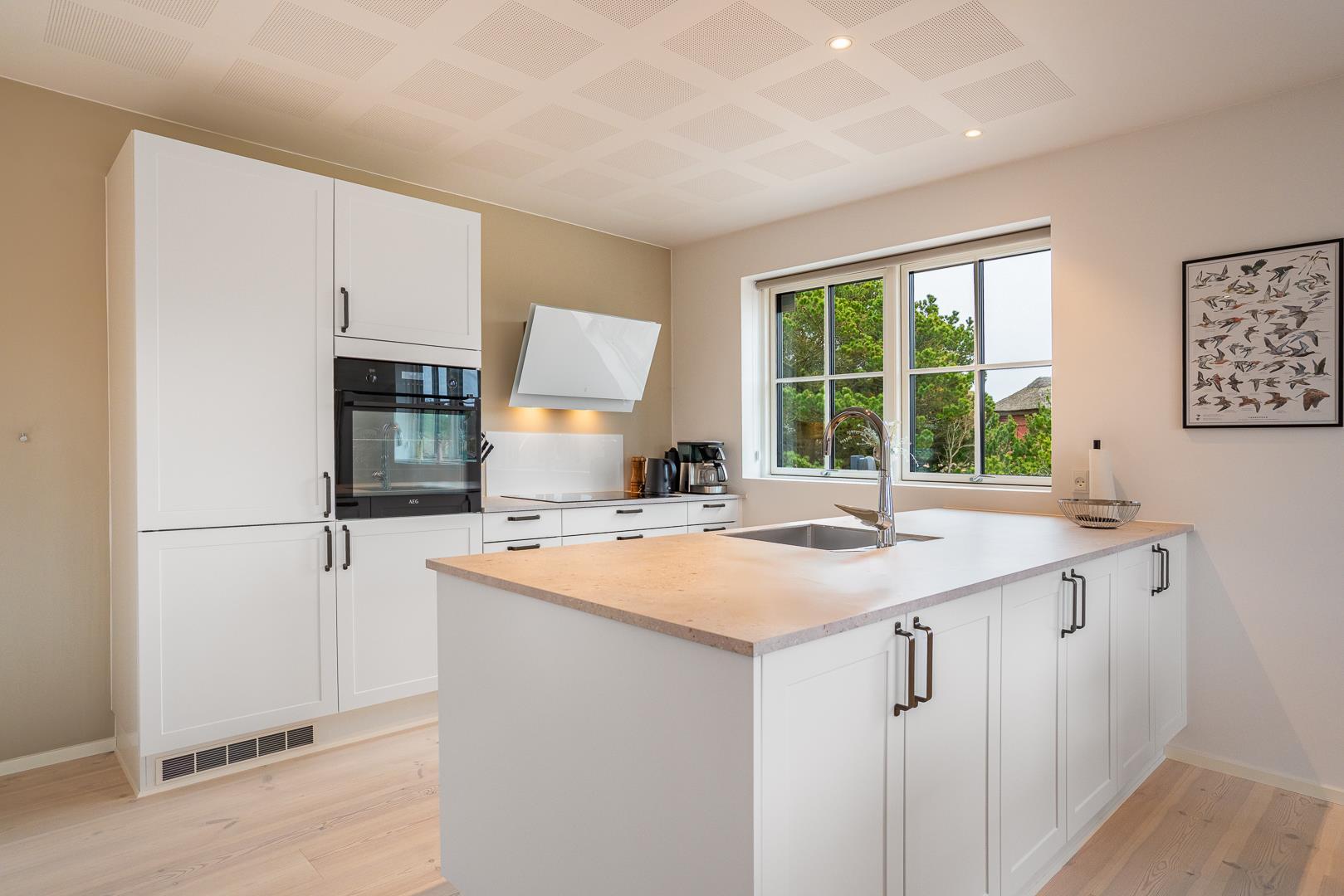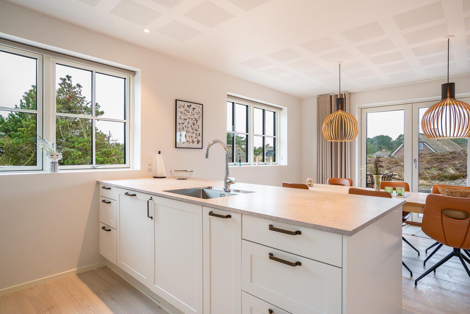 Køkkenet er moderne og veludstyret med bl.a. opvaskemaskine og god bordplads, så det er nemt at lave mad sammen. En energieffektiv varmepumpe sørger for et behageligt indeklima året rundt.