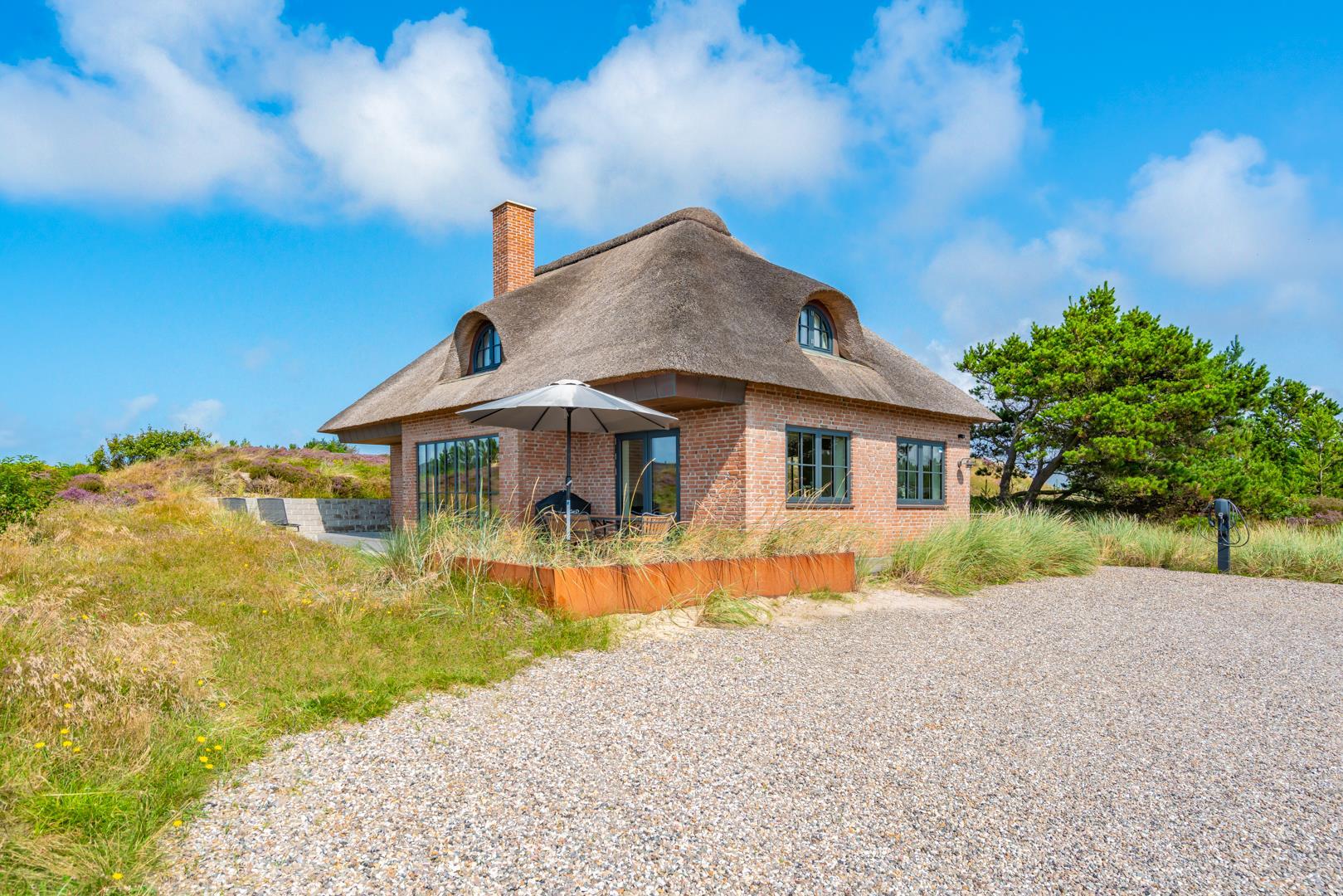 Har du elbil, er det ekstra bekvemt: Sommerhuset har en ladestander (type 2) lige udenfor.