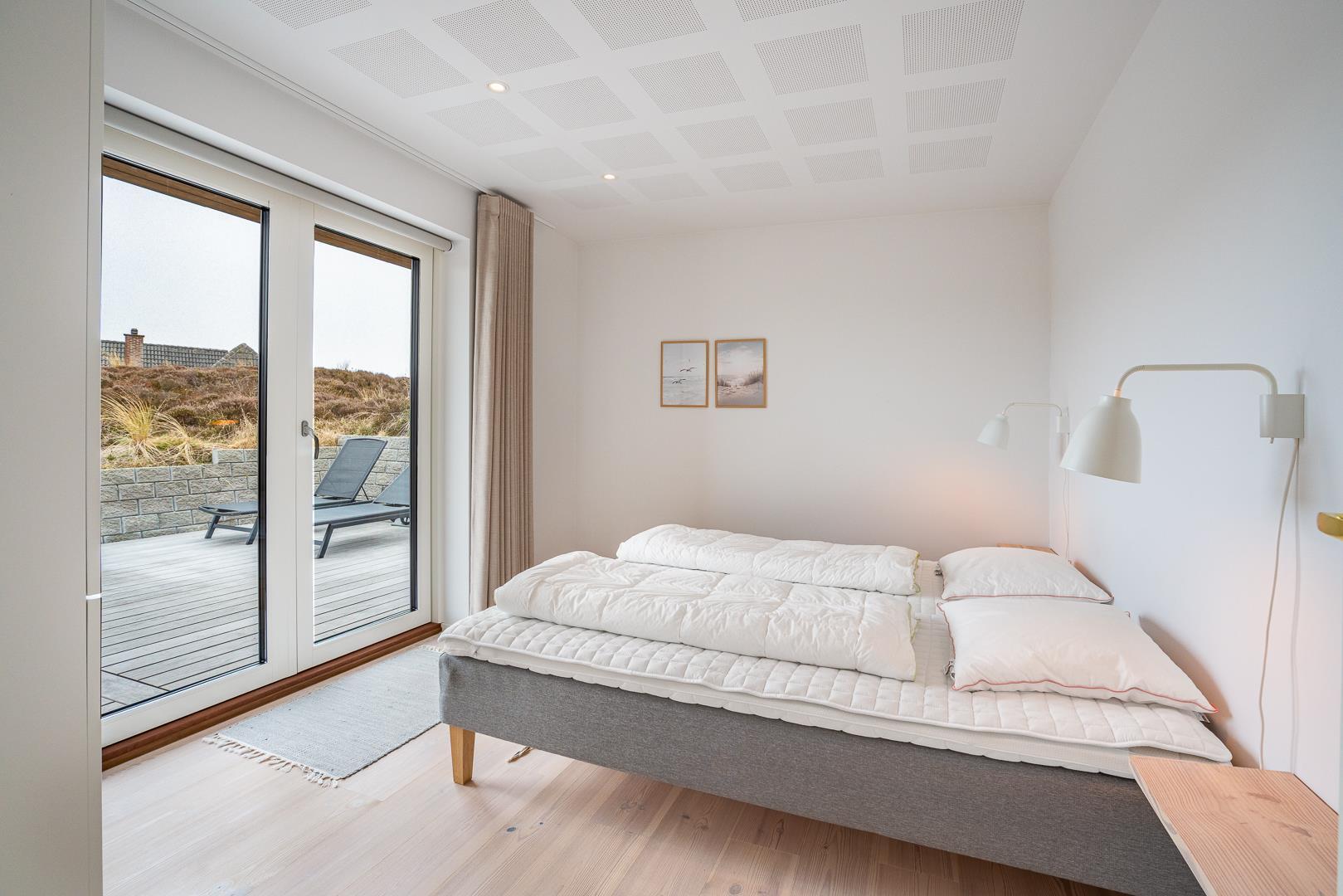 Sommerhuset har tre soveværelser – alle med dobbeltsenge. I alt er der seks gode sovepladser, som passer perfekt til både børnefamilier og par, der rejser sammen.