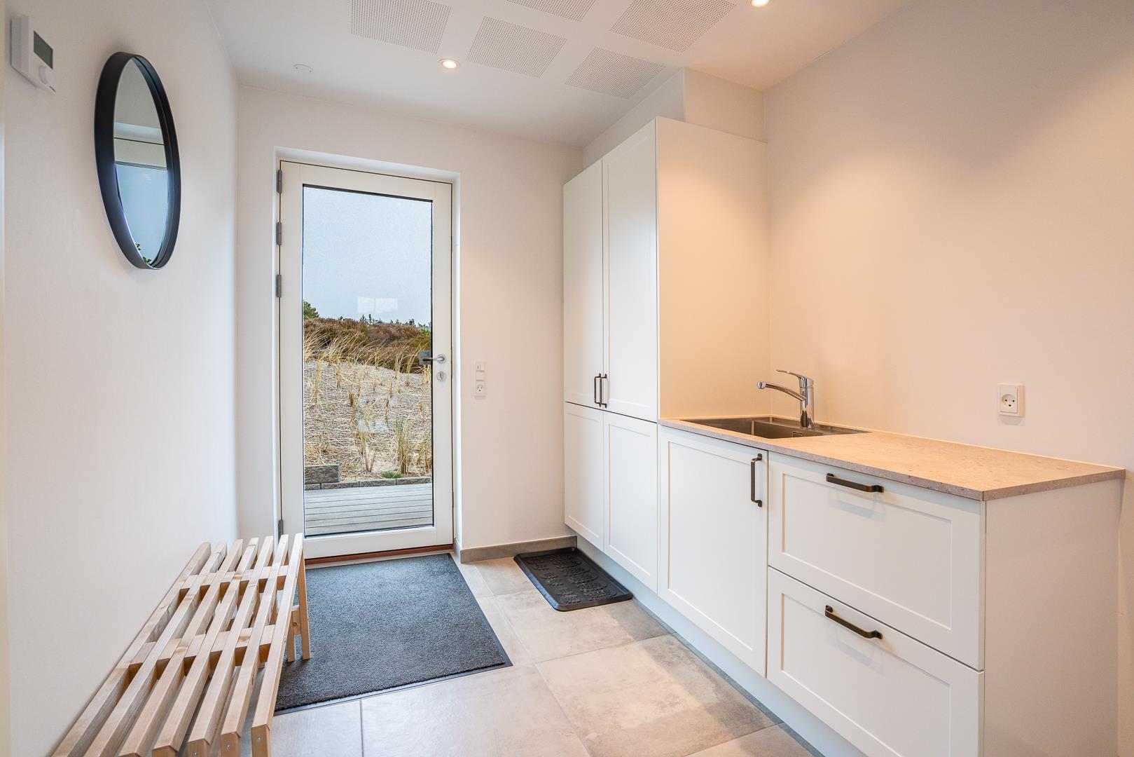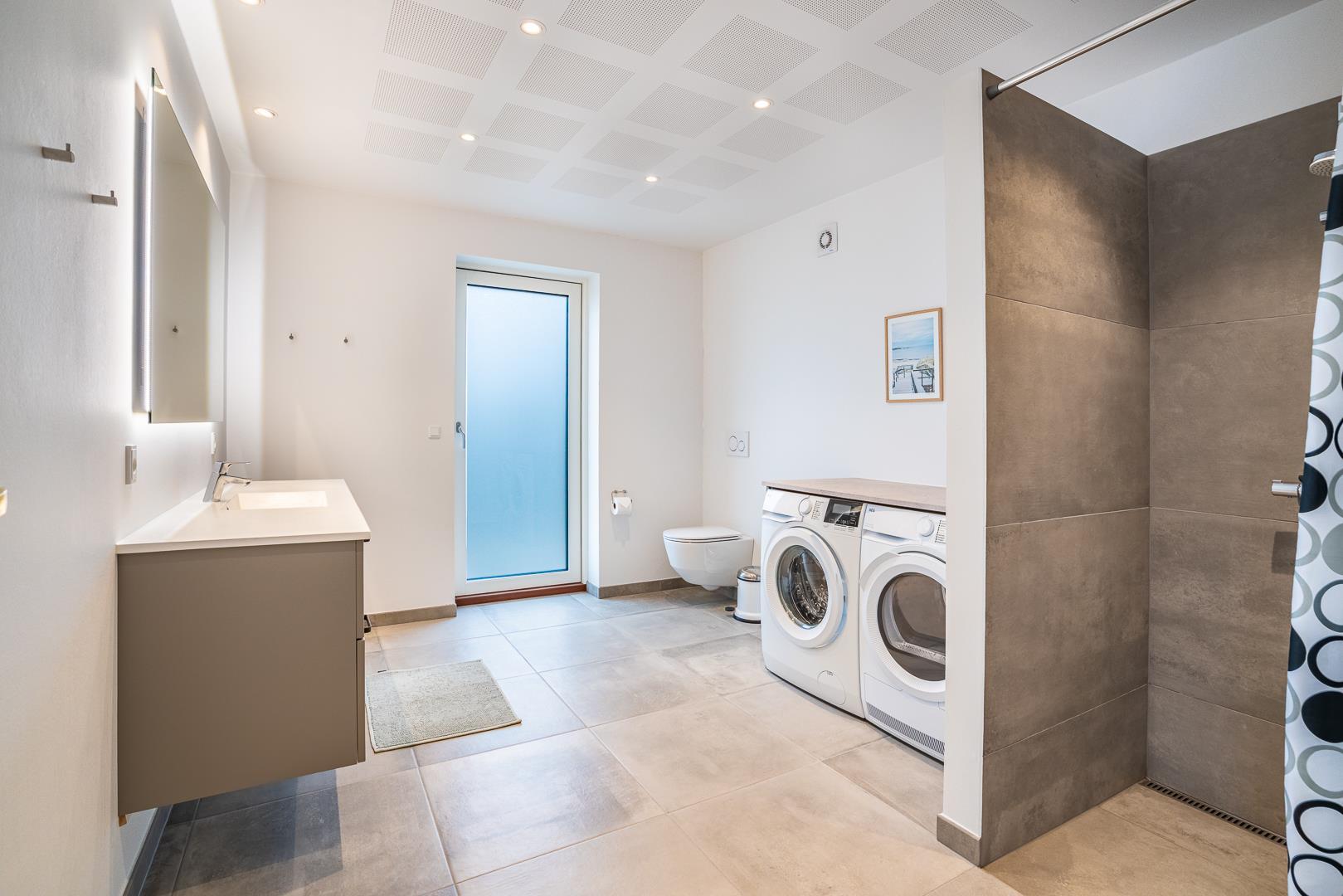 Begge badeværelser er moderne indrettet med bruseniche og gulvvarme, så du får en behagelig oplevelse – også når det er køligt udenfor. Der er både vaskemaskine og tørretumbler, hvilket især er praktisk til længere ophold.