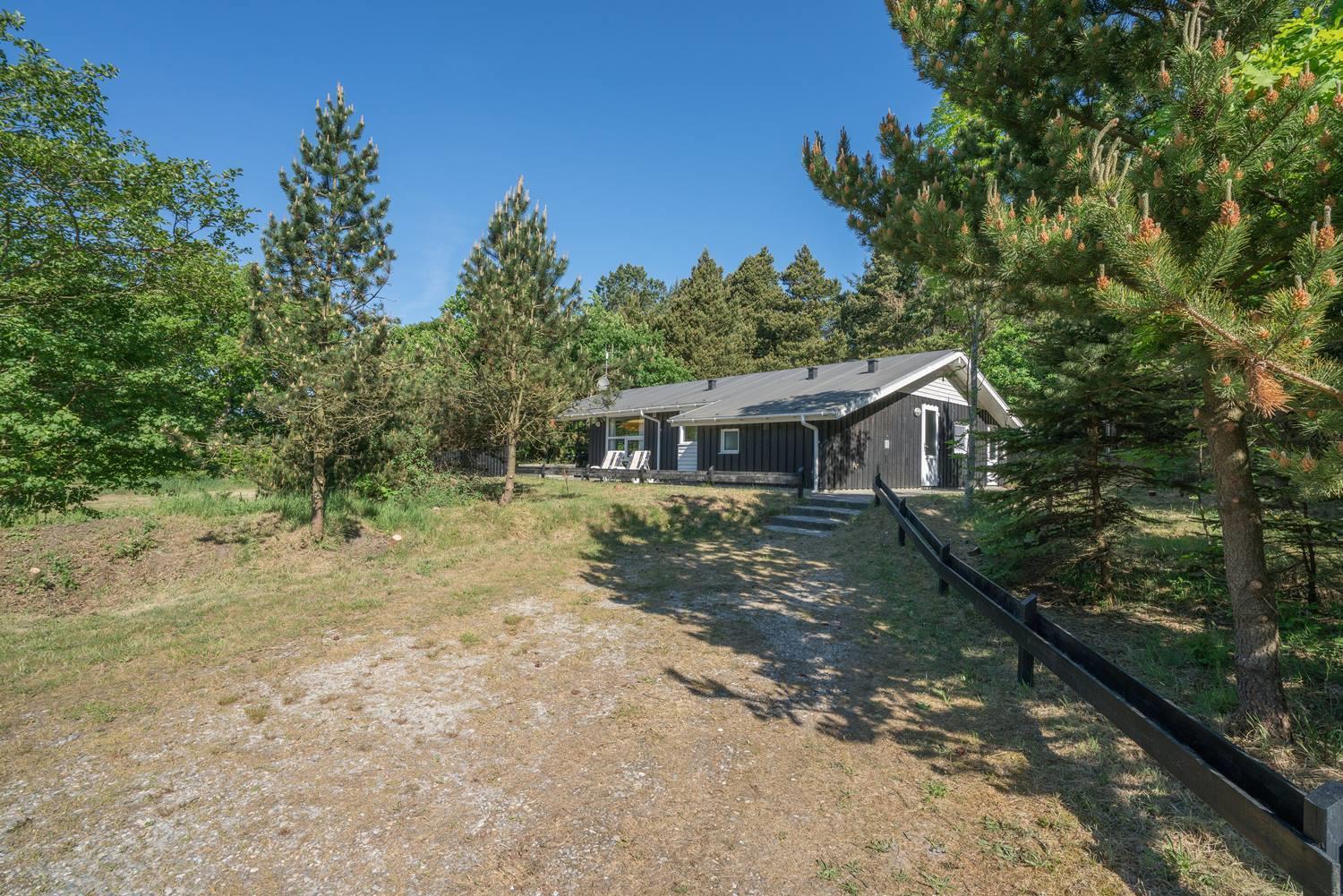 Sommerhuset ligger i rolige omgivelser og samtidig centralt: Den fine sandstrand ved Henne Strand ligger kun 1,8 km væk, og indkøbsmuligheder, bager og restauranter nås allerede efter 1,5 km.