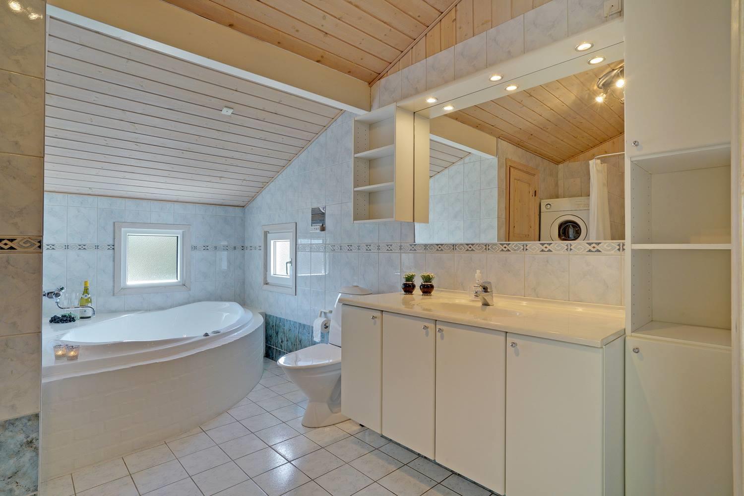 3 soveværelser giver behagelige rammer for afslappende nætter. Badeværelset er et særligt plus: Gulvvarme, sauna og spabad skaber små wellnessoplevelser – helt uafhængigt af vejret.