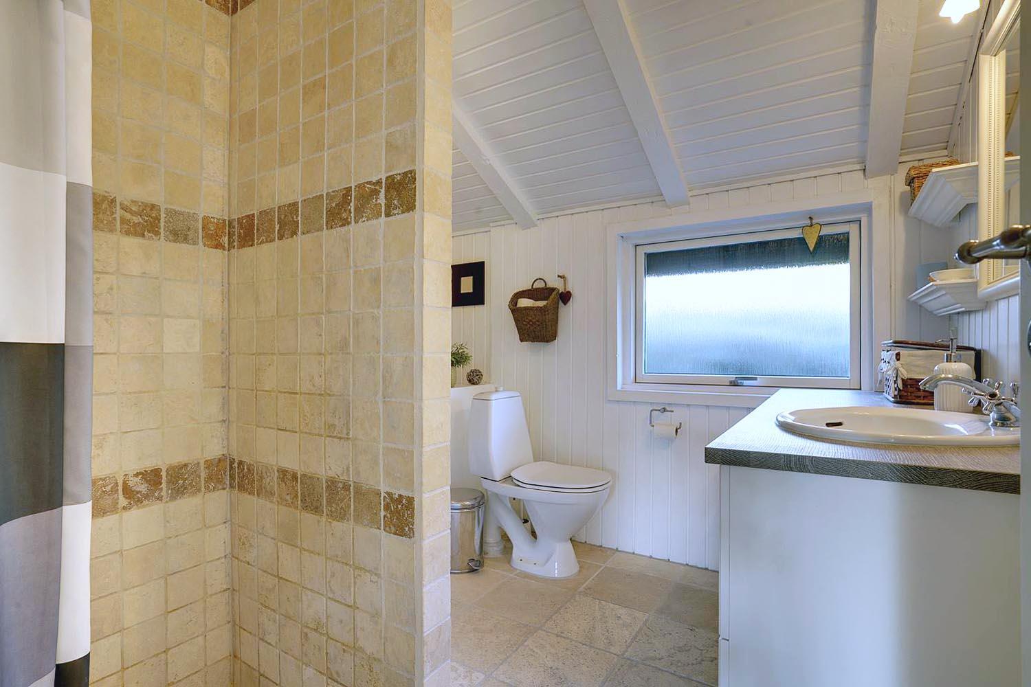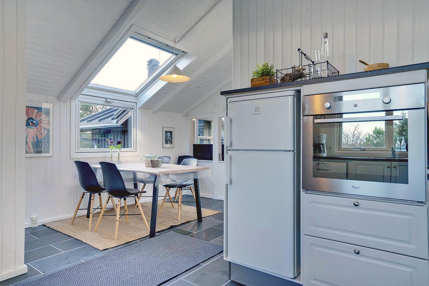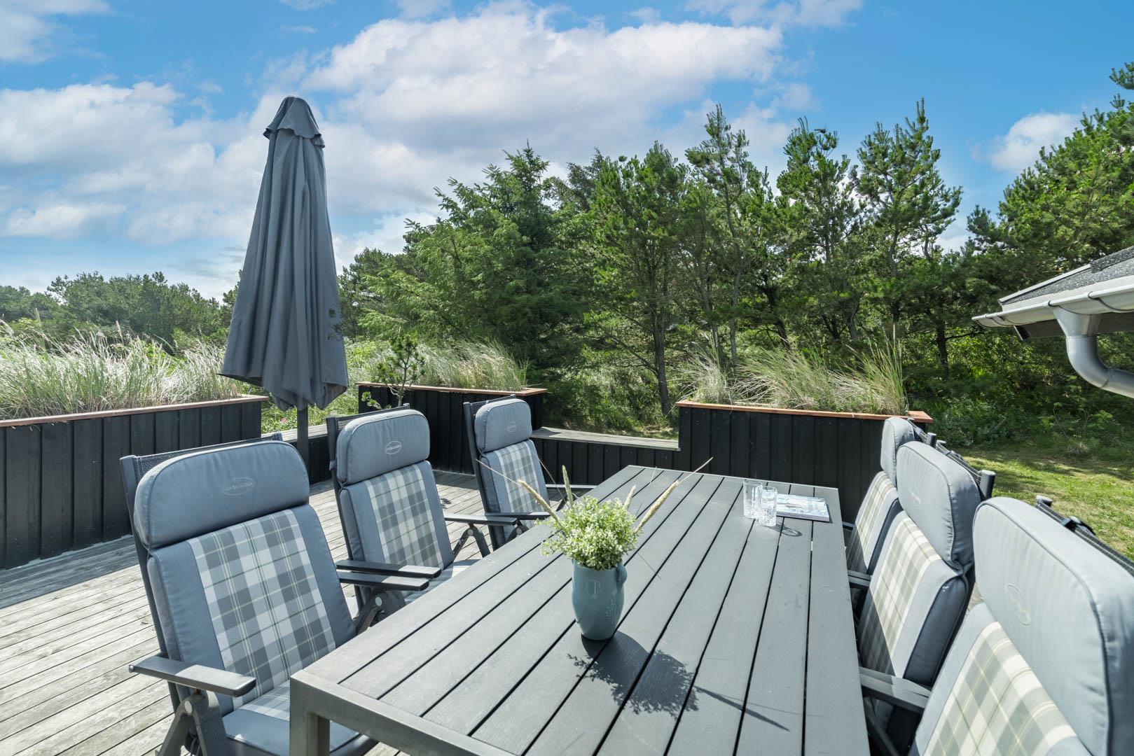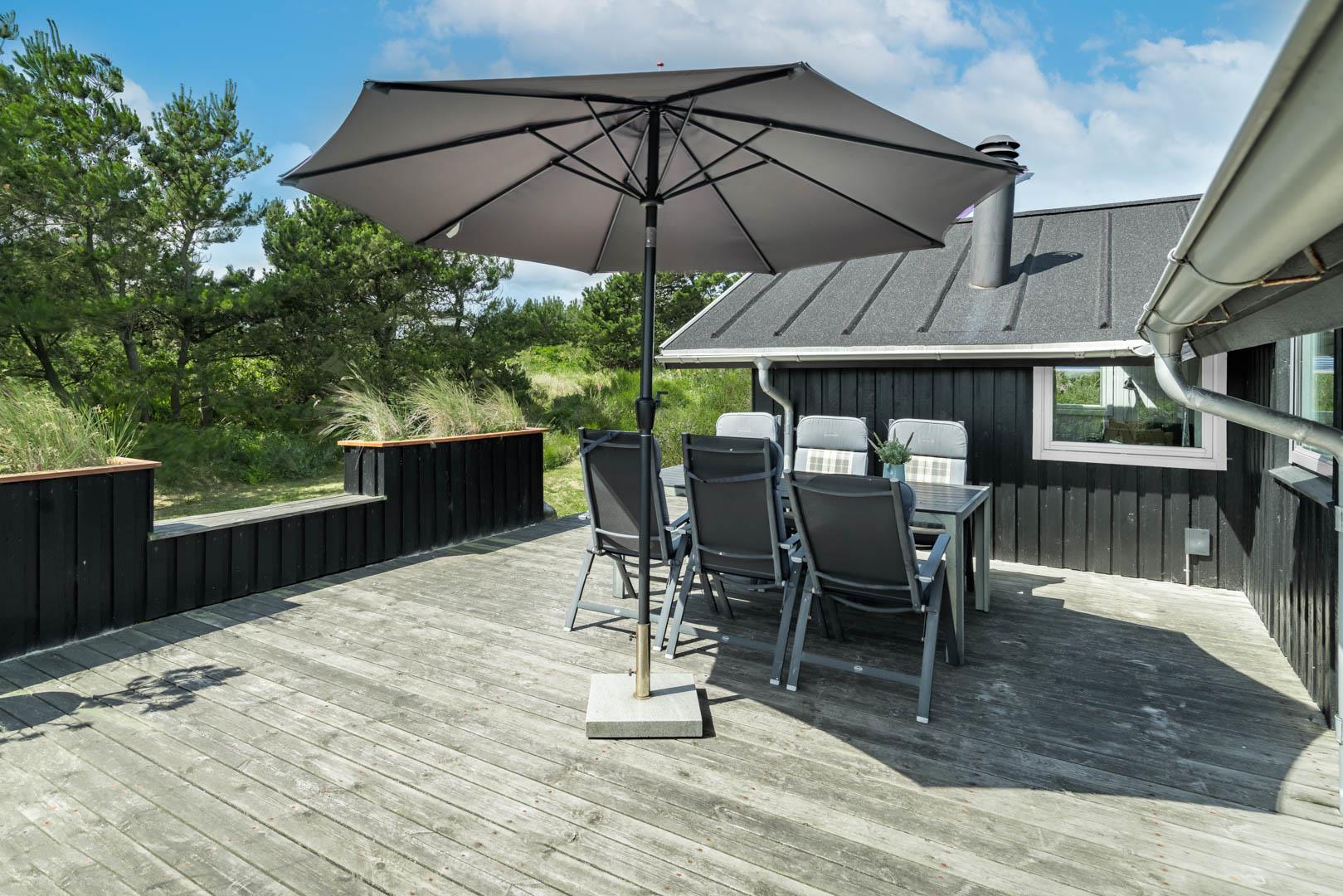 Fra stuen er der udgang til er en stor dejlig træterrasse, som ligger perfekt for solen. Et hus som bidrager til en positiv ferie.