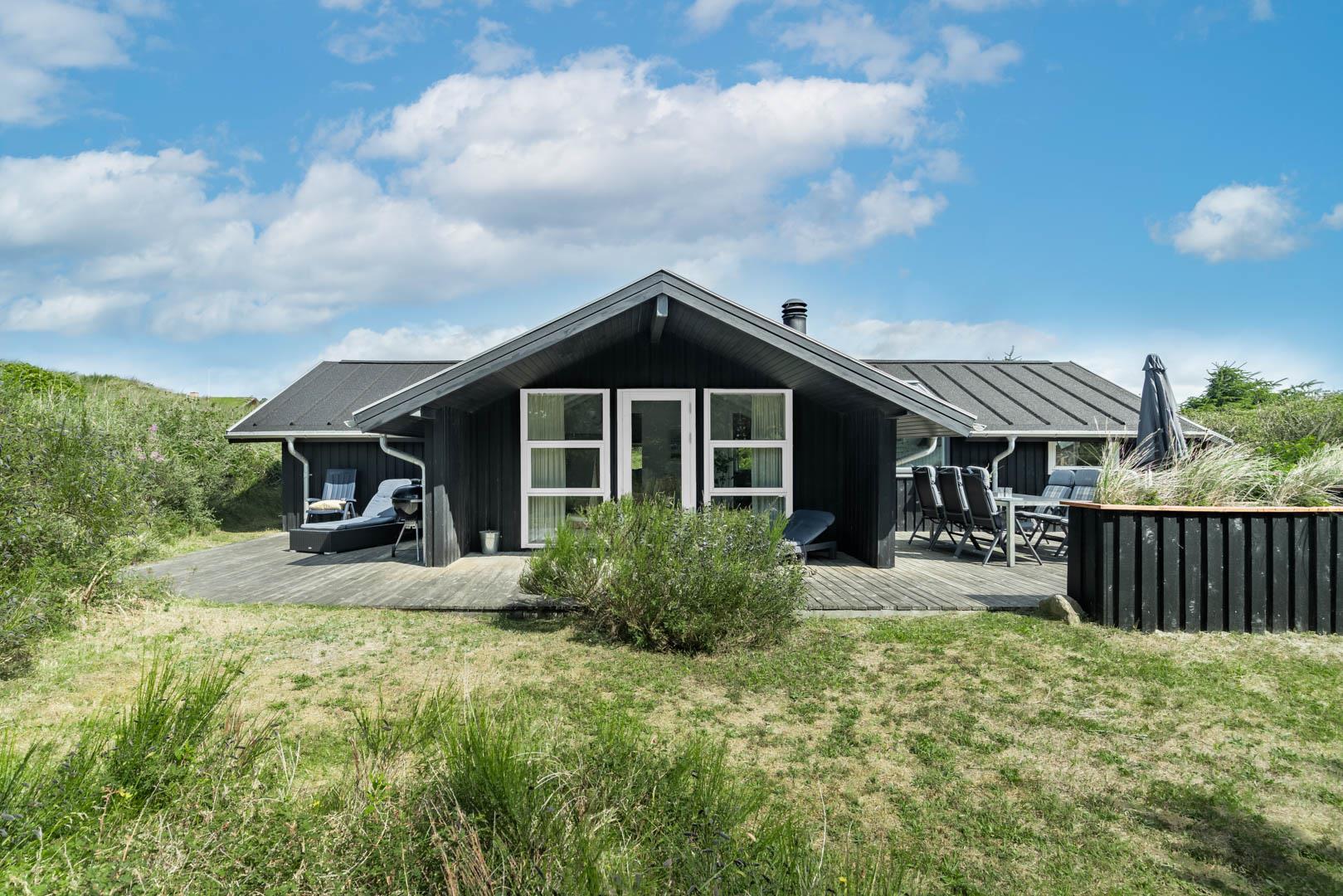 Et yderst dejligt feriehus, beliggende på en smuk og rolig klitgrund tæt på Henne Mølle Å.