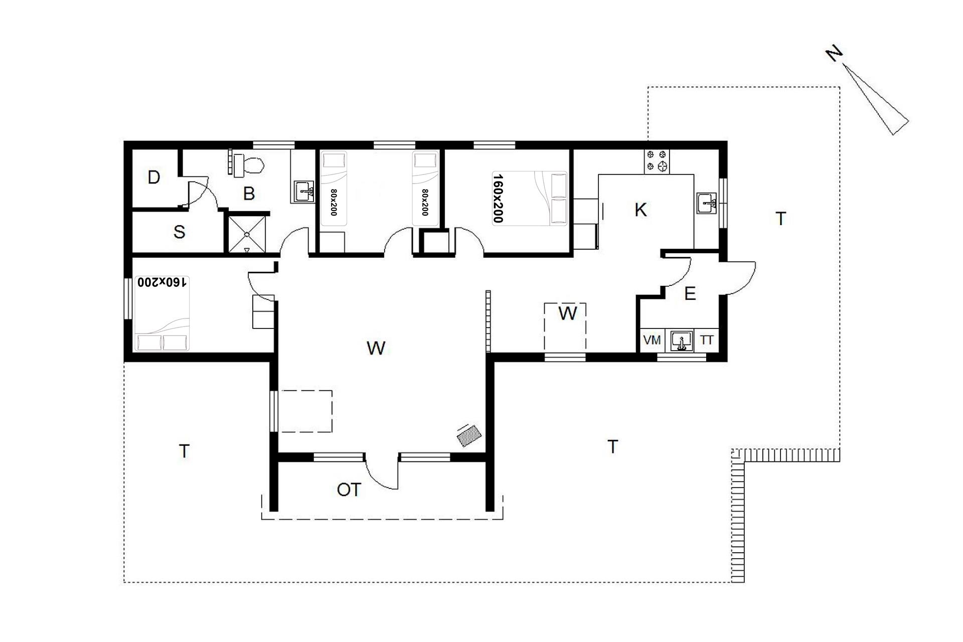Sengestørrelse: 2 dobbeltsenge 160 x 200 cm + 2 enkeltsenge 80 x 200 cm.