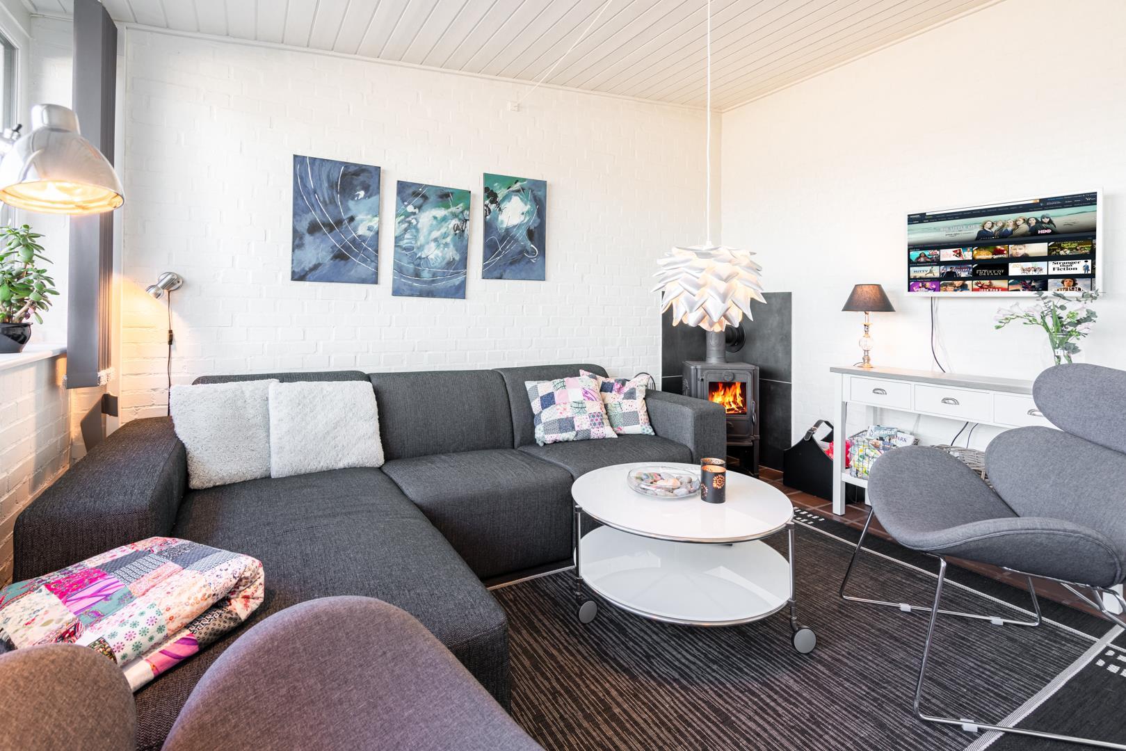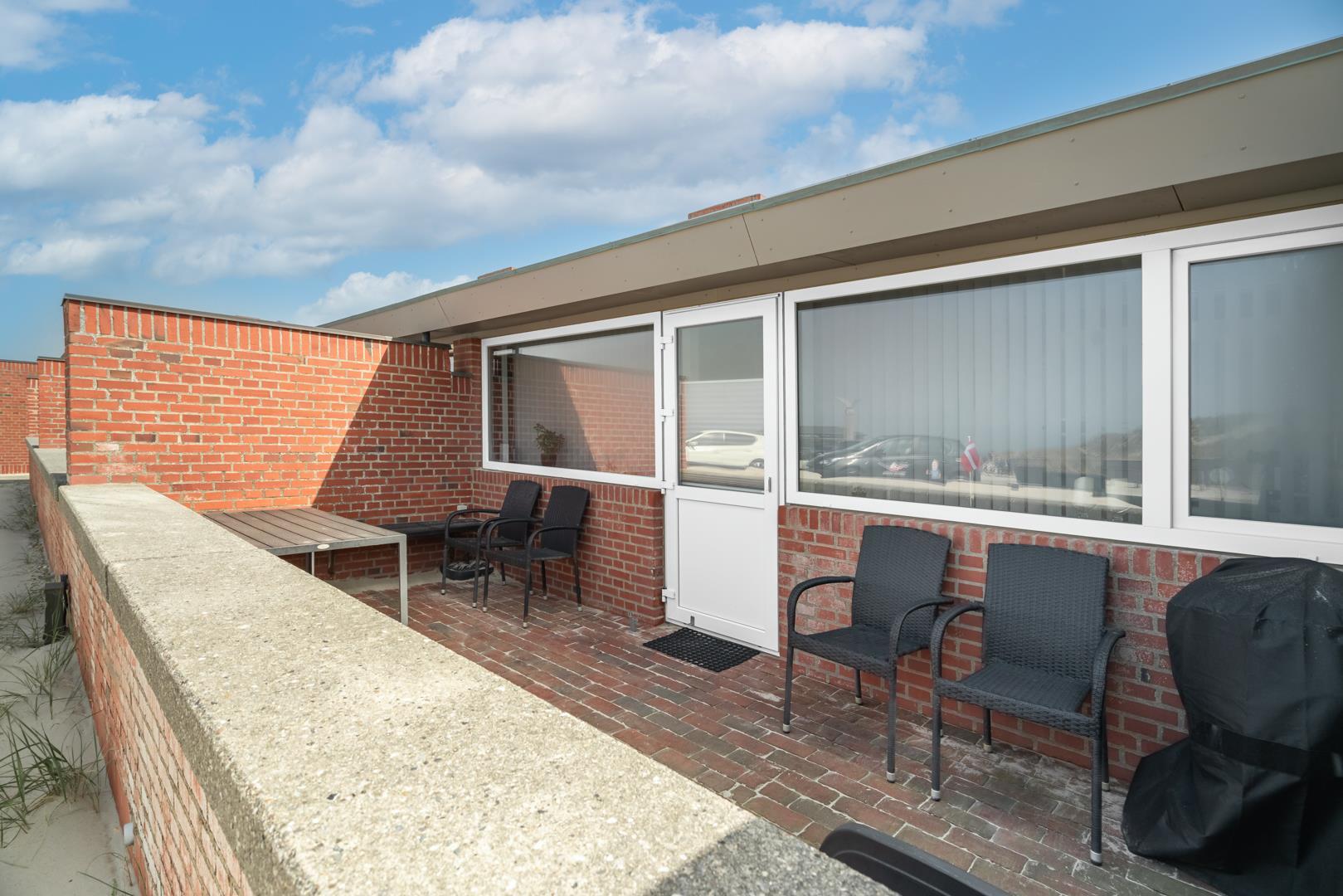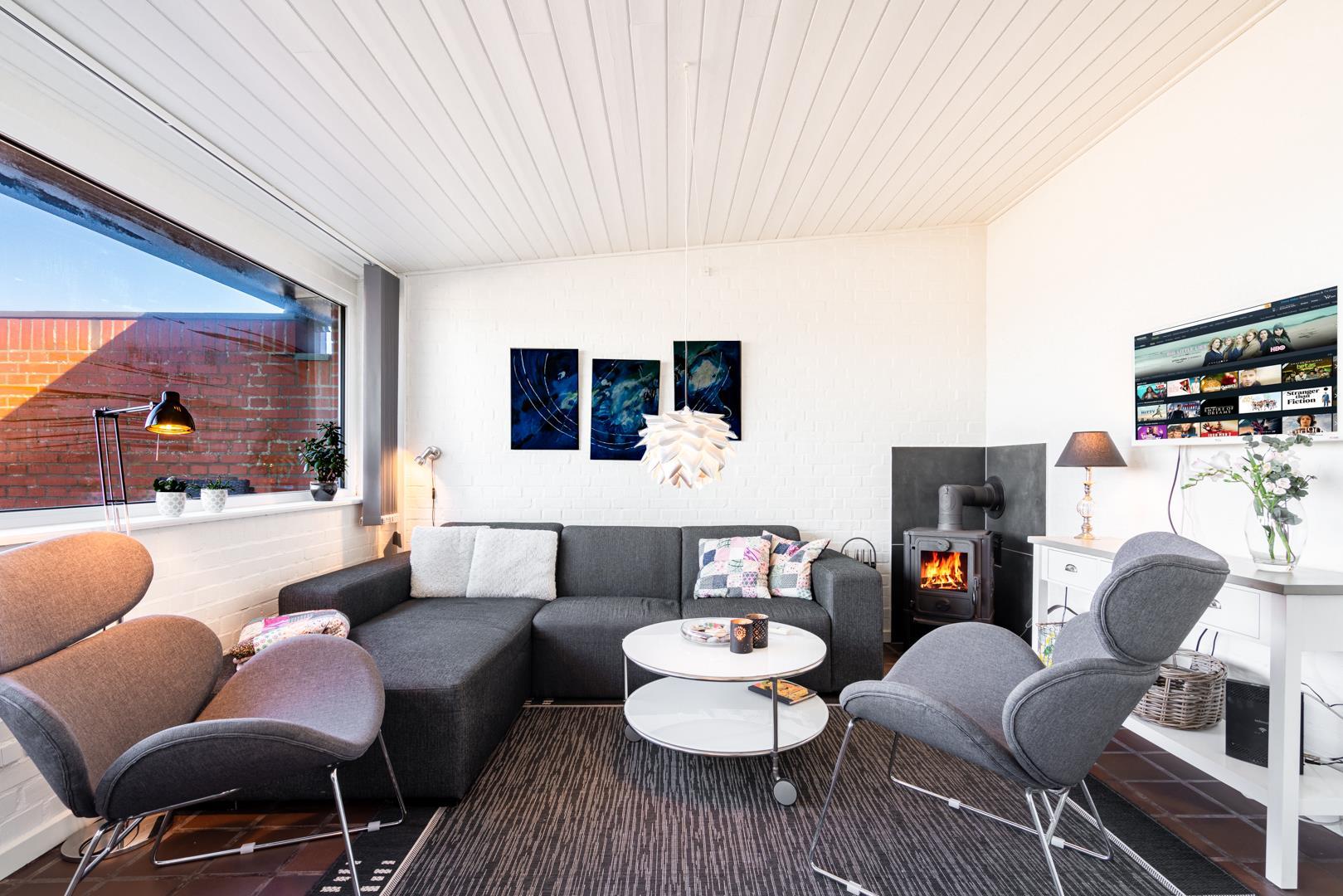 Hyggelig lejlighed ved Vesterhavet med terrasse, brændeovn og kort afstand til Henne Strand centrum.