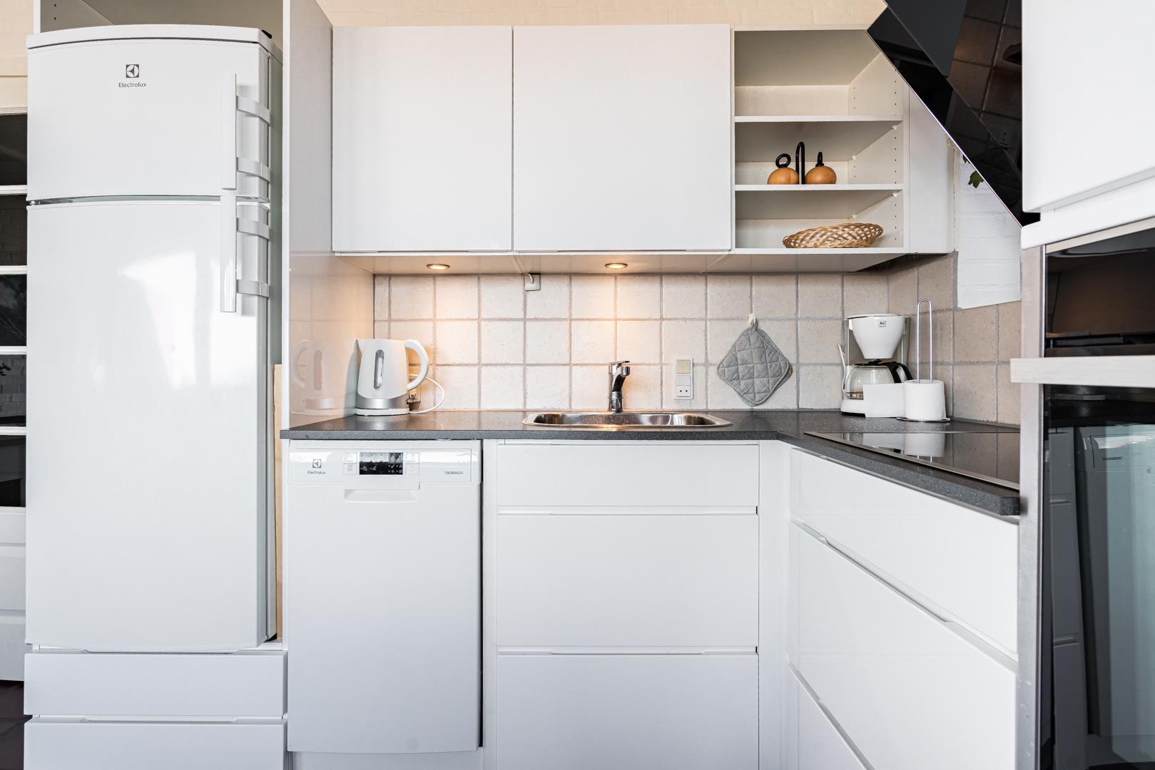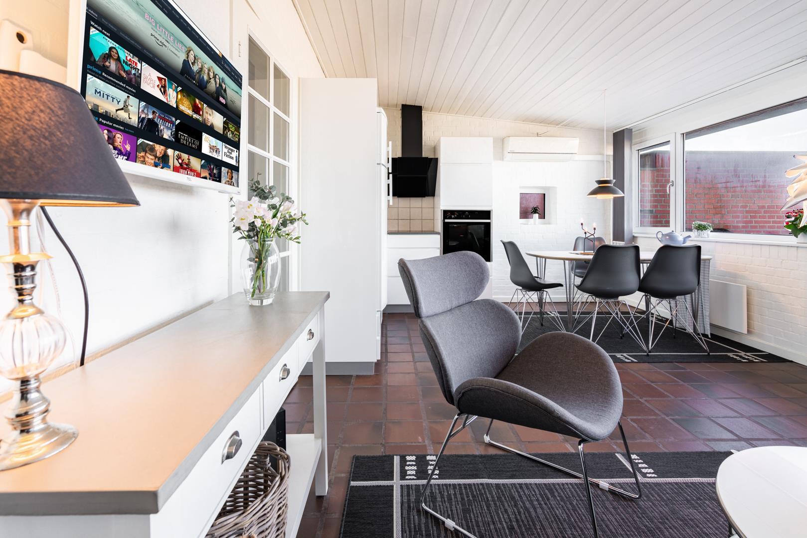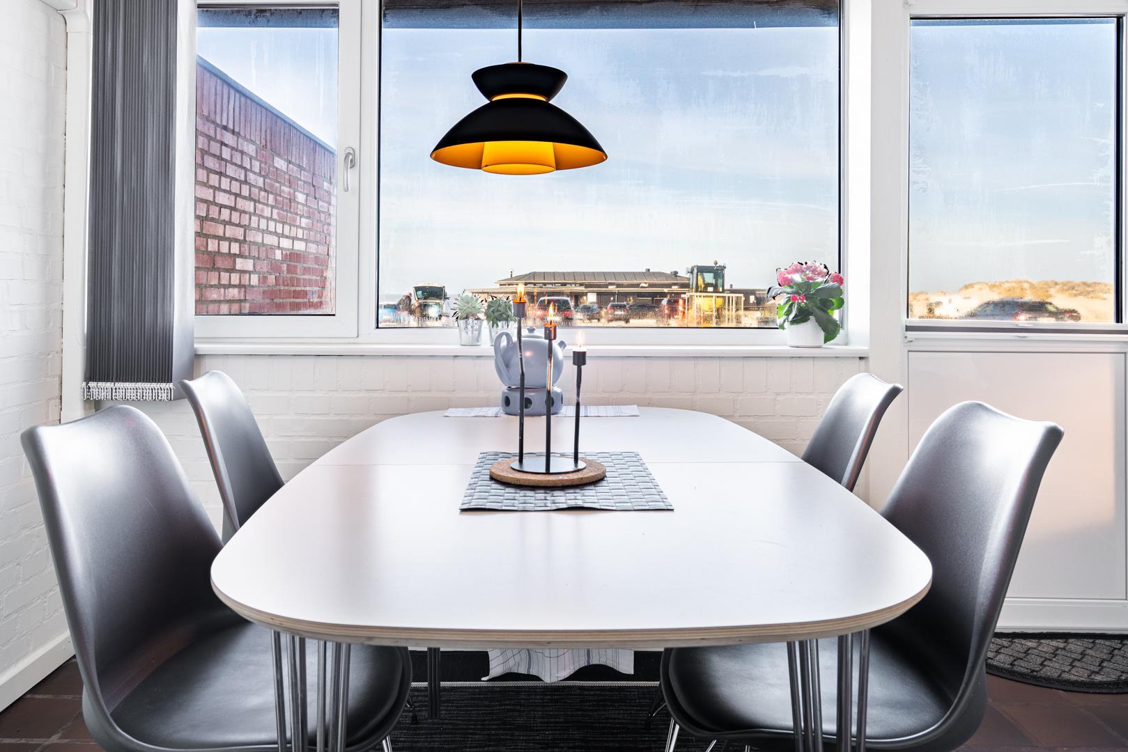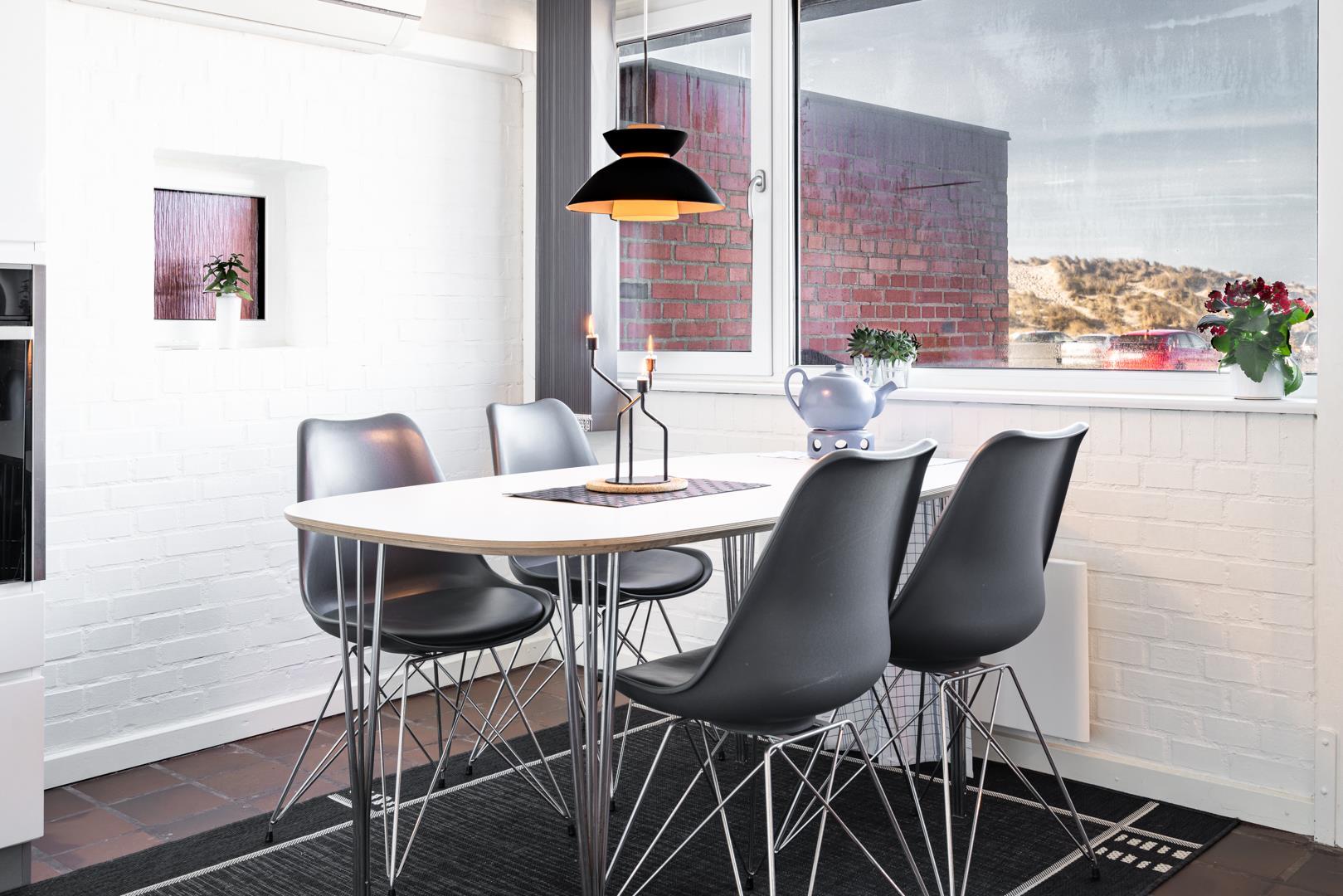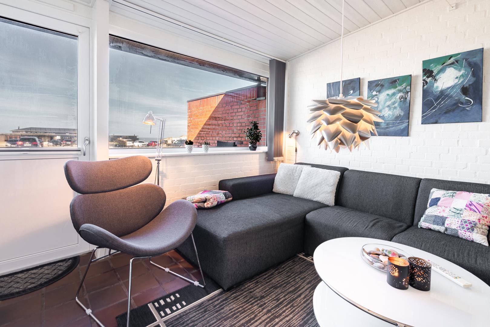 Direkte ved Vesterhavet hvor solnedgangen kan nydes fra lejligheden. Der er plads til 4 personer i denne meget velholdte og hyggelige lejlighed. Fra køkkenalrummet er der udgang til terrassen, som vender ud mod havet. På en lun aften kan man kigge ud på Vesterhavet eller nyde vinen og grillmaden mens solen går ned. I kan også efter en lang gå tur ved stranden slappe af foran brændeovnen med en god bog. Der er fra lejligheden kun få minutters gang til Henne Strands hyggelige butikker og restauranter. En lejlighed hvor rammerne er skabt for en god ferie ved Henne Strand - hele året! Max 2 små hunde