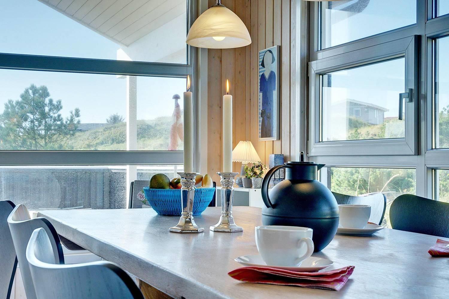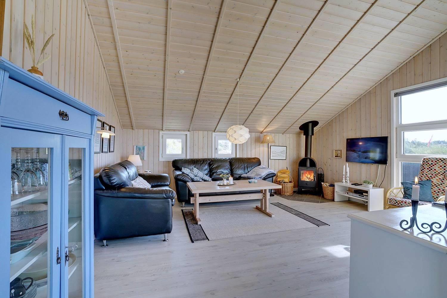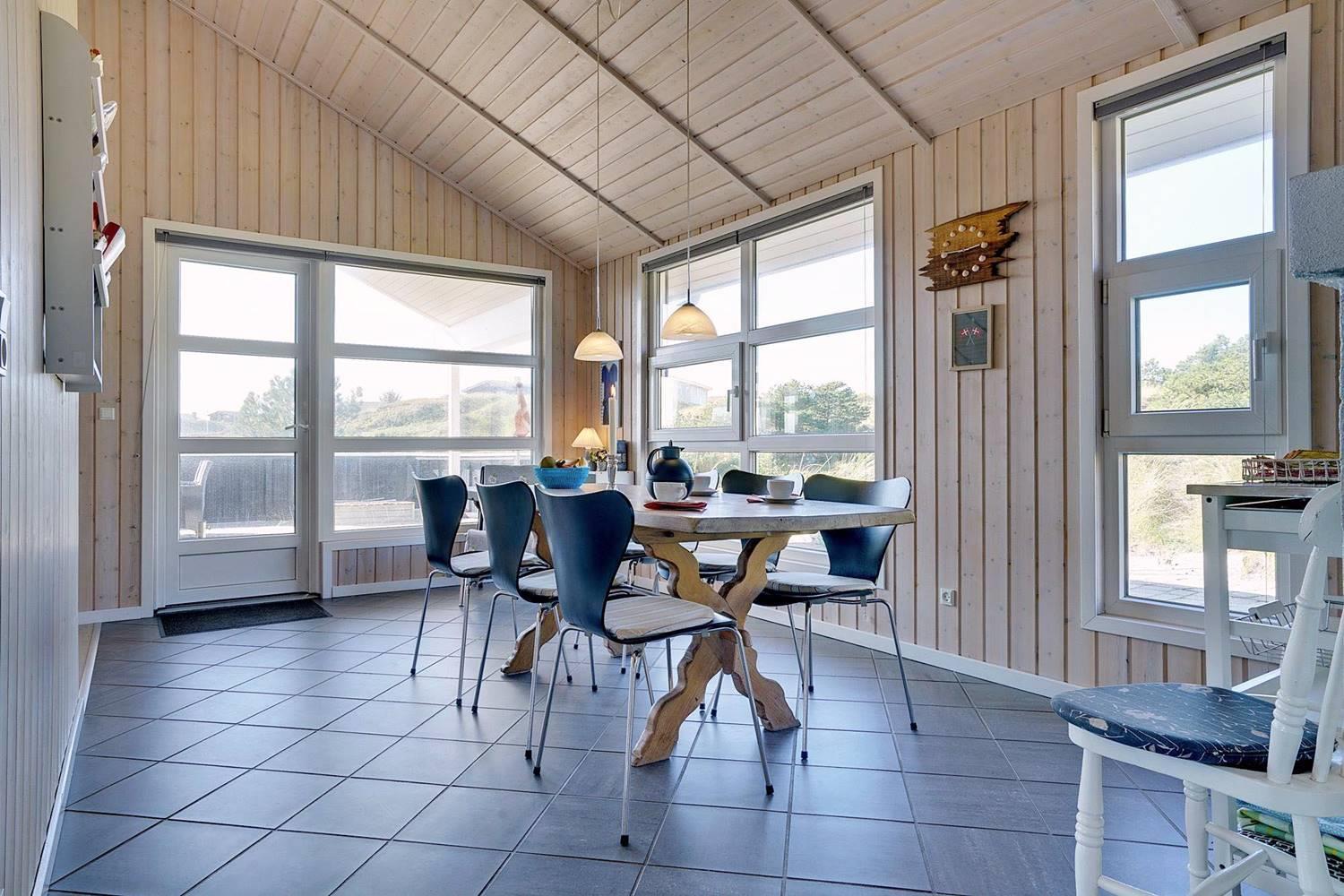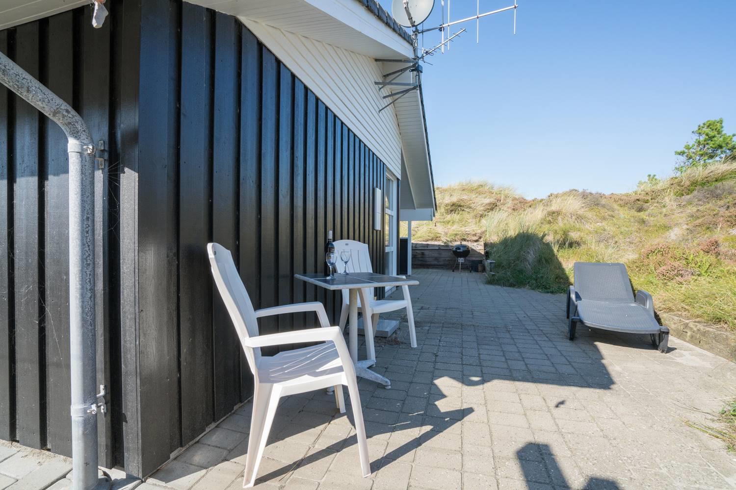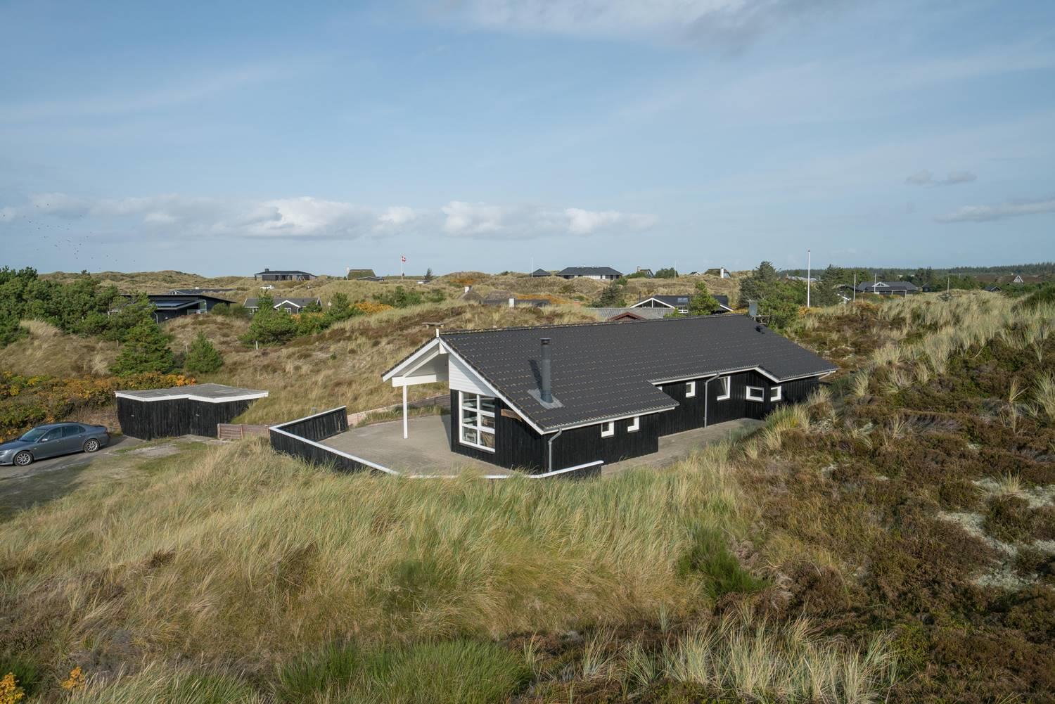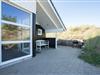 Virkelig flot kvalitetsferiehus beliggende på en pragtfuld klitgrund for enden af blind vej. Der er stort terrasseareal, hvor solen og det flotte område kan nydes. Huset hat stort glasparti som giver et godt lysindfald i huset. Flot køkken og spiseafdeling hvor fra der er adgang til hyggelig stue med brændeovn som er pænt møbleret. 2 flotte badeværelse med bruser, i det ene er der spa og sauna. I dette skønne feriehus er de perfekte rammer tilstede for en god ferie.