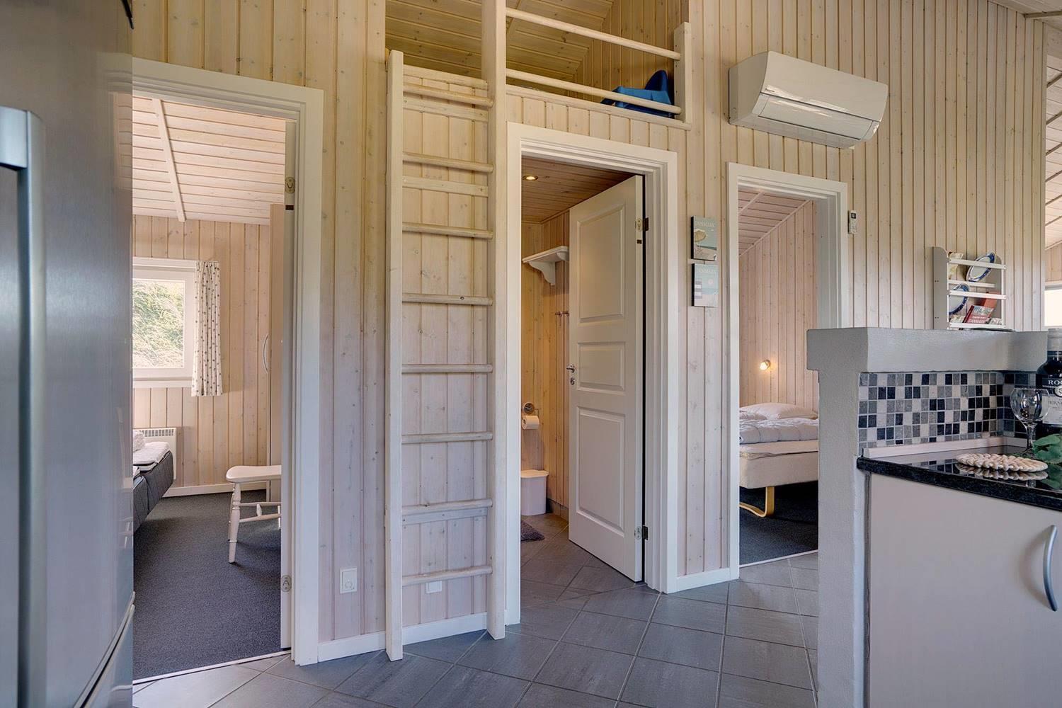 Sengestørrelse: 2 dobbeltsenge med 2 madrasser 90 x 200 cm + 2 enkeltsenge 90 x 200 cm.