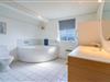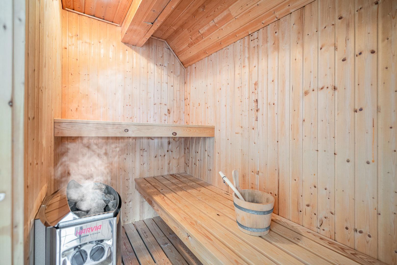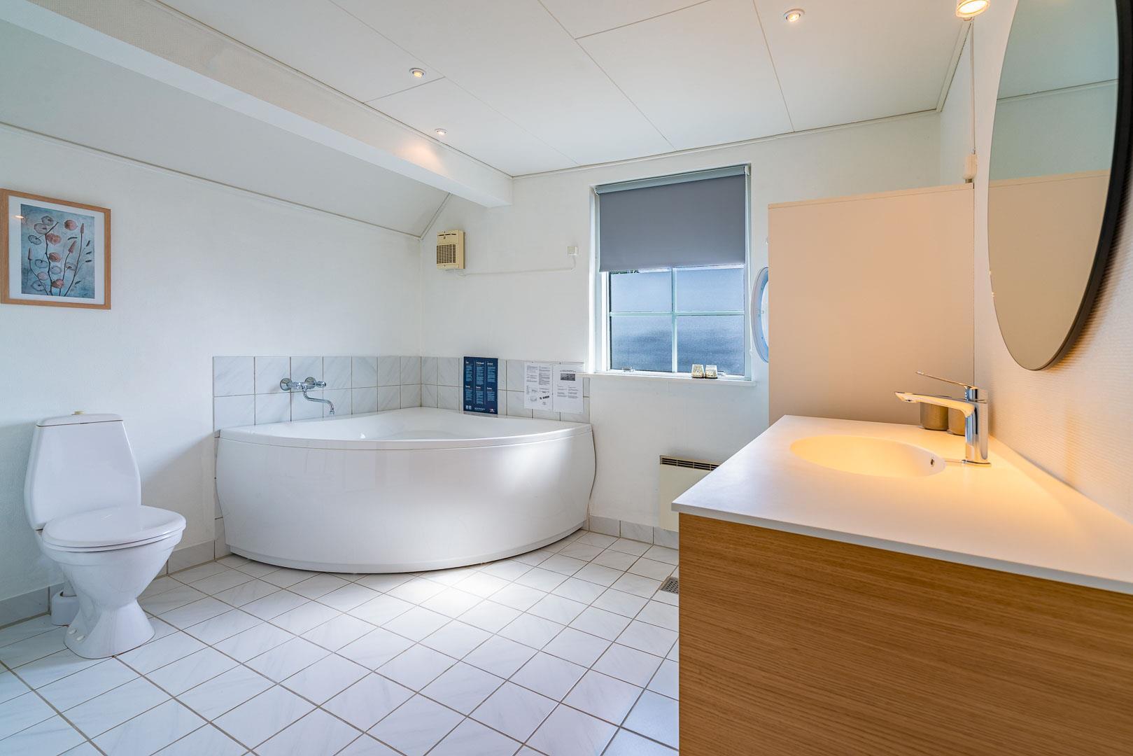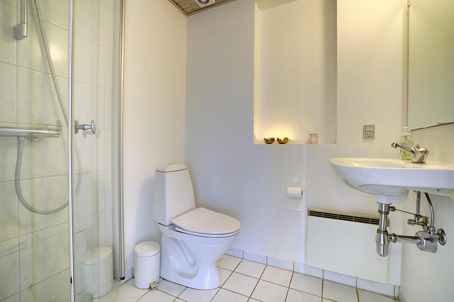 Der er 2 gode og lyse badeværelser et med spabad og sauna og ekstra toilet på 1 sal.
