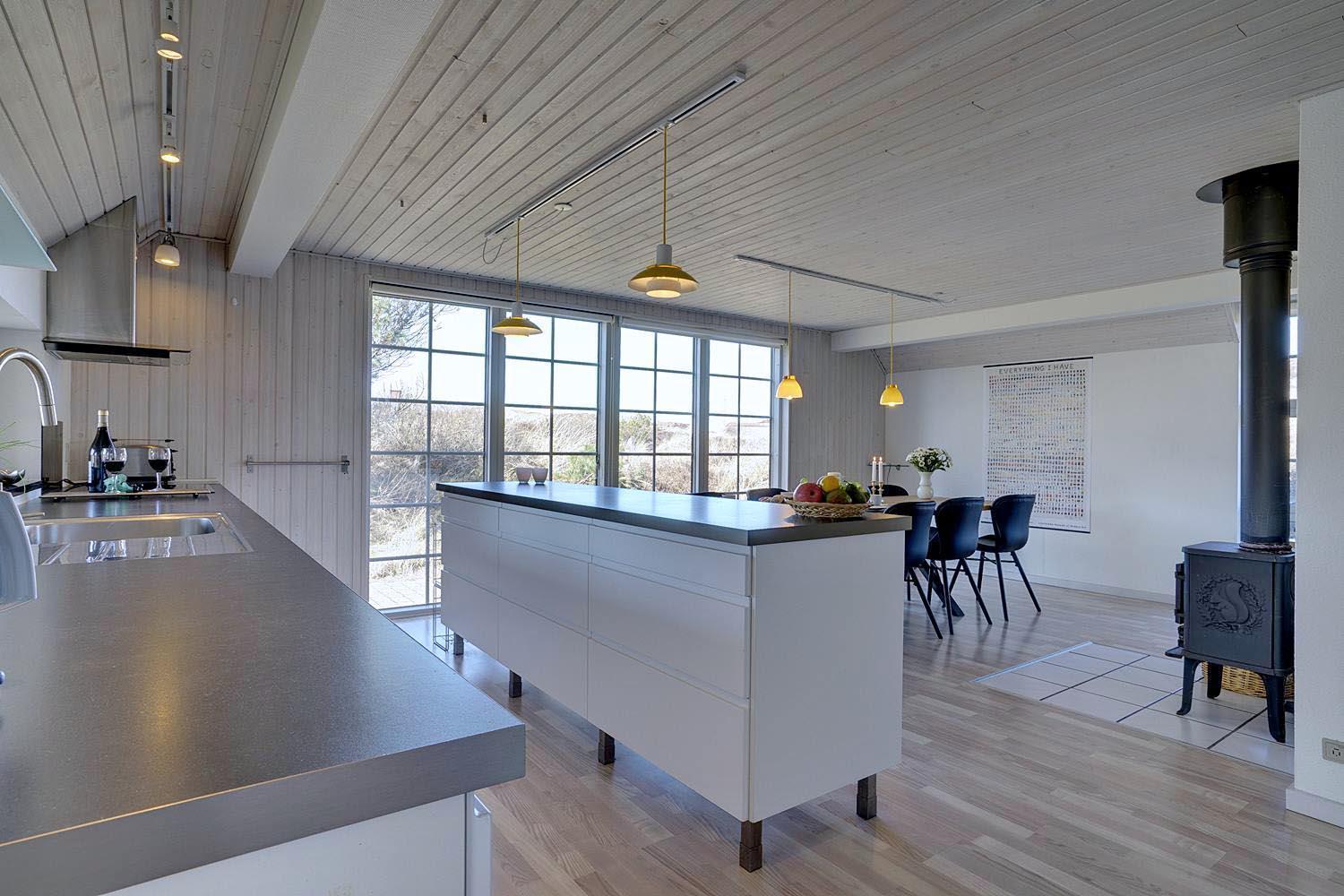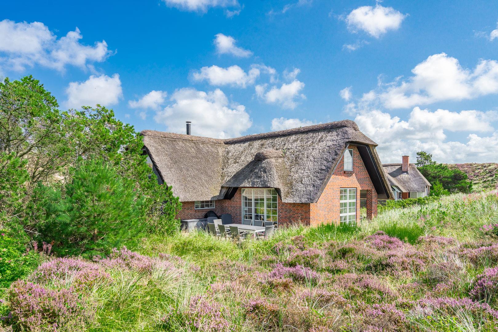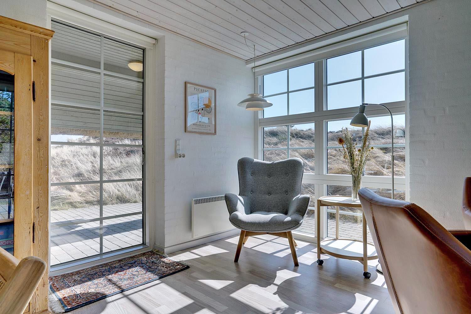 Det dejlige feriehus på 176 m2 er beliggende på en stor ugeneret og kuperet klitgrund i gåafstand til stranden. Huset fremstår overalt lyst om venligt og den store stue er smagfuld indrettet med gode og komfortable møbler. Stort veludstyret køkken/alrum hvor hele familien kan samle sig omkring middagen eller hygge sig med spil foran husets brændeovn.
