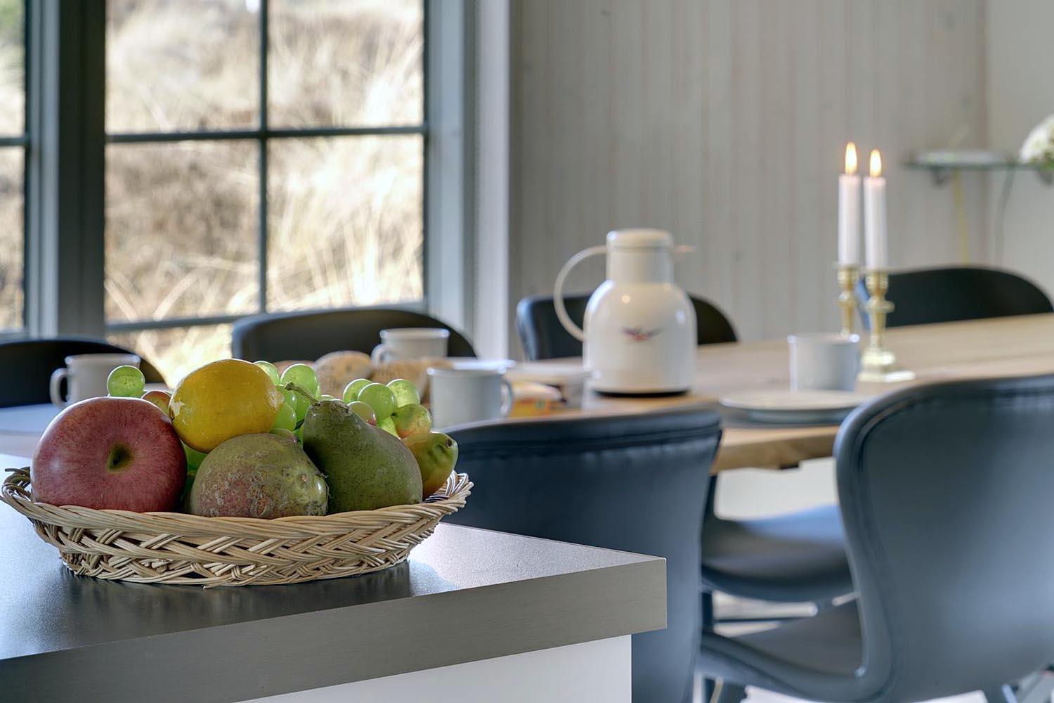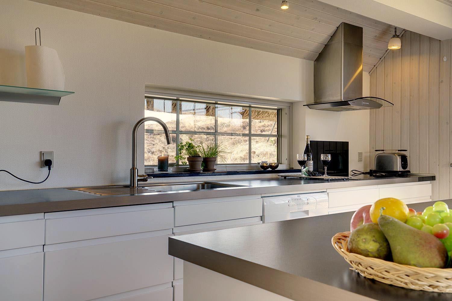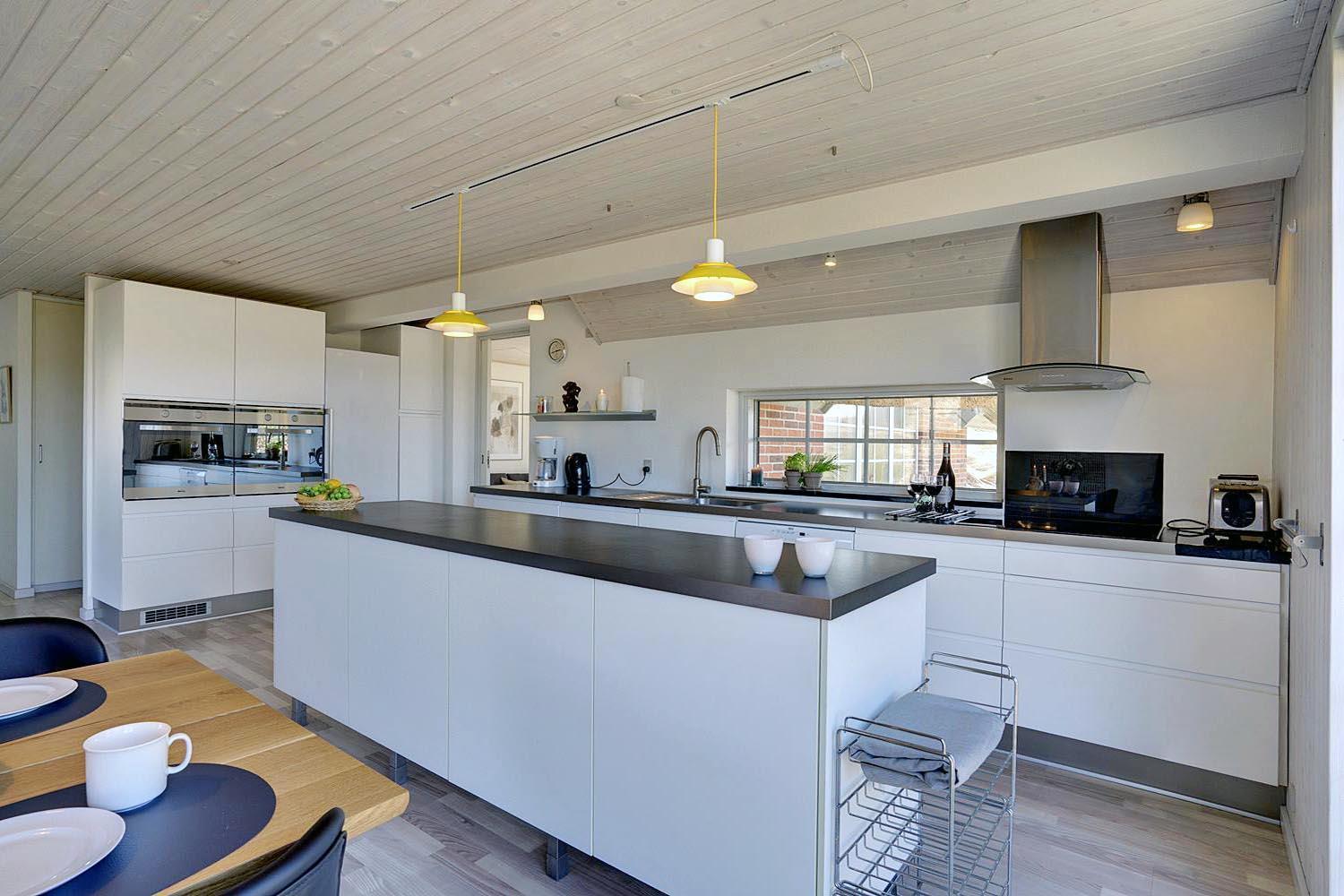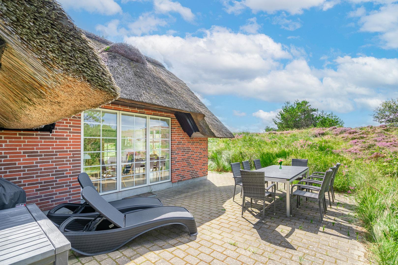 Det dejlige feriehus på 176 m2 er beliggende på en stor ugeneret og kuperet klitgrund i gåafstand til stranden. Huset fremstår overalt lyst om venligt og den store stue er smagfuld indrettet med gode og komfortable møbler. Stort veludstyret køkken/alrum hvor hele familien kan samle sig omkring middagen eller hygge sig med spil foran husets brændeovn.