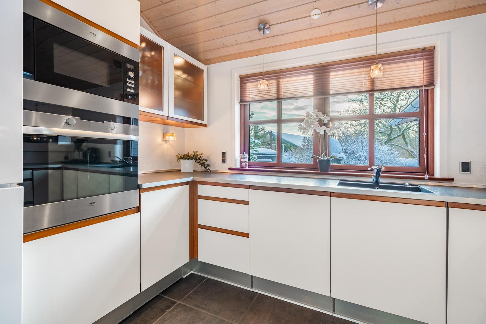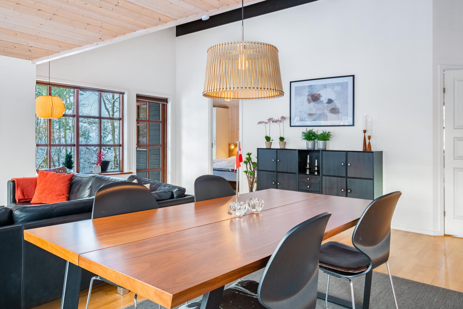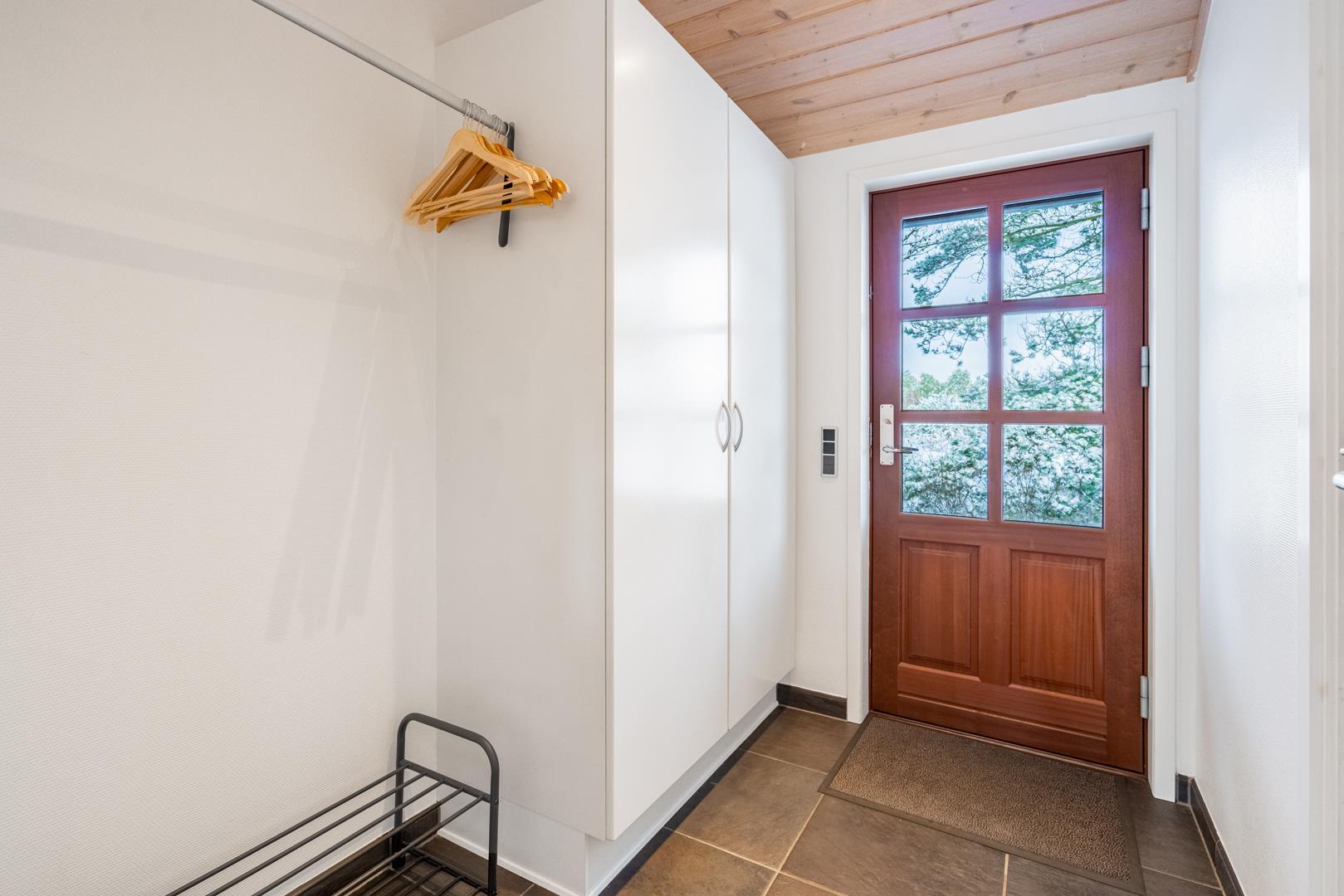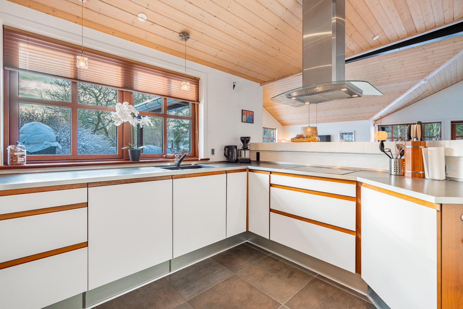 Lækkert feriehus beliggende på ugeneret, flot klitgrund omkranset af træer, buske og for enden af en blind vej. Huset fremtræder lyst og venligt med træloft som går op i kip. Opholdsstue, spiseafdeling og det veludstyrede køkken er i åben forbindelse. Omkring huset er der anlagt stor terrasse, hvorfra solen og freden kan nydes i fulde drag. Alle værelser er med boks- madrasser og det store badeværelse er udstyret med spabad og sauna. Udover badeværelset er der ekstra toilet, bruser. I dette pragtfulde feriehus er de perfekte rammer tilstede for en god ferie.