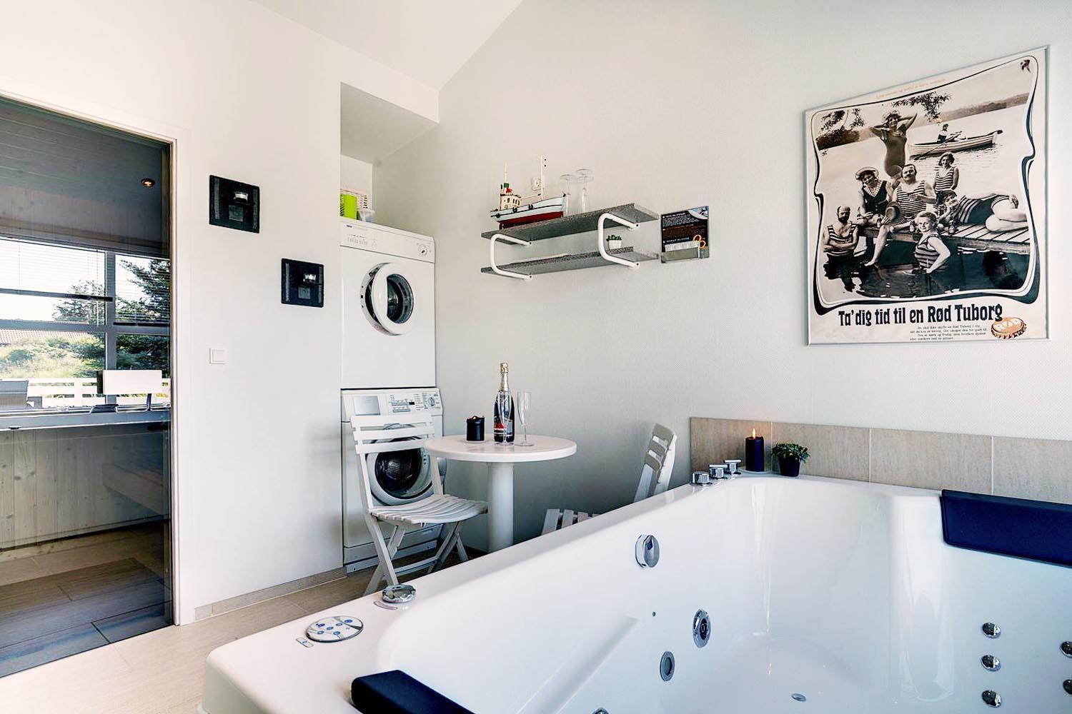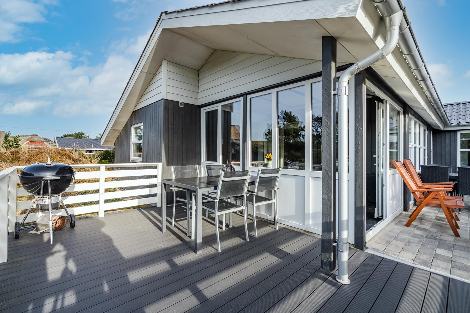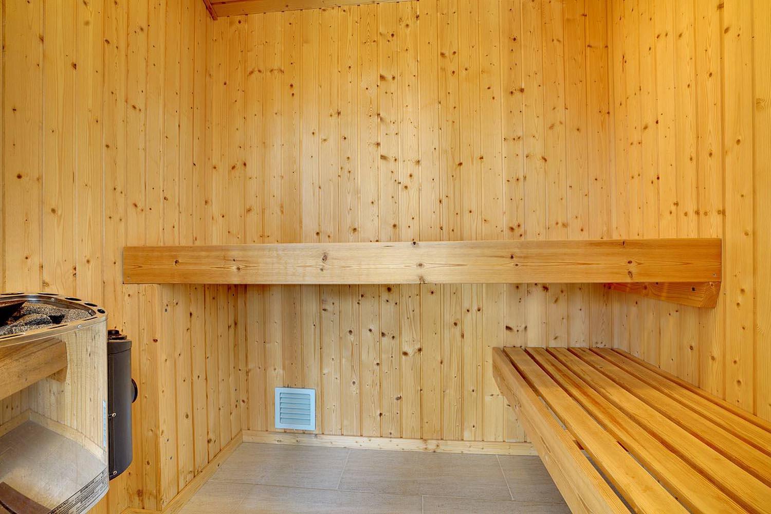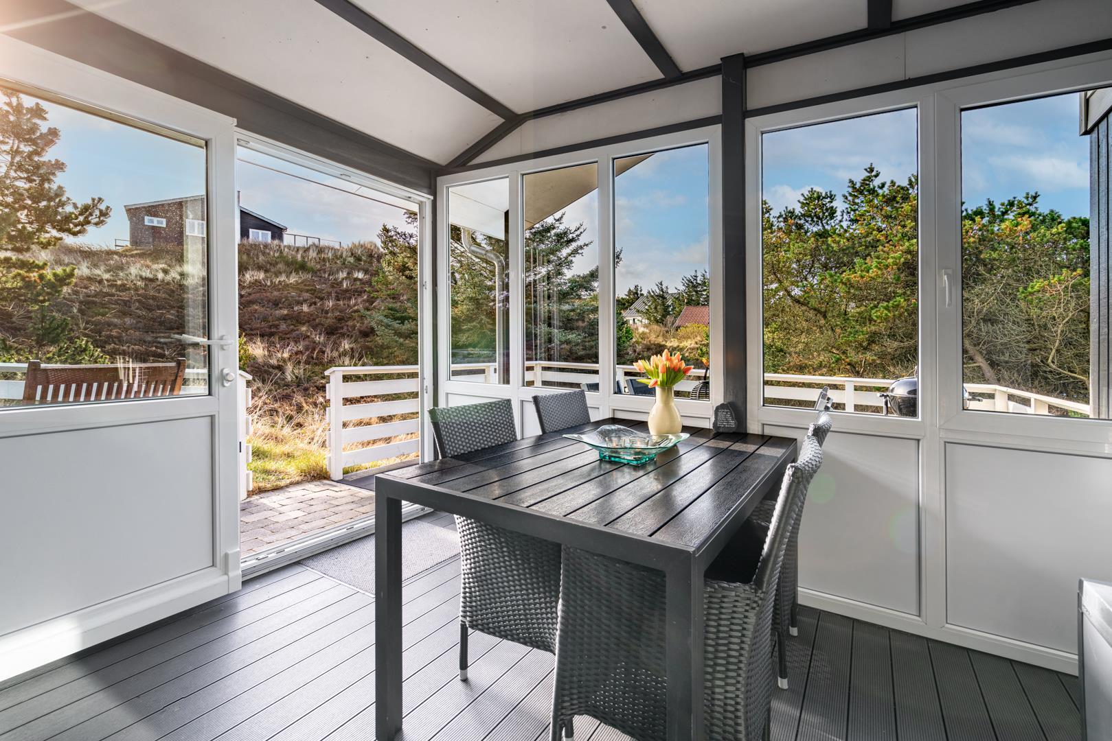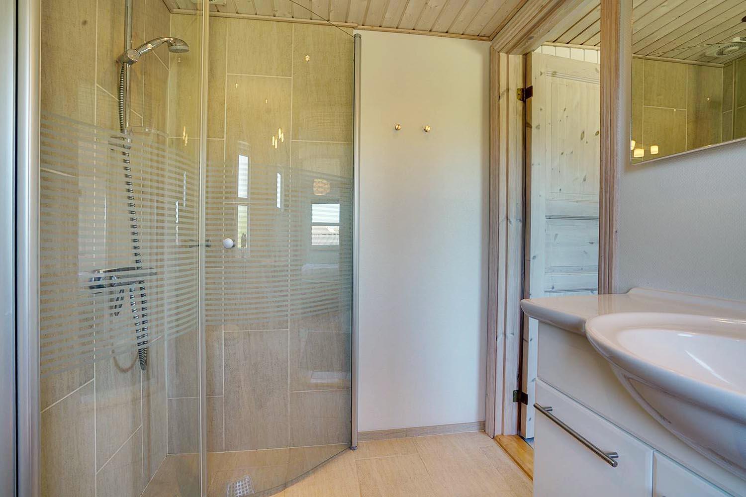 Huset byder på flere skønne terrasser samt en hyggelig udestue, hvor du kan nyde udsigten til naturen uanset vejret. Med to badeværelser med bruser, en separat wellnessafdeling med badekar og sauna, får du de perfekte rammer for afslapning.