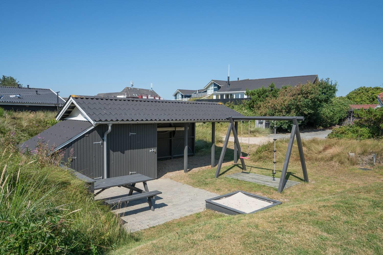 Beliggenheden er ideel – i et roligt område, men stadig i kort gåafstand til den brede sandstrand og den hyggelige by Henne Strand, hvor du finder butikker, caféer og oplevelser for hele familien.