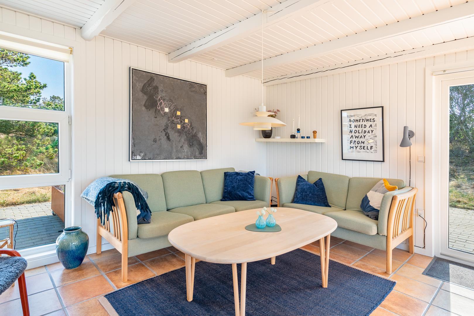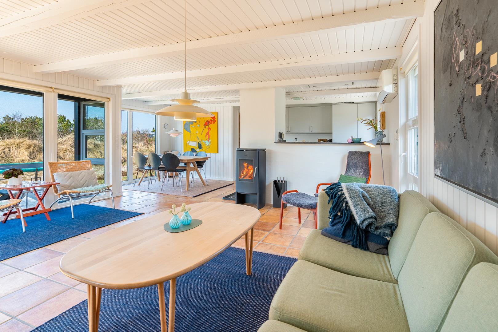 Drømmer I om en ferie i smukke, rolige omgivelser, hvor komfort og kvalitet er i højsædet? Dette skønne feriehus på en kuperet klitgrund ved Henne Strand er den ideelle ramme for jeres næste ferie – uanset årstiden!
