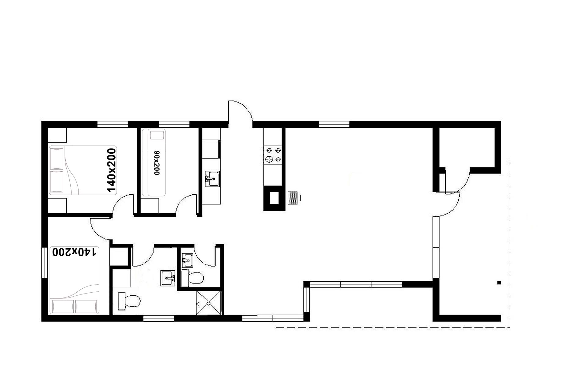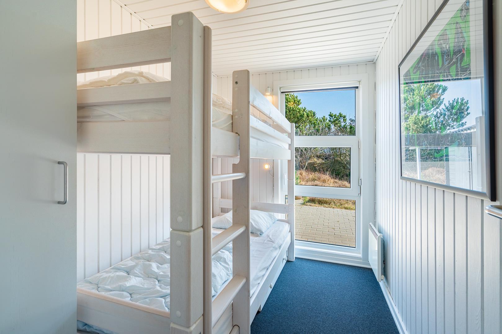 Sengestørrelser: 2 dobbeltsenge 140 x 200 cm + 1 køjeseng 90 x 200 cm.