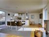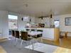 Huset er løbende moderniseret og fremstår lyst, indbydende og komfortabelt. Den store stue har smukke trægulve og en hyggelig brændeovn, der skaber en varm atmosfære på kølige dage. Køkkenet er lækkert og moderne, og den åbne forbindelse til stuen giver en rummelig og social stemning.