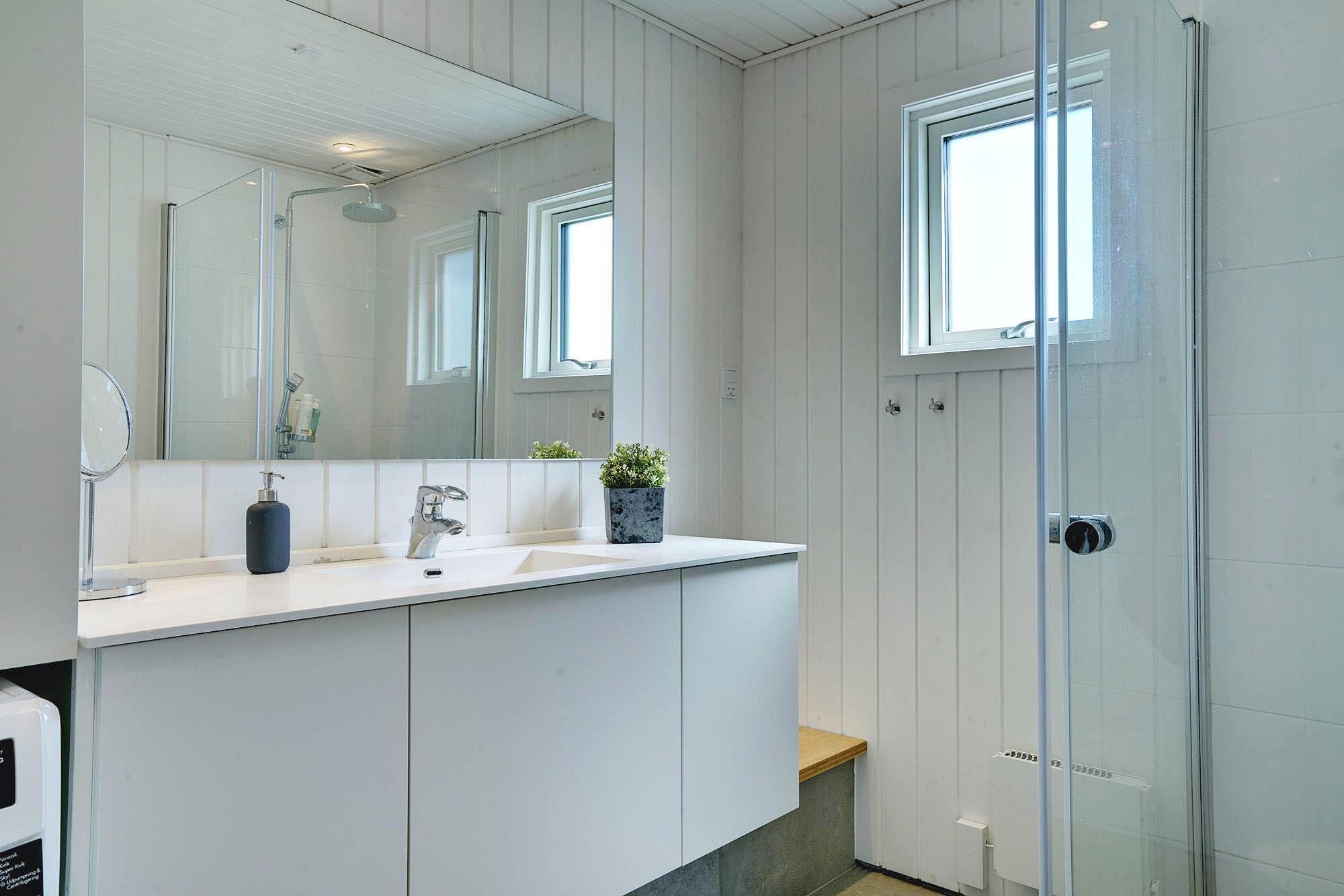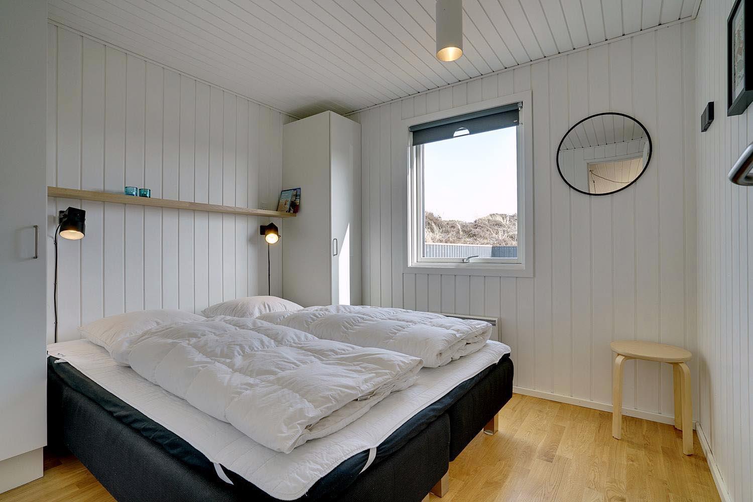 Feriehuset har tre gode soveværelser – alle med dobbeltsenge, hvilket gør det ideelt til både familier og par. Badeværelset er nyrenoveret og stilfuldt, så du kan nyde et afslappende ophold med moderne faciliteter.