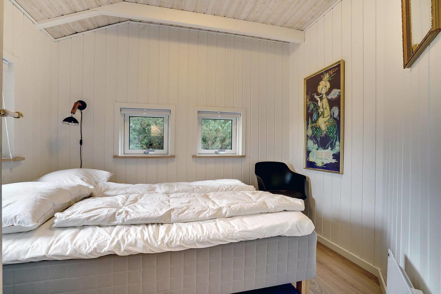 Sommerhuset rummer tre gode soveværelser med kvalitetssenge (2 x 160 x 200 cm og 1 x 140 x 200 cm), som sikrer en god nats søvn for alle.