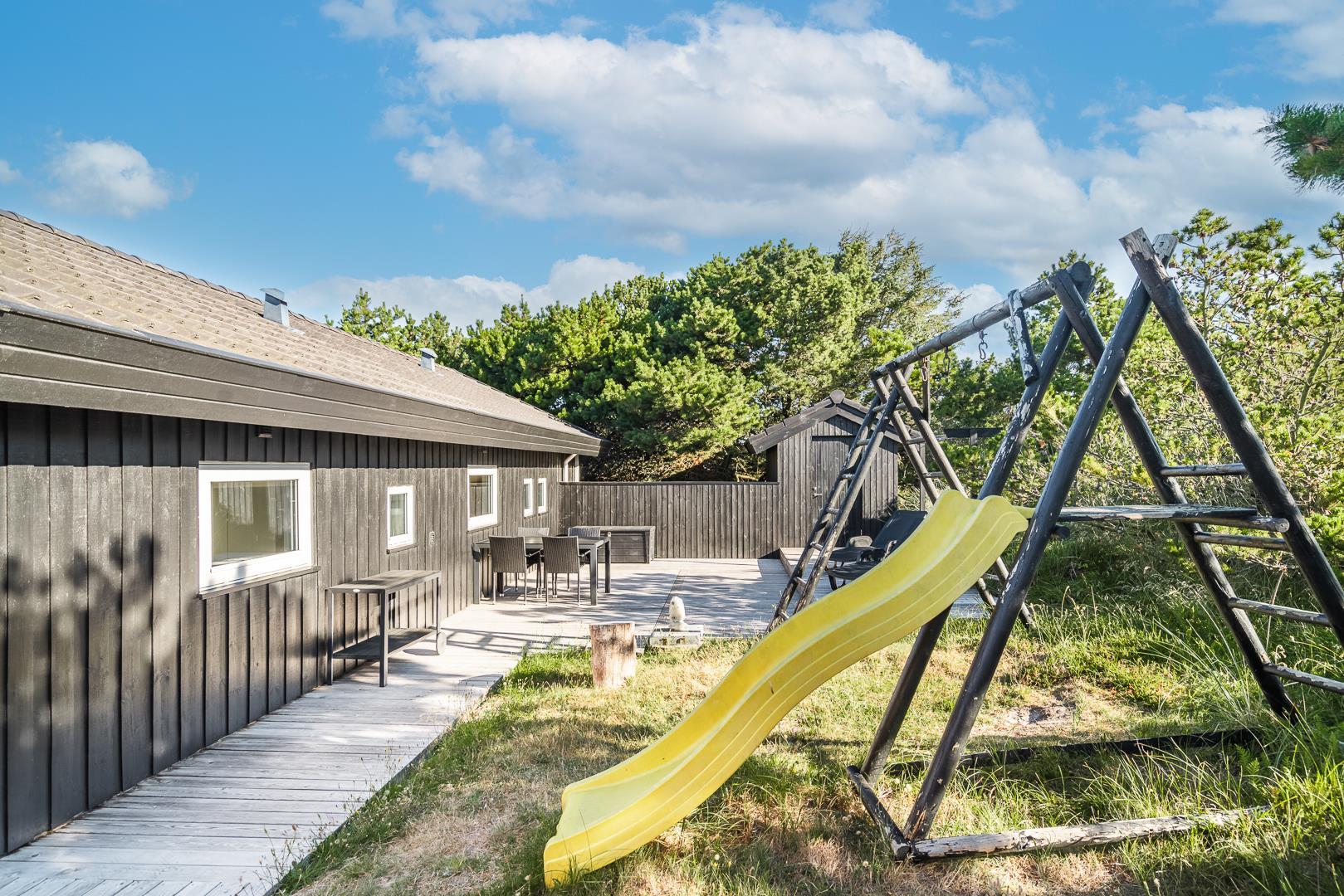 Huset ligger tilbagetrukket på en ugeneret og børnevenlig naturgrund, hvor I kan nyde ferien i fredelige og naturskønne omgivelser.