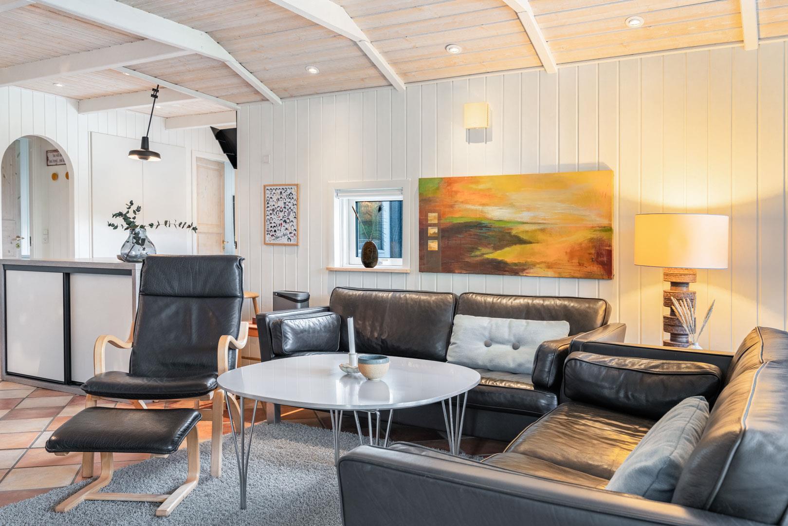 Indretningen er gennemtænkt og stilfuld, og der er god plads til både fællesskab og ro.