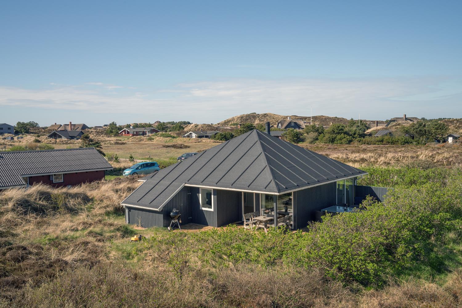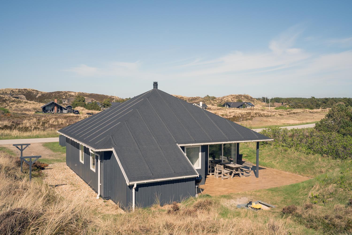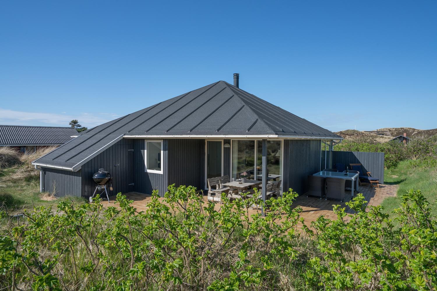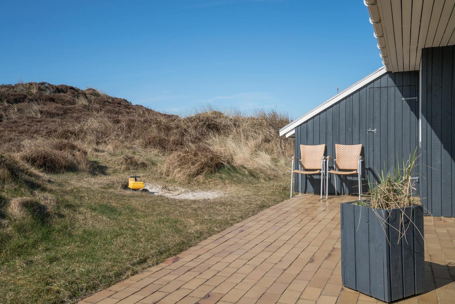 Udendørs venter en stor og meget ugeneret terrasse, hvor du kan nyde solen, grille og bare koble helt af i den friske vestjyske luft.