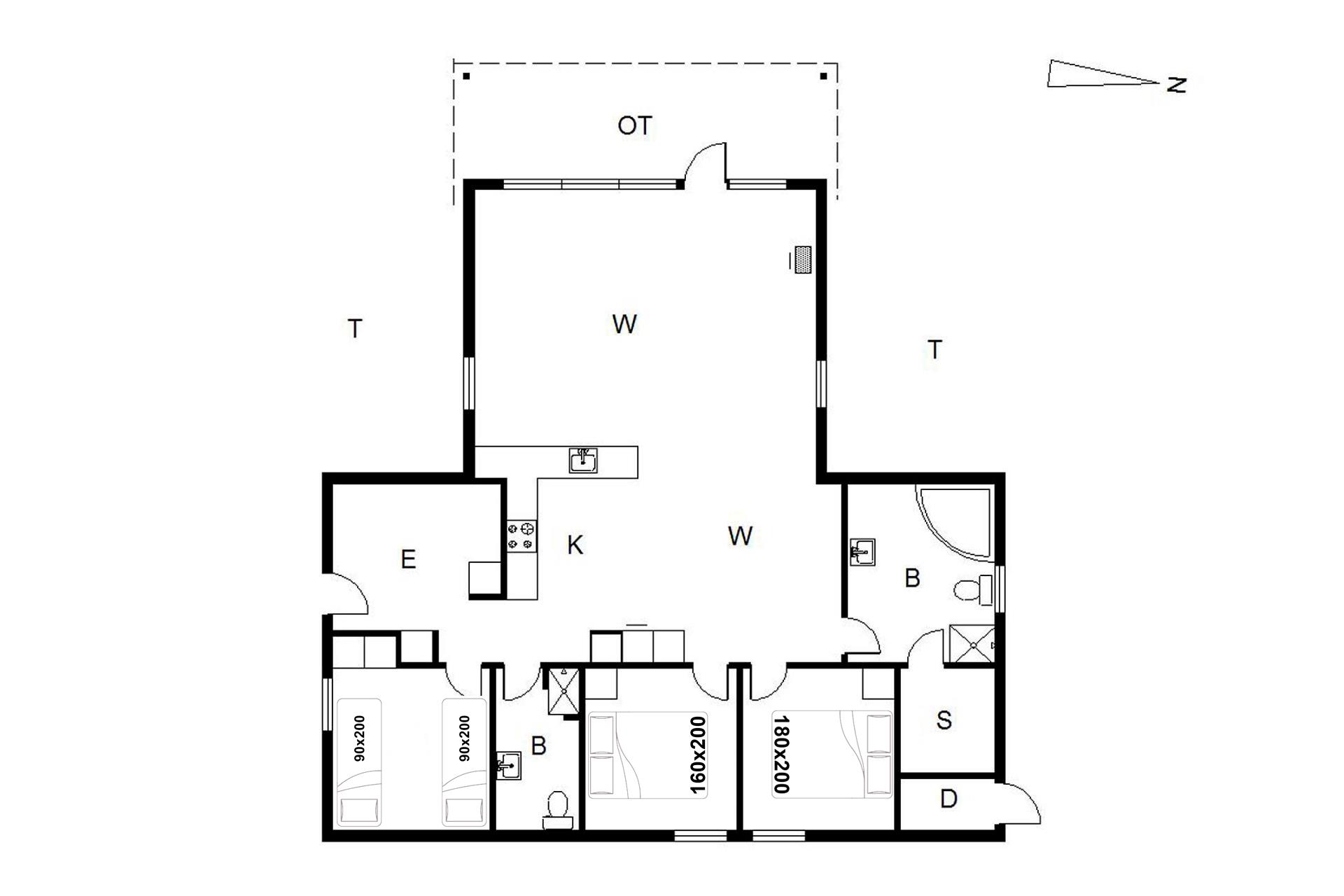 Sengestørrelser: 1 Dobbeltseng: 180x200 cm, 1 Dobbeltseng: 160x200 cm, 2 Enkeltsenge: 90x200 cm.