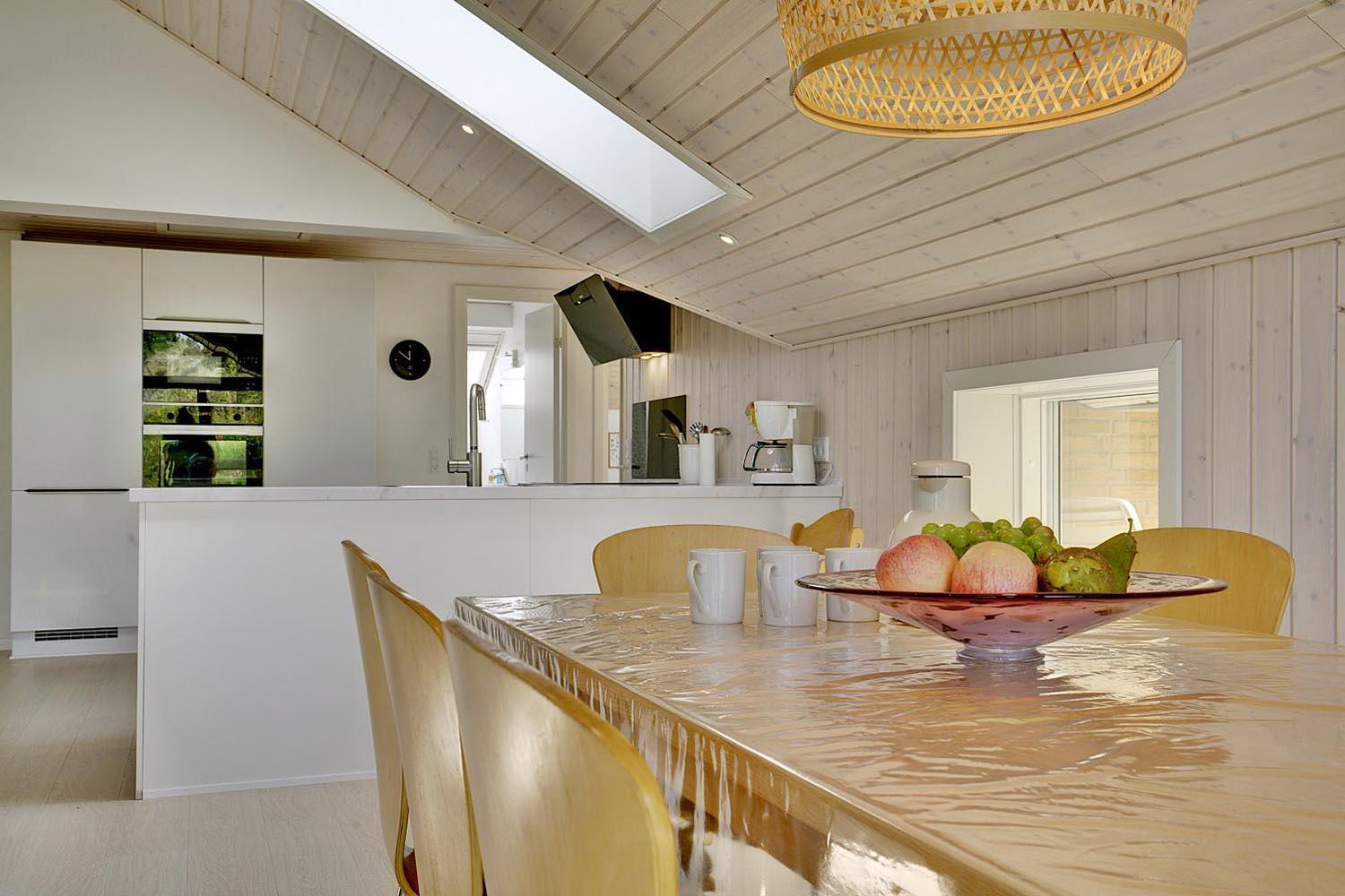Sommerhuset på Ligustervej 6 har en lys og hyggelig atmosfære med lyse vægge og stort vinduesparti. Huset har gennemgået en gennemgribende renovering i 2021 med et nyt badeværelse, nyt køkken alrum og stor entre med god plads til sko og tøj. Køkkenet er i åben forbindelse med den stuen, så hele familien kan være samlet når maden tilberedes. Der er ekstra badeværelse med spa og sauna.