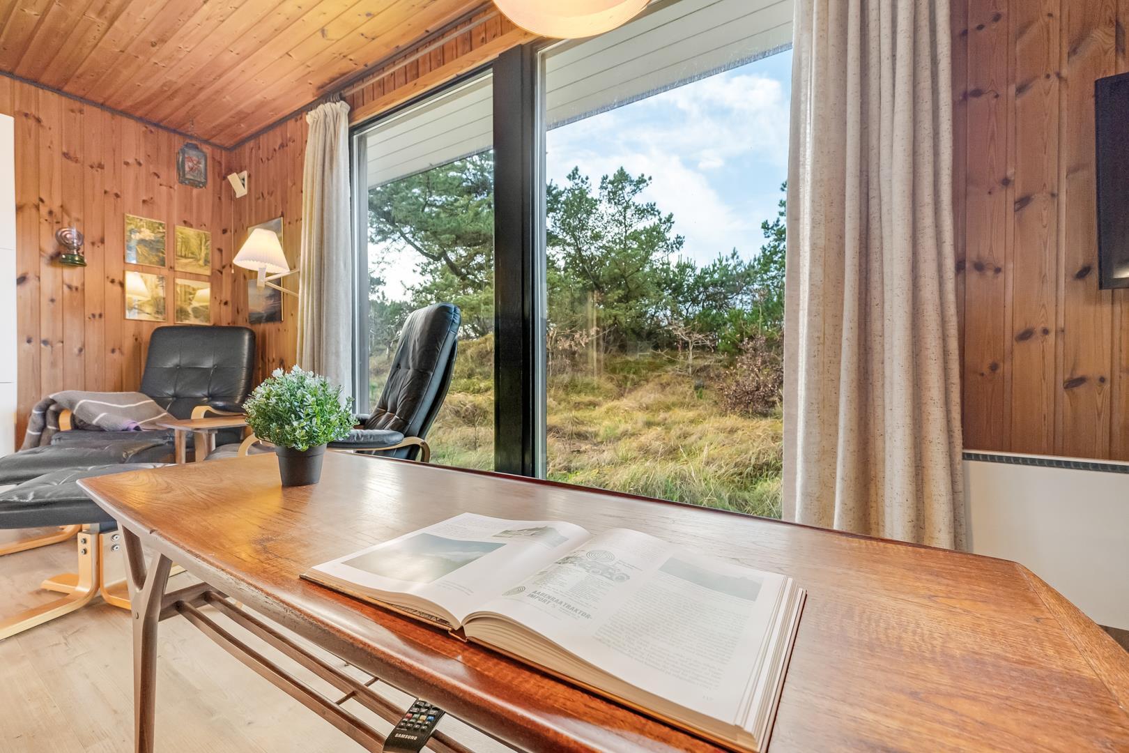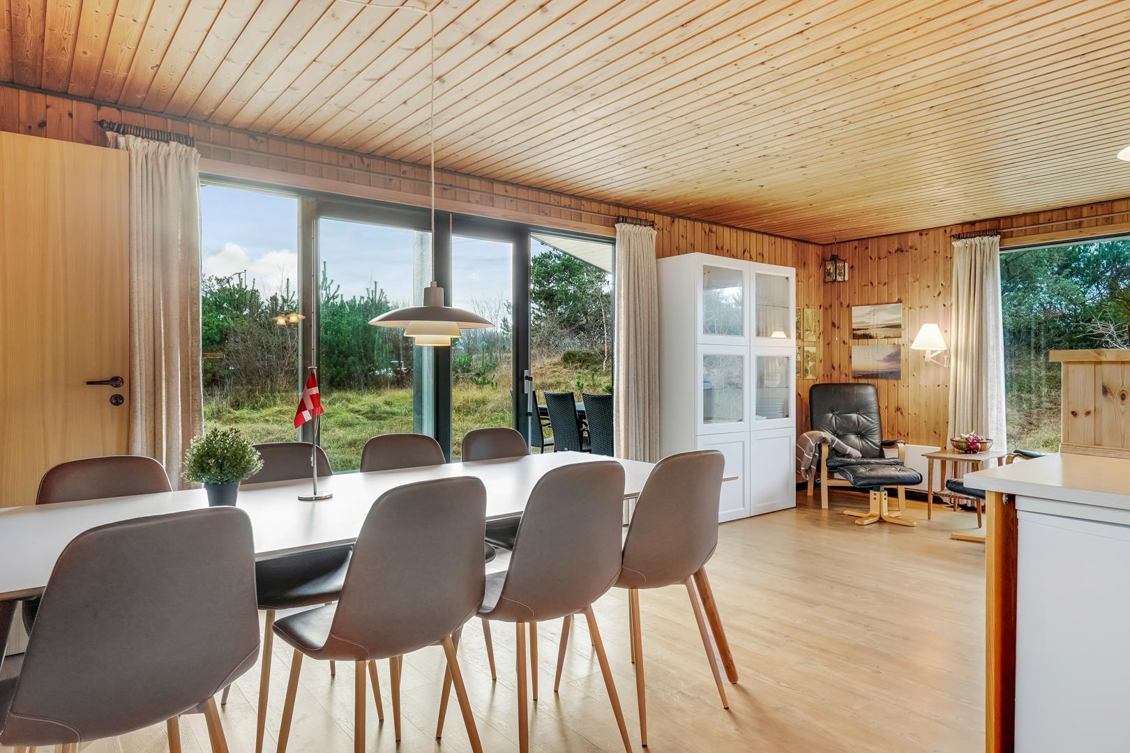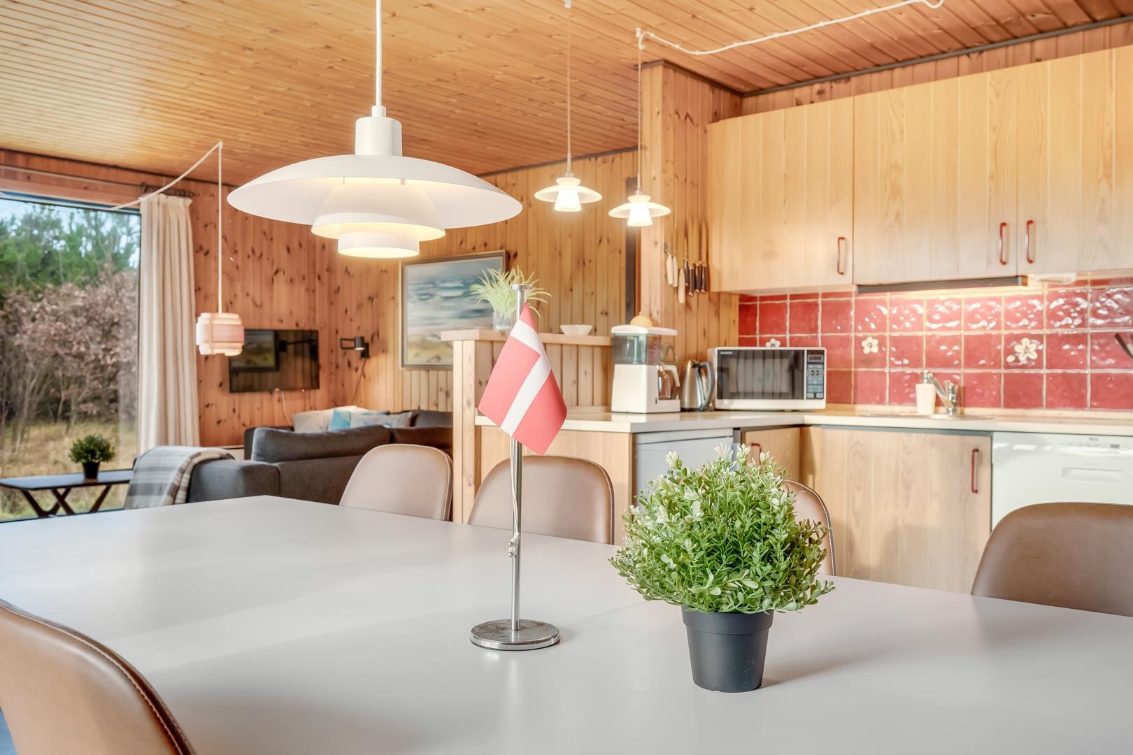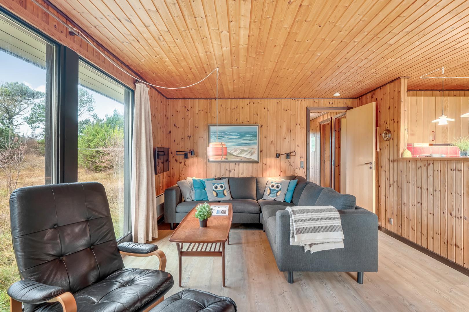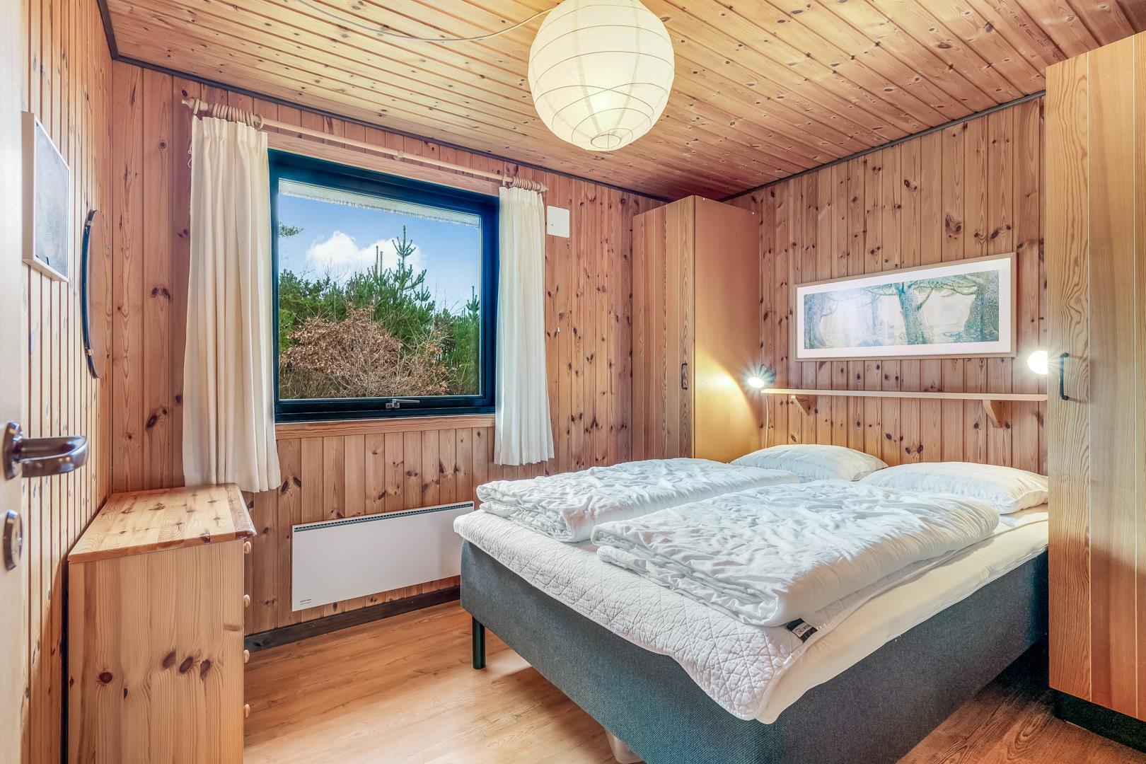 Hyggeligt og velholdt træhus på ugeneret, kuperet hedegrund. Omgivet af fyrretræer. Små hyggekroge med bord og bænk. Ideelt til børn med gemmesteder og plads til boldspil foran huset. Køkken og stue i et med udgang til overdækket syd- og vestvendt terrasse. Fra køkken udgang til østvendt terrasse, med mulighed for solskin hele formiddagen.