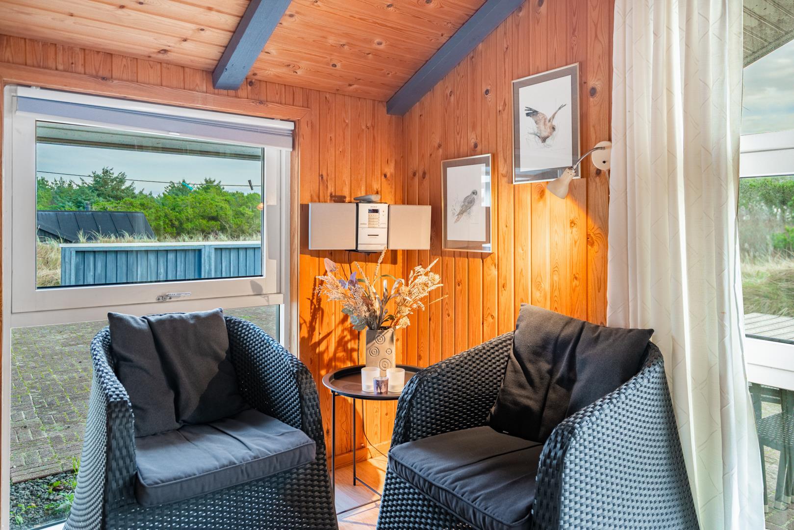 Charmerende feriehus ved Henne Strand med spa, sauna og stor terrasse med udsigt over klitterne.