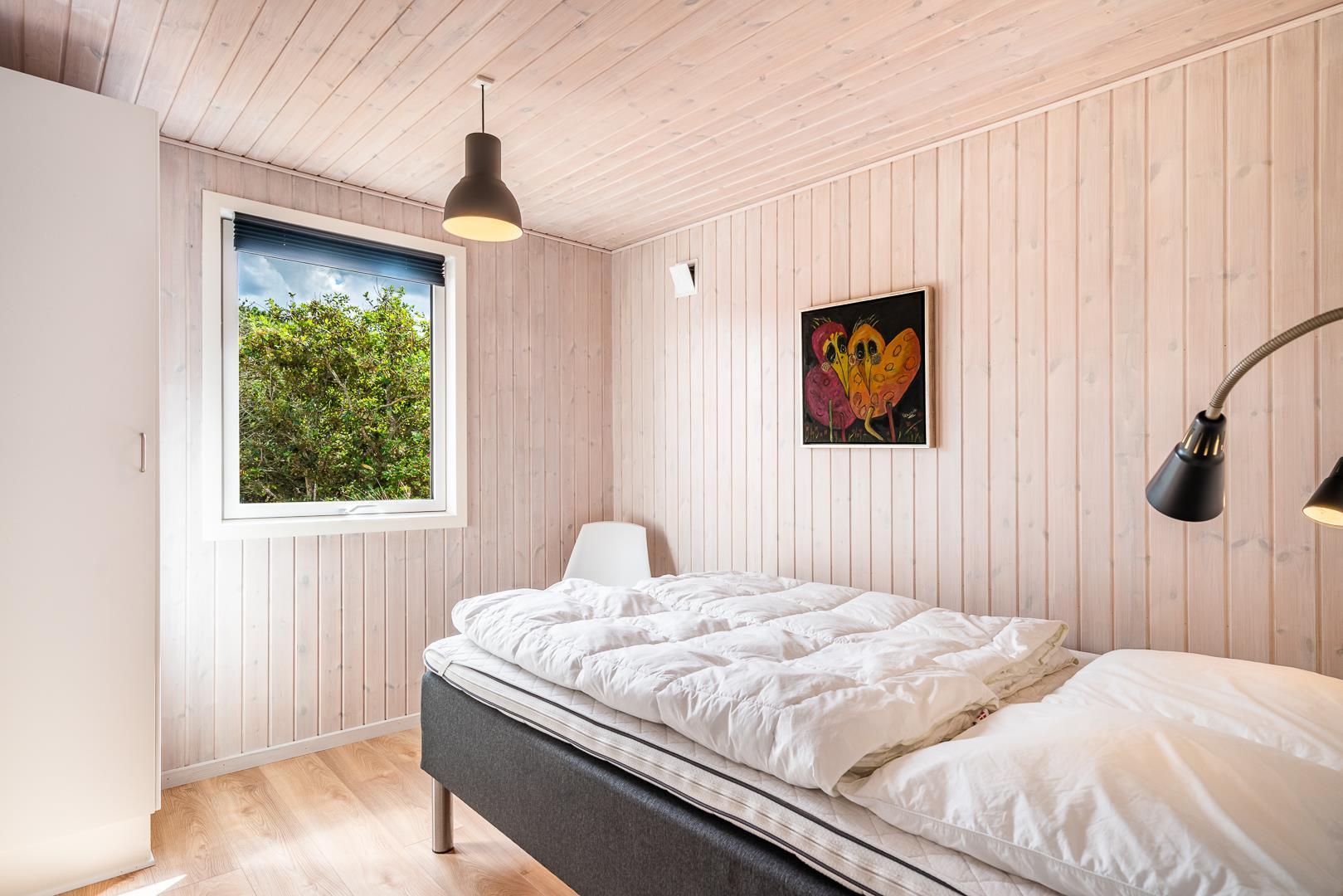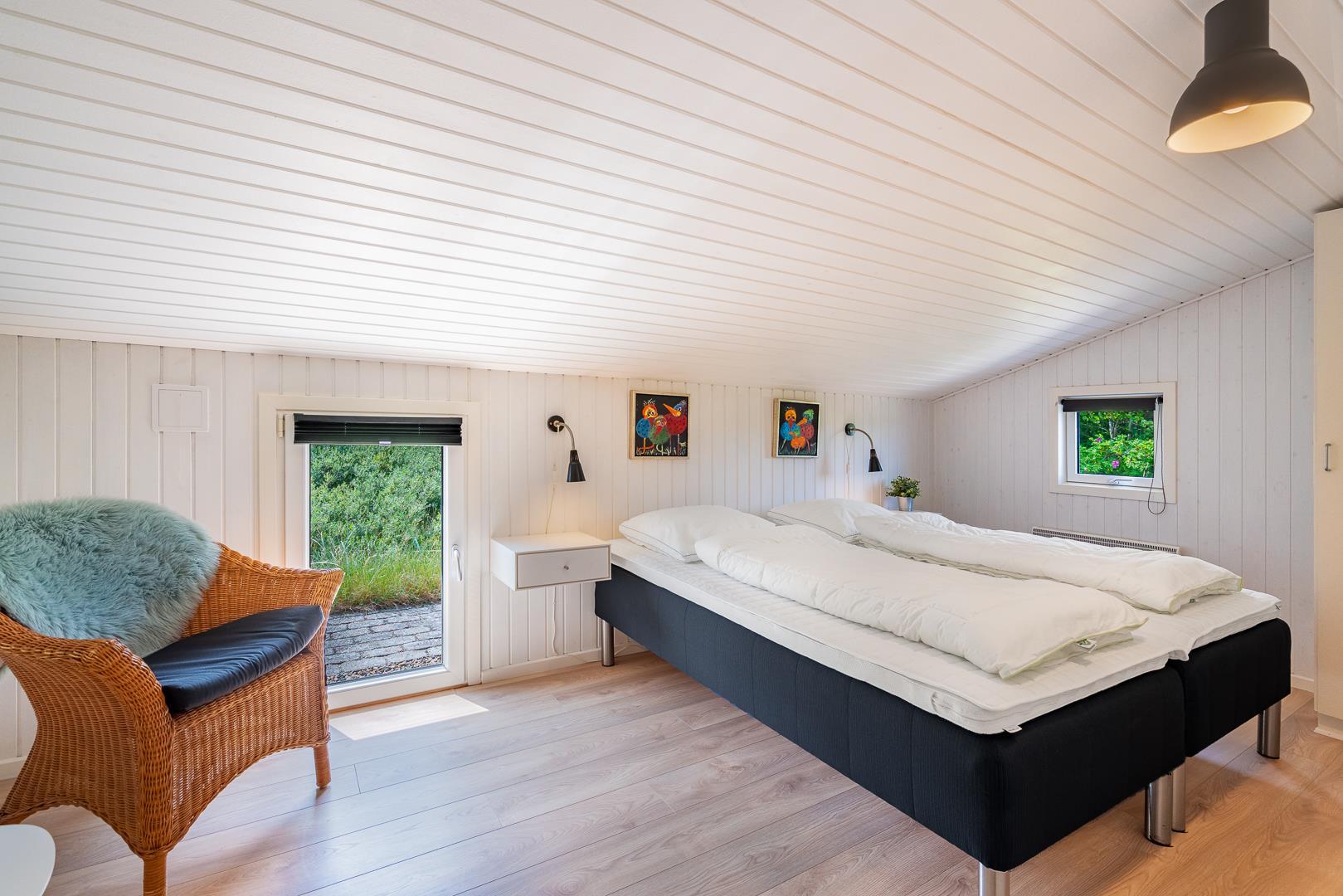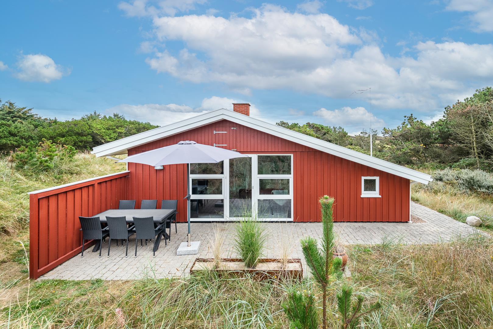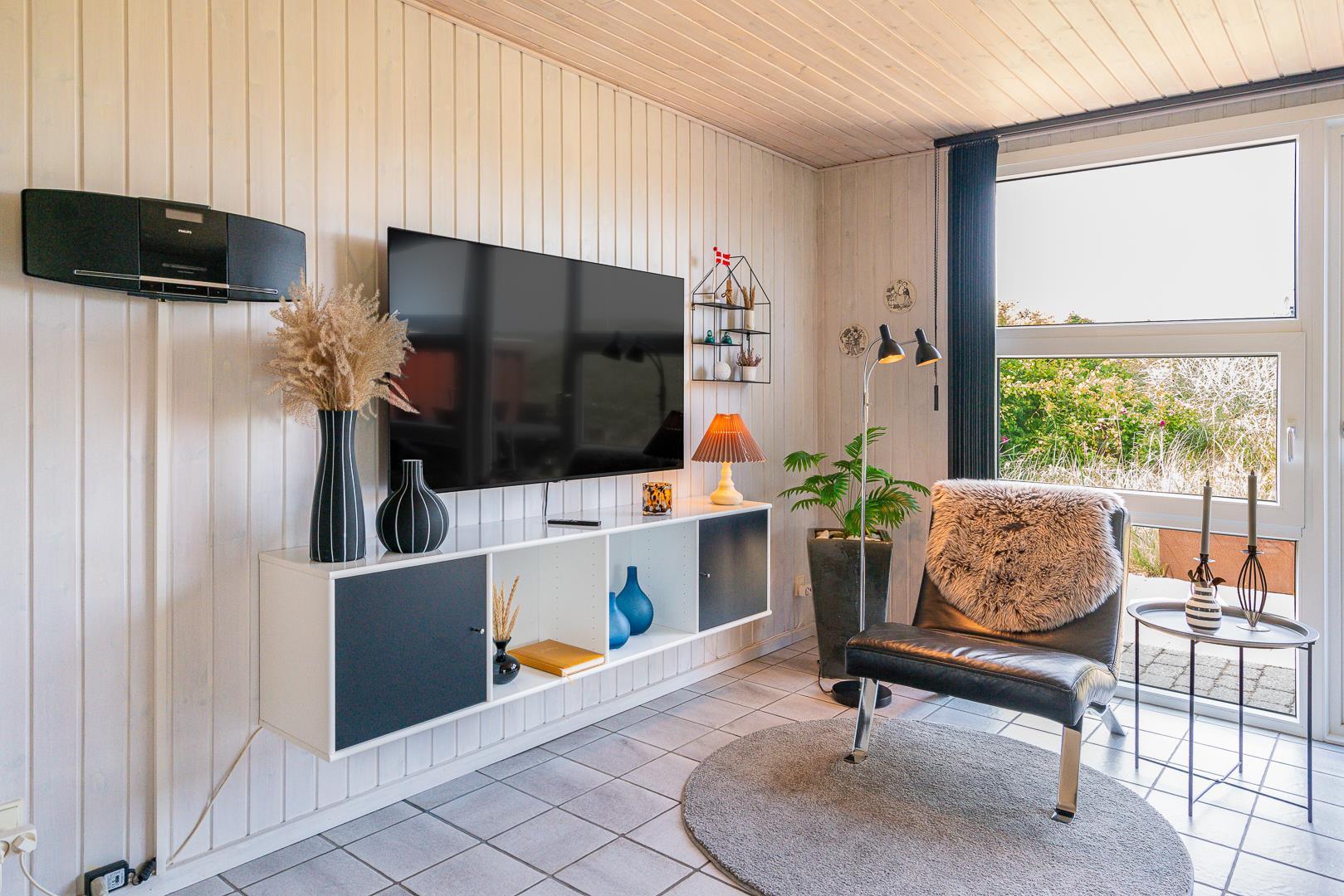 Yderligere faciliteter inkluderer en fin entré med vaskemaskine og en dejlig udestue, hvor du har rig mulighed for at nyde udsigten til den omkringliggende natur med en god kop kaffe. I udestuen er der også god plads til at konkurrere i familiespil eller fordybe sig i en god bog i rolige omgivelser. Men en terrasse der inviterer til afslapning under åben himmel tæt på naturen, skaber dette sommerhus den perfekte ramme for en mindeværdig ferie året rundt ved Henne Strand.Parkering med autocamper på grunden ikke tilladt.