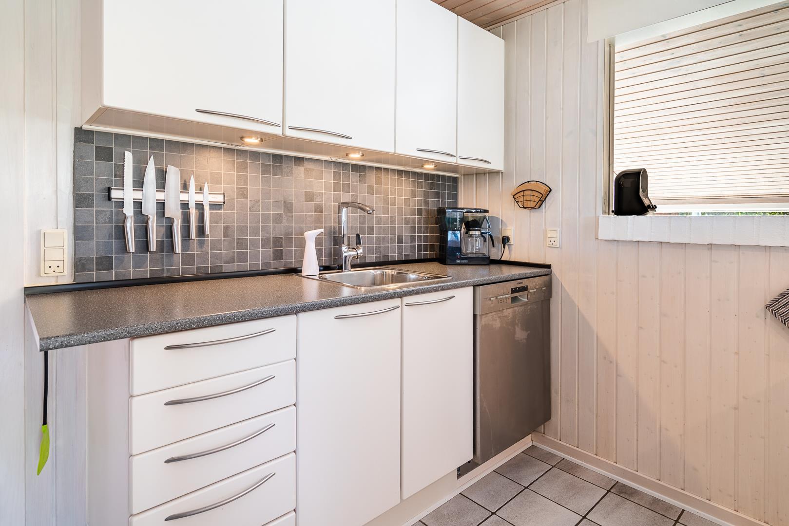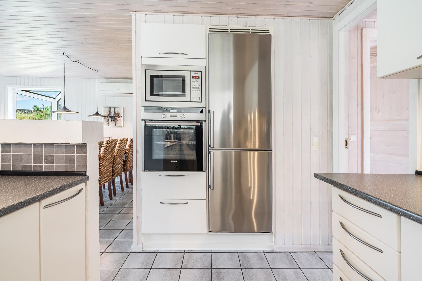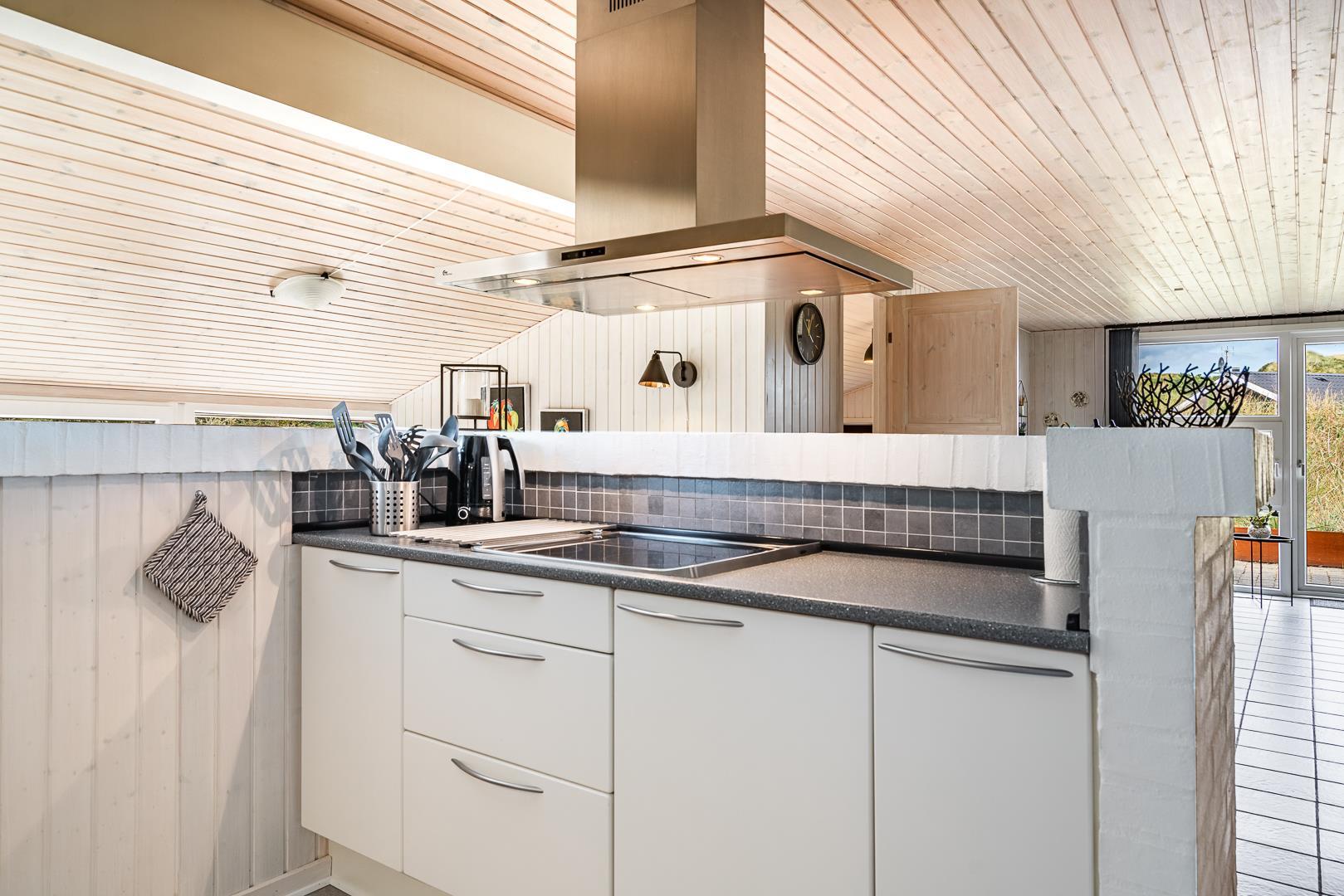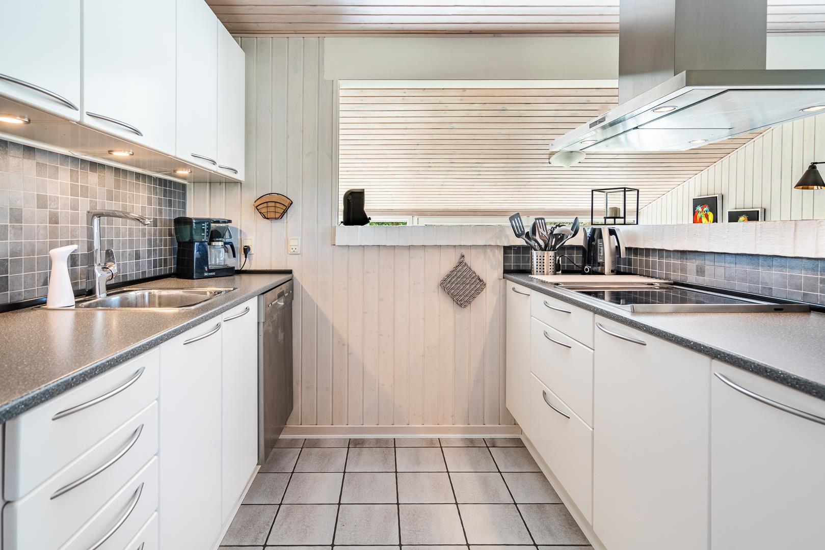 Yderligere faciliteter inkluderer en fin entré med vaskemaskine og en dejlig udestue, hvor du har rig mulighed for at nyde udsigten til den omkringliggende natur med en god kop kaffe. I udestuen er der også god plads til at konkurrere i familiespil eller fordybe sig i en god bog i rolige omgivelser. Men en terrasse der inviterer til afslapning under åben himmel tæt på naturen, skaber dette sommerhus den perfekte ramme for en mindeværdig ferie året rundt ved Henne Strand.Parkering med autocamper på grunden ikke tilladt.