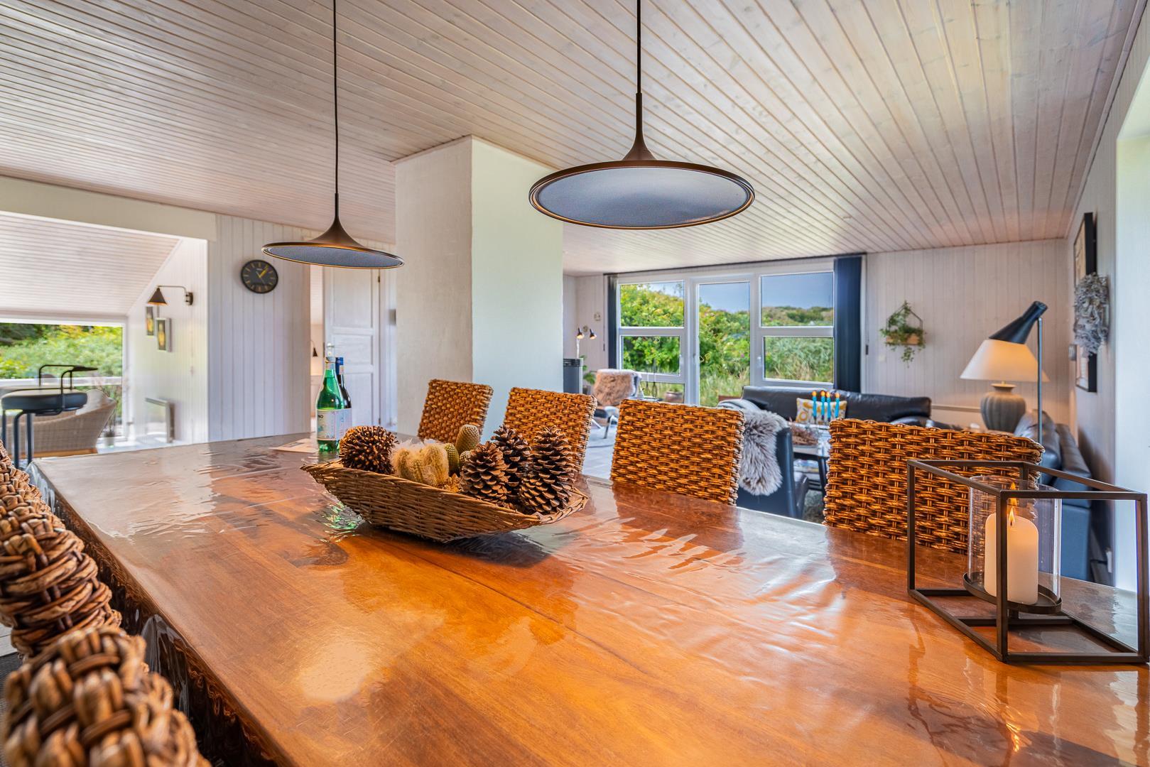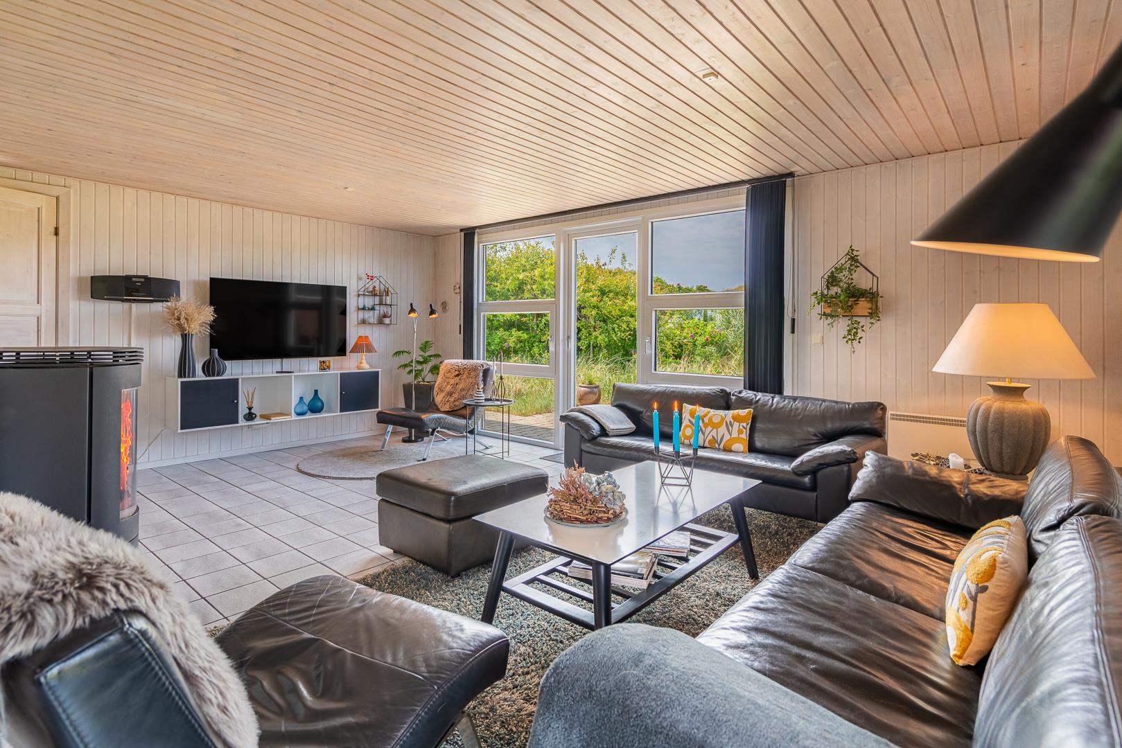 Sommerhuset ligger rigtig dejligt, omgivet af en smuk og privat naturgrund, kun få hundrede meter fra Vesterhavet og grænser op til et fredet område. Her er virkelig skønt! I feriehuset er her plads til 6 personer med 3 veludstyrede soveværelser og et lækkert, moderniseret badeværelse, der inviterer til afslapning med spa og direkte adgang til saunaen.