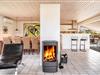 Det åbne køkken/alrum er godt integreret med den hyggelige stue, hvor brændeovnen tilføjer en dejlig atmosfære midt i rummet, samt smart TV 55 tommer.