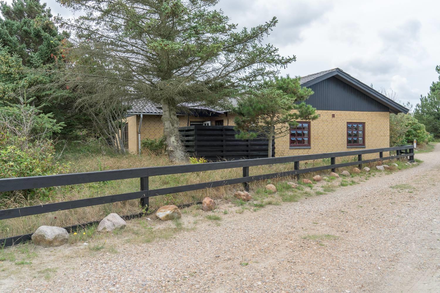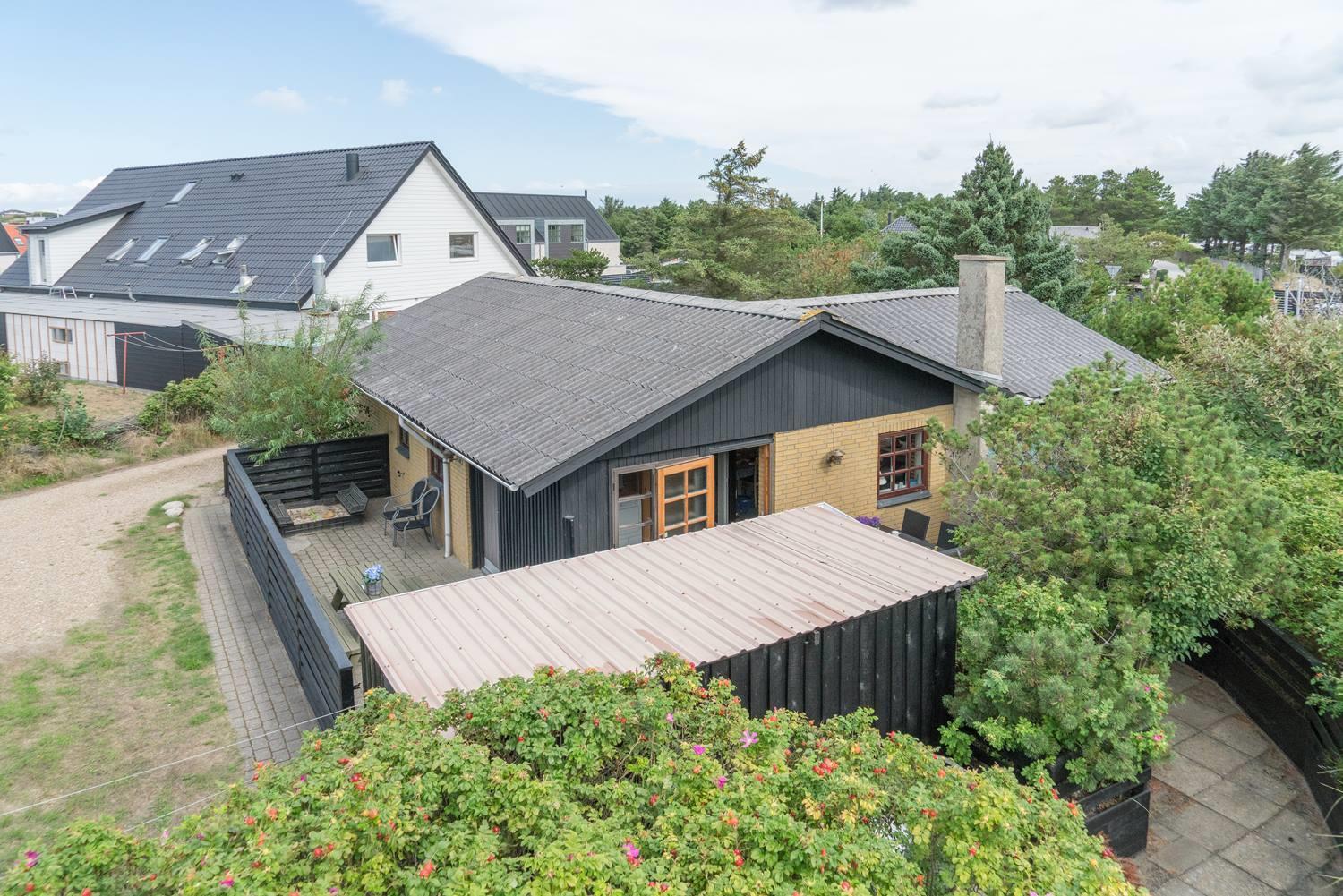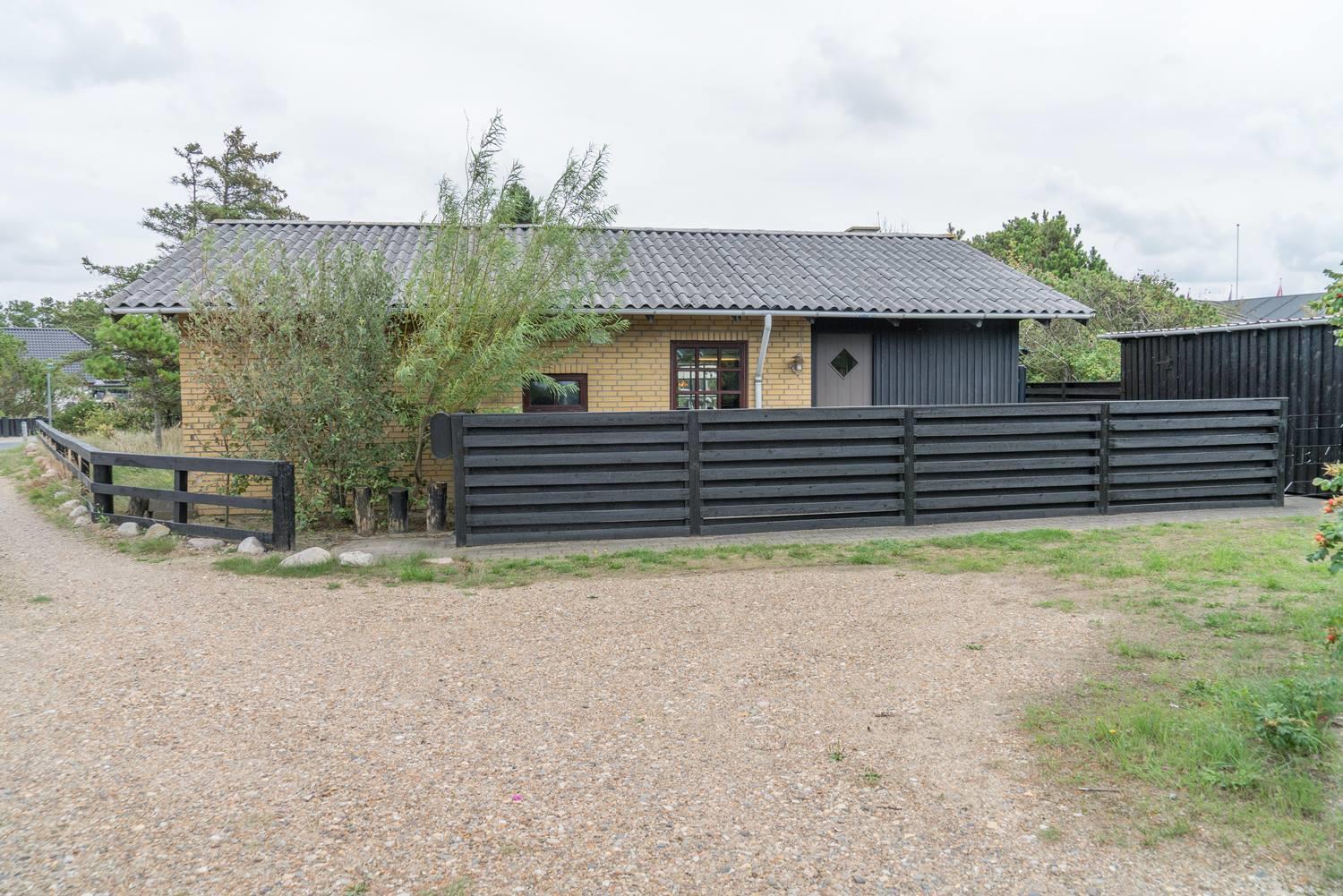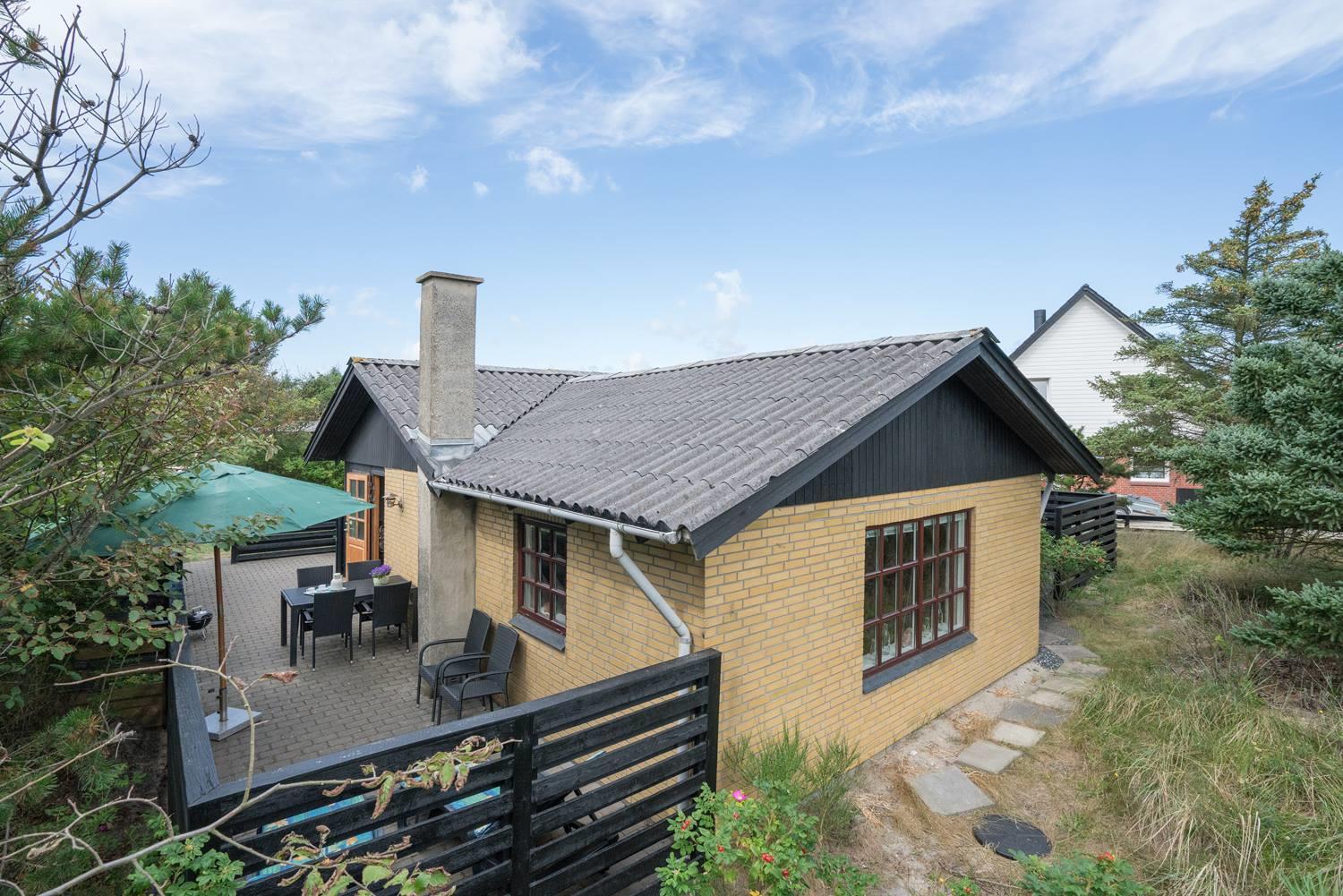 Privat og velholdt feriehus med dejlig lukket terrasse beliggende få minutters gang fra byen samt Vesterhavet. Feriehuset har godt køkken som ligger i åben forbindelse med den hyggelige stue, som er indrettet med pæne og gode møbler samt brændeovn. Der er på grunden hyggelig lille 'gryde' med gynge. Feriehuset har en dejlig ugenert terrasse.