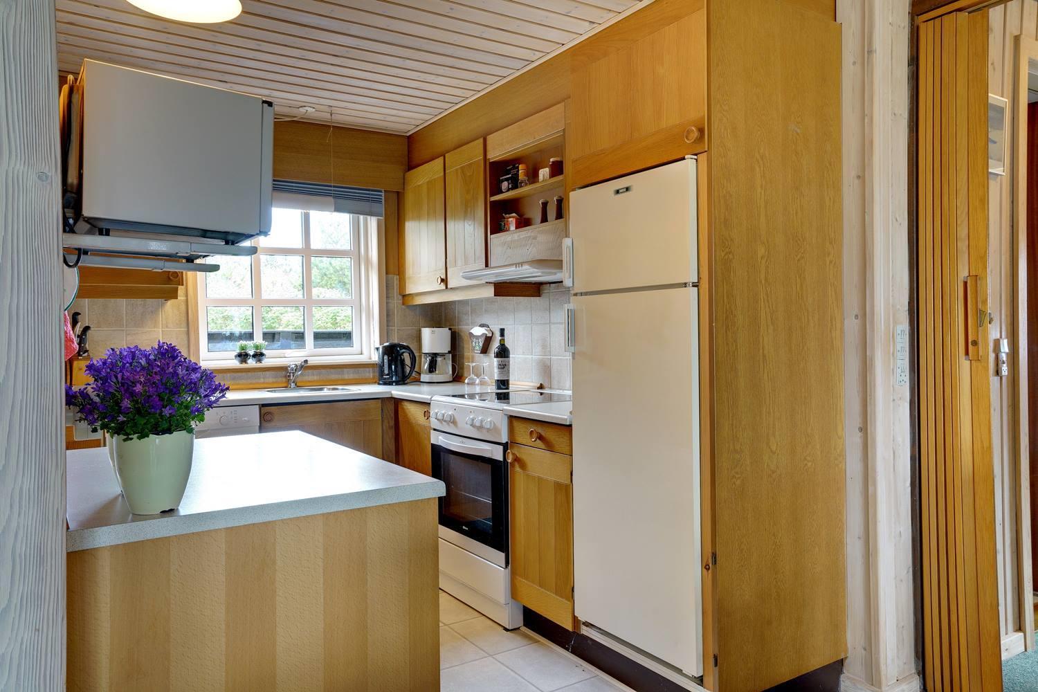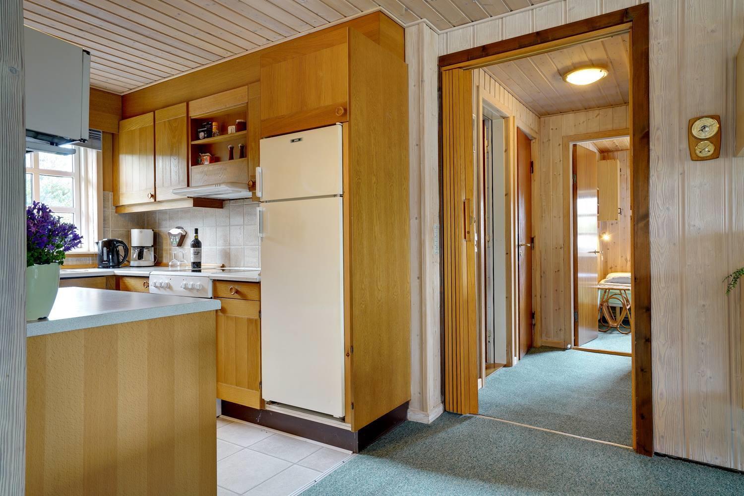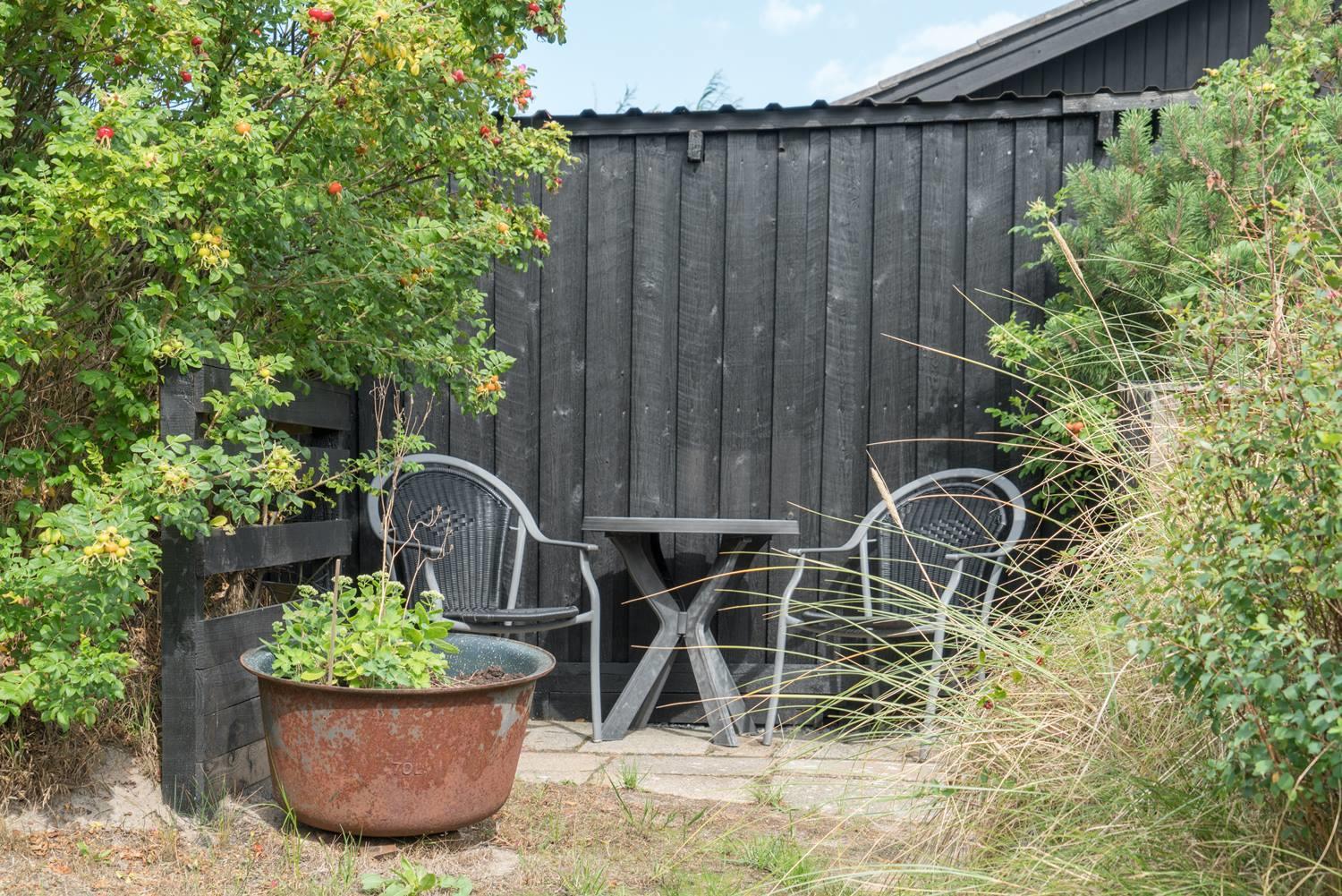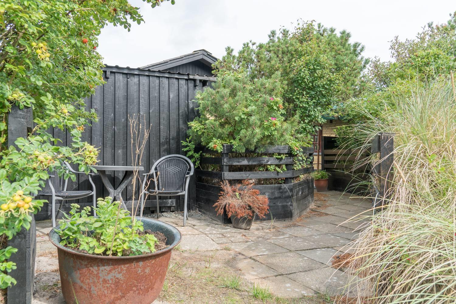 Privat og velholdt feriehus med dejlig lukket terrasse beliggende få minutters gang fra byen samt Vesterhavet. Feriehuset har godt køkken som ligger i åben forbindelse med den hyggelige stue, som er indrettet med pæne og gode møbler samt brændeovn. Der er på grunden hyggelig lille 'gryde' med gynge. Feriehuset har en dejlig ugenert terrasse.