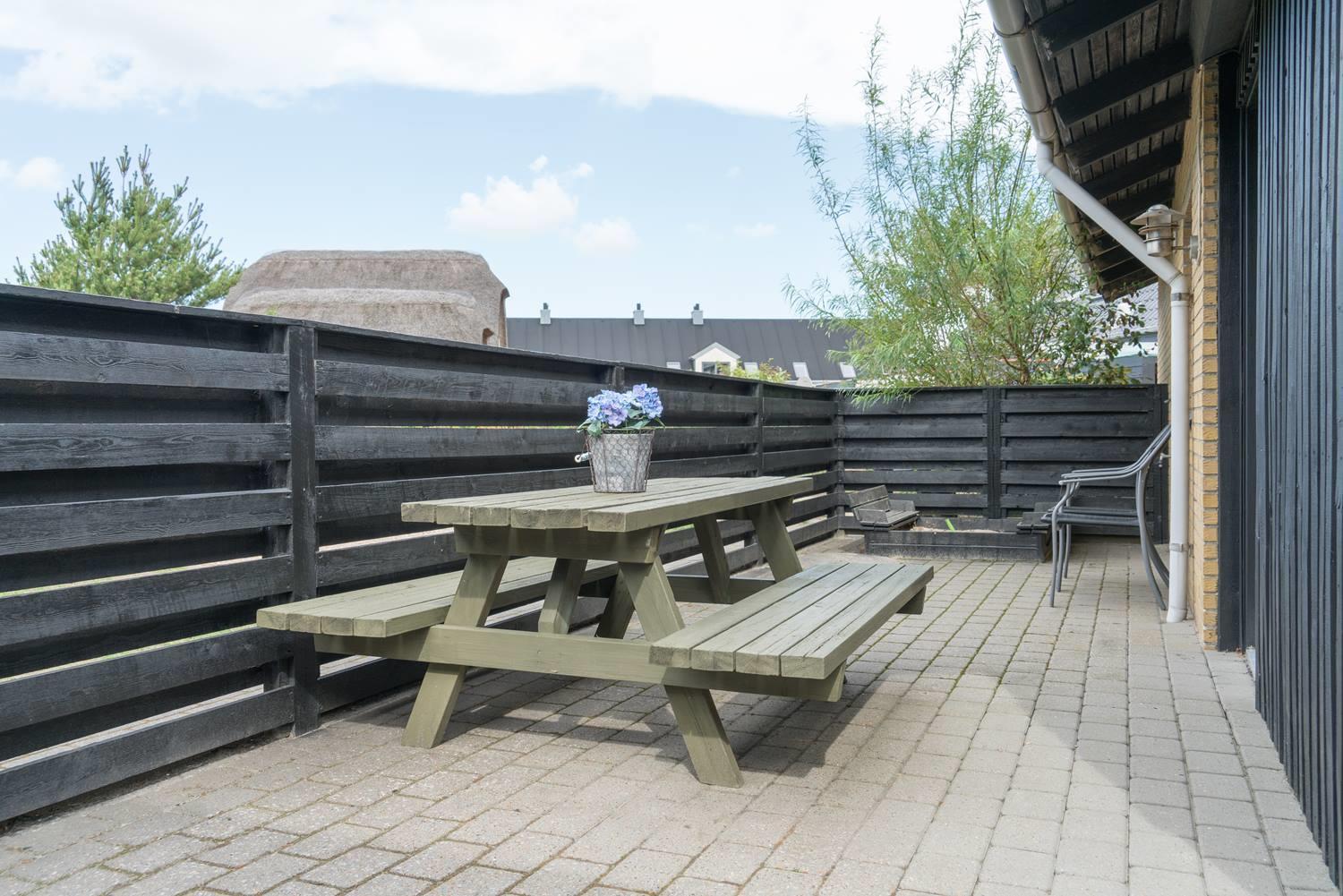 Privat og velholdt feriehus med lukket terrasse tæt på Vesterhavet og byen i Henne Strand.
