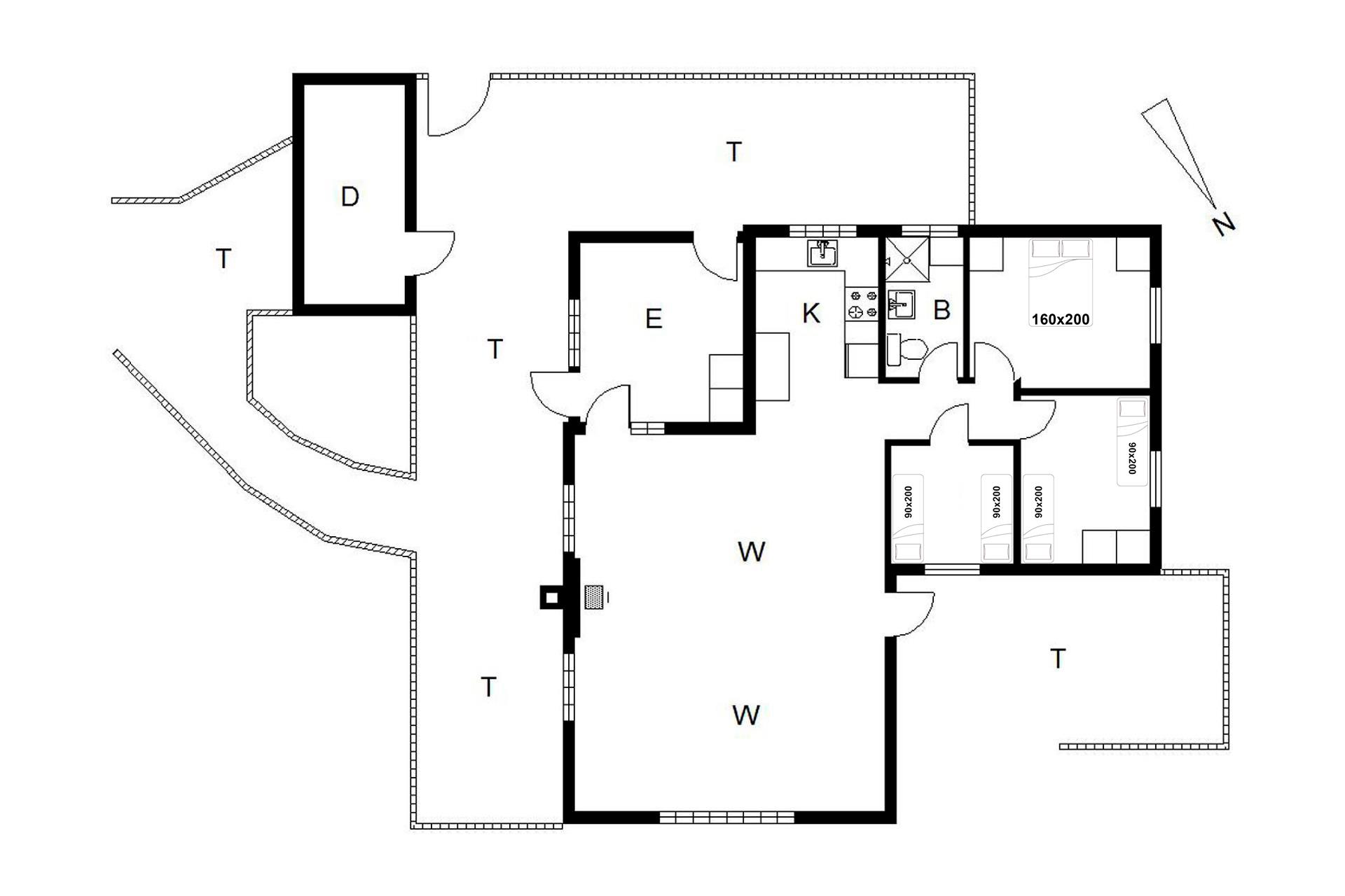 Sengestørrelse: 1 dobbeltseng 160 x 200 cm + 4 enkeltsenge 90 x 200 cm.