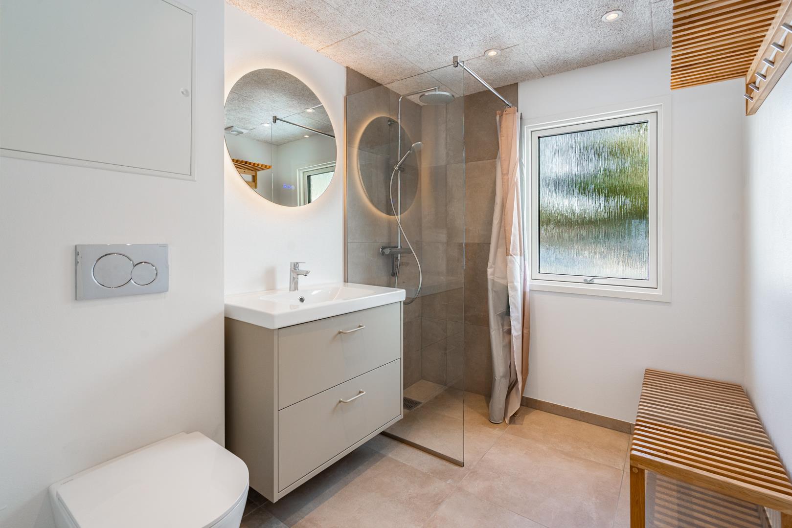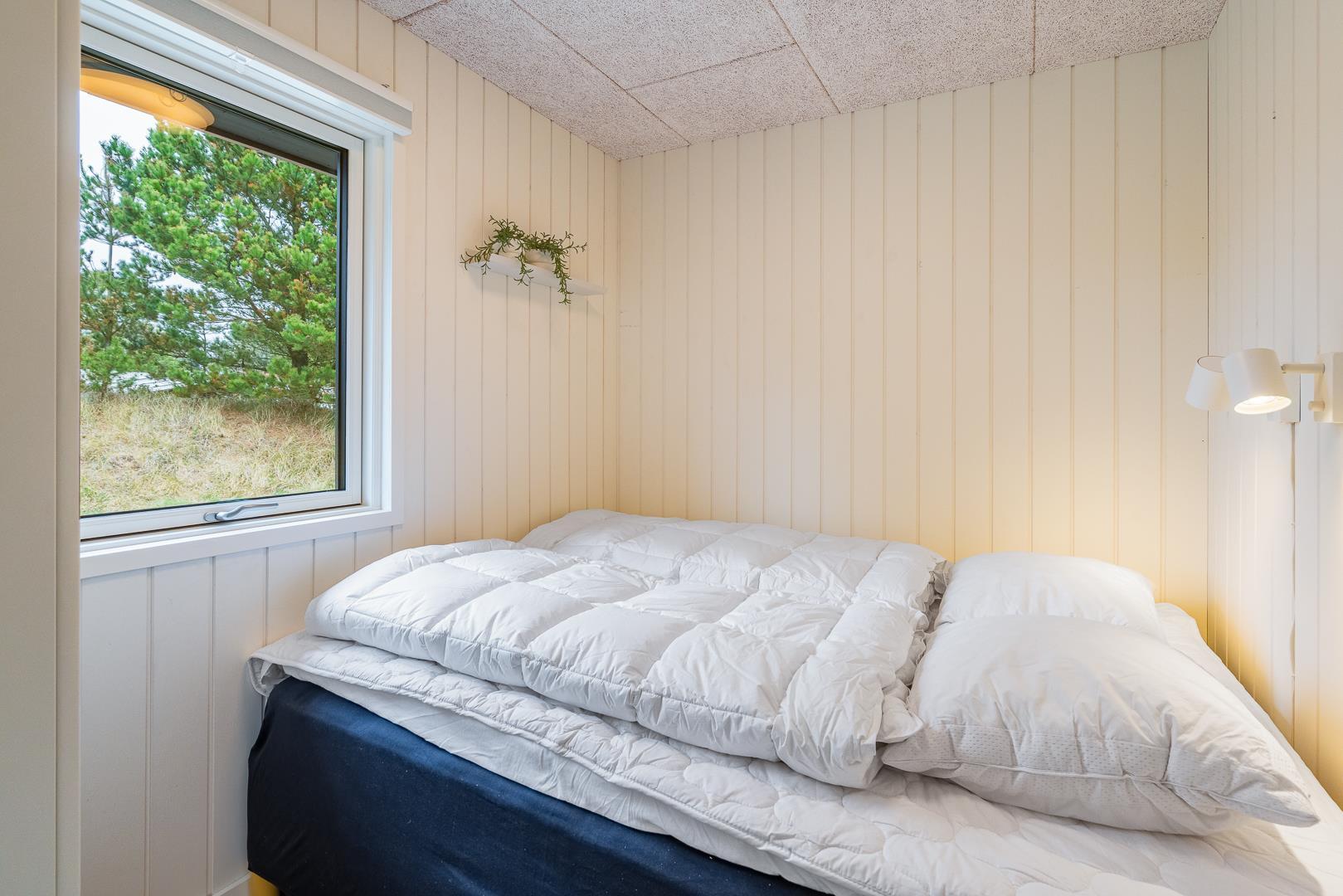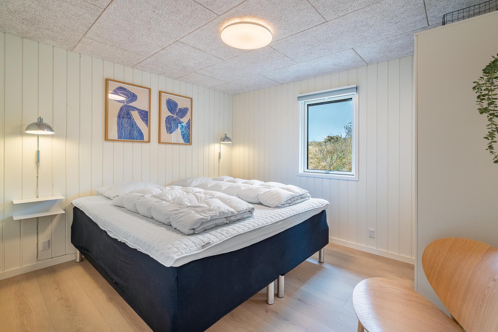 Sommerhuset har plads til 6 personer og rummer tre soveværelser: to med dobbeltsenge og ét med to enkeltsenge. Derudover er der hele to badeværelser, hvilket gør det ideelt til både familier og par, der rejser sammen. Overalt fremstår sommerhuset lyst, moderne og imødekommende – klar til at danne rammen om jeres næste ferie.