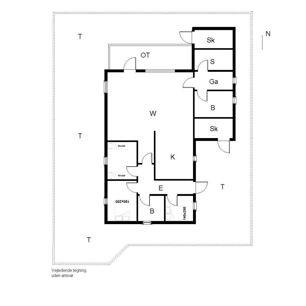 Sengestørrelser: 1 dobbeltseng 180 x 200 cm + 1 dobbeltseng 140 x 200 cm + 2 enkeltsenge 90 x 200 cm.