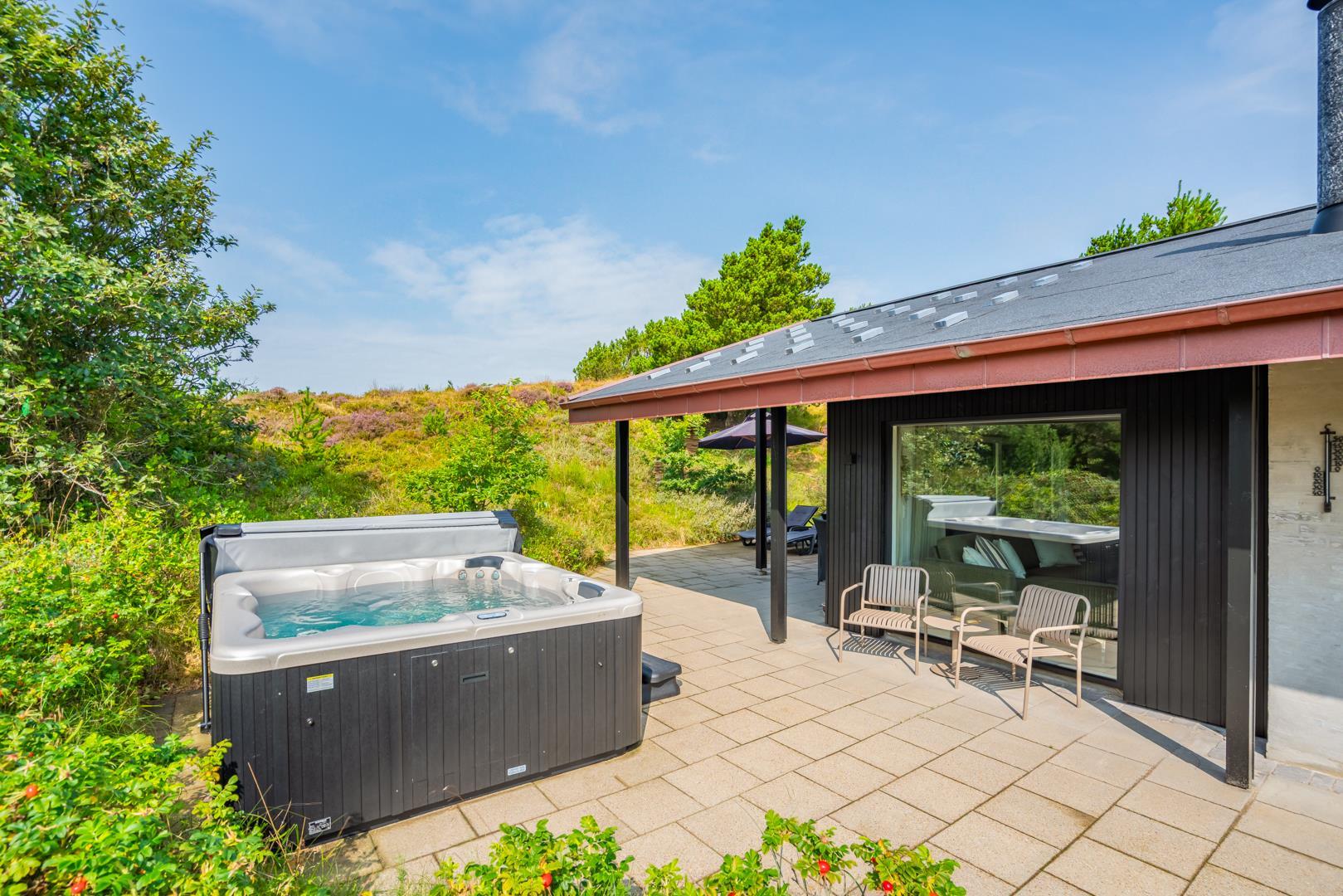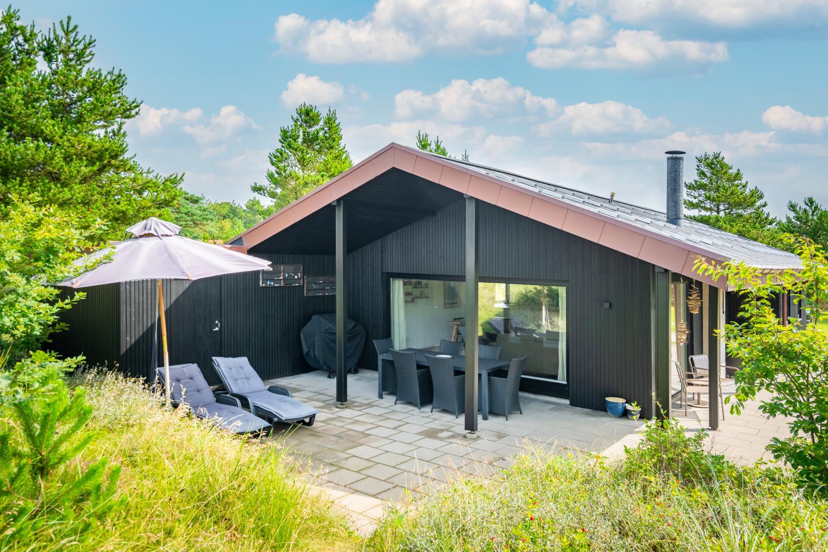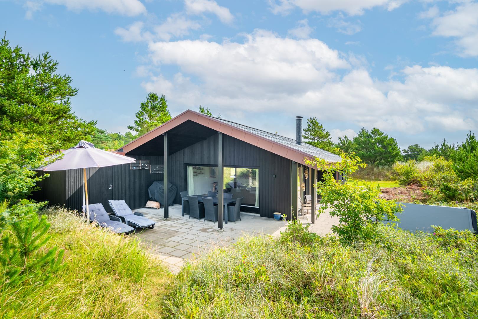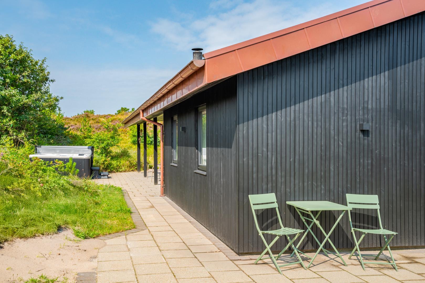 Dette dejlige sommerhus ligger desuden i kort afstand til byen, hvor I finder hyggelige caféer, specialbutikker og en livlig, afslappet feriestemning. Ikke lang fra huset venter det storslåede Vesterhav og den brede, hvide sandstrand – perfekt til både stille gåture i klitterne, dyp i bølgerne og leg i sandet for store og små. Her får I den perfekte kombination af fredelig naturidyl og levende ferieliv – lige uden for døren.